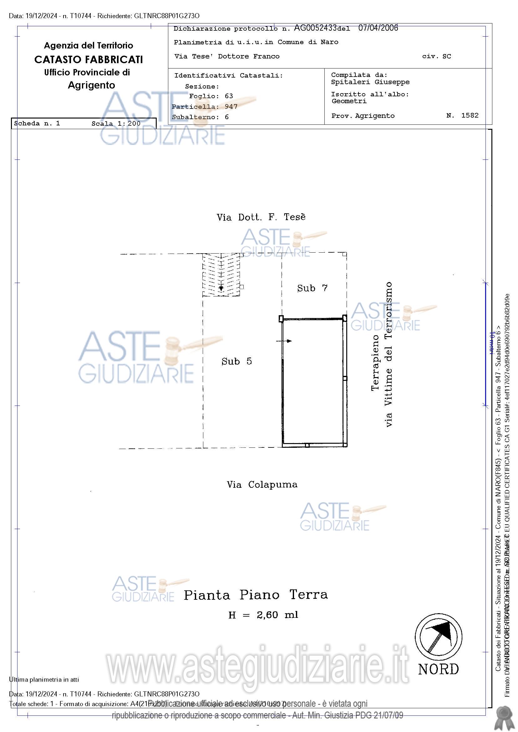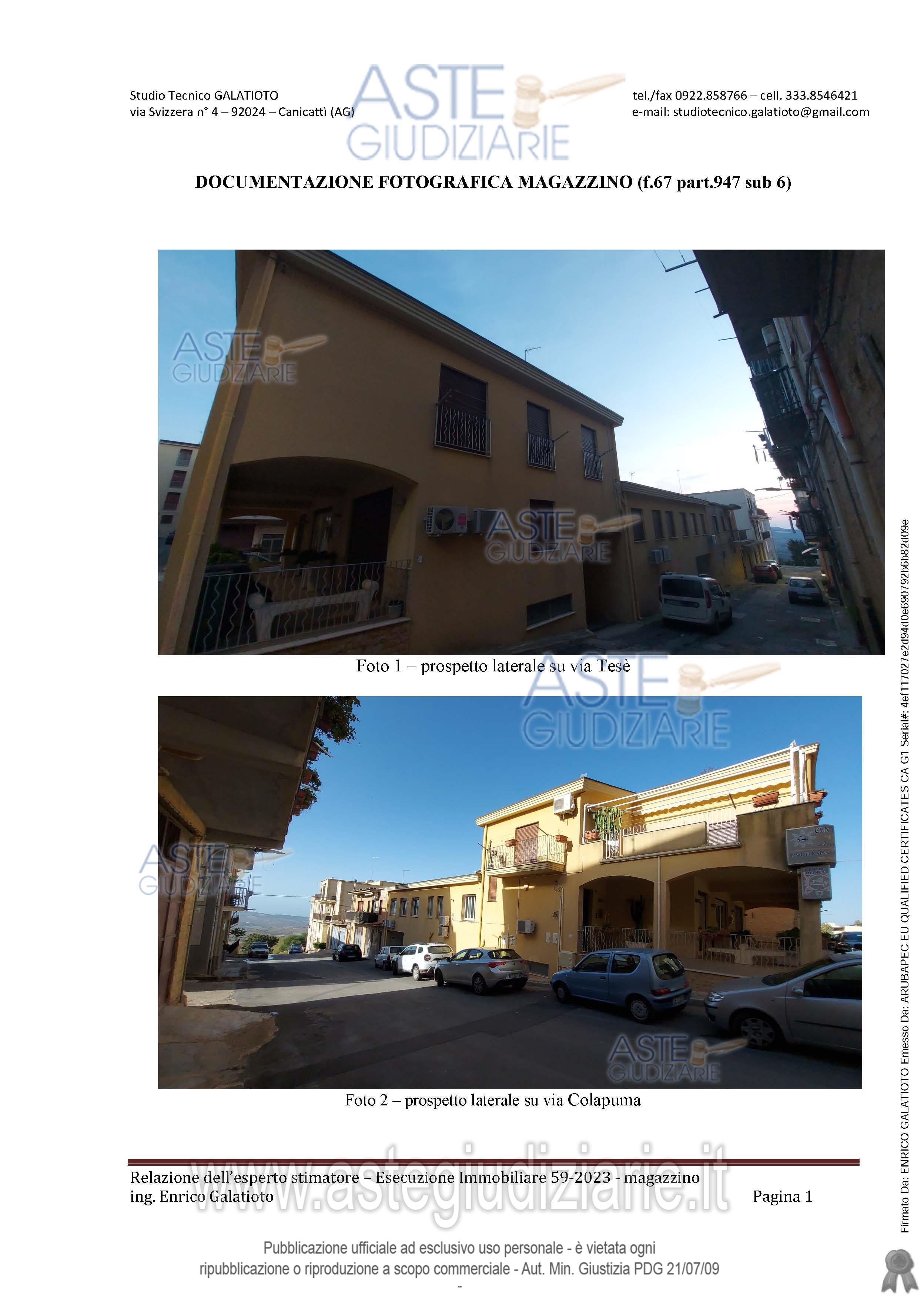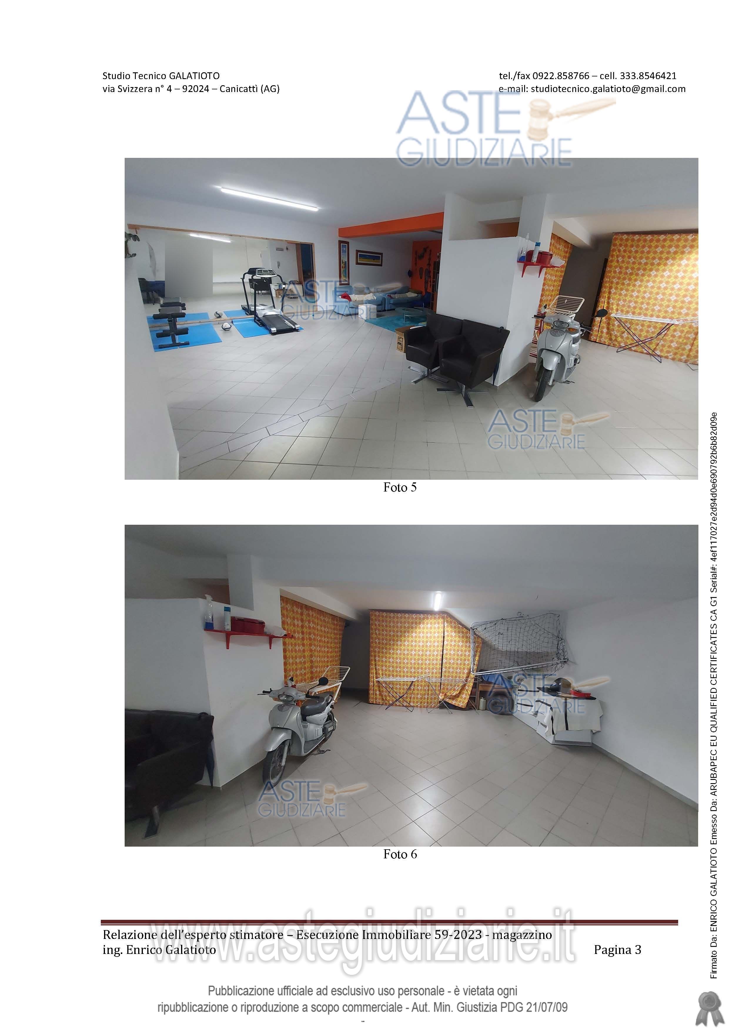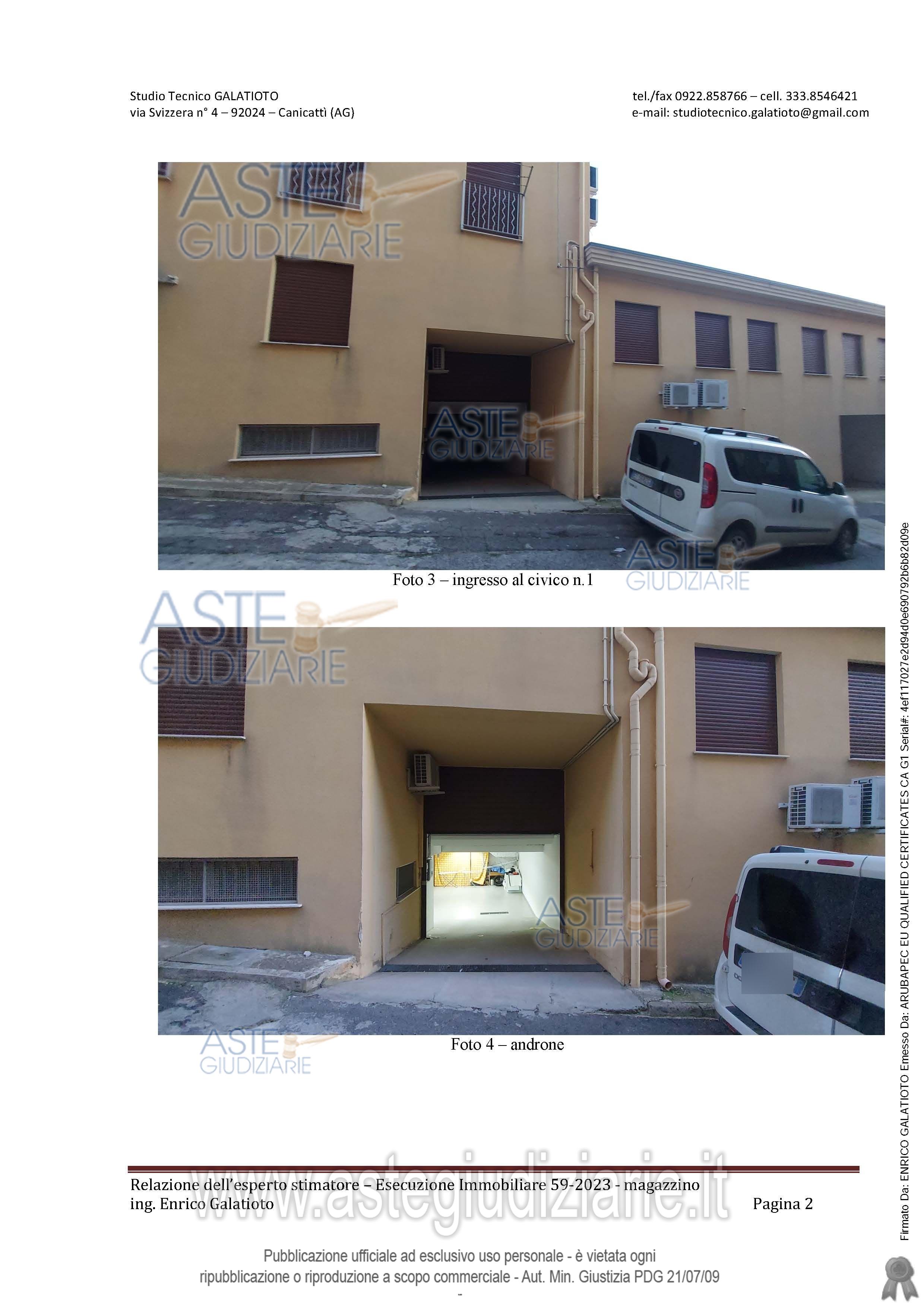 Vendita all'asta Senza incanto, con gara telematica sincrona mista - LOTTO 2: Piena proprietà per la quota di 1/1 di magazzino ubicato a Naro (AG) - via Tesè snc,. censito al Catasto Fabbricati del Comune di Naro, al Fg. 63, Part. 947, Sub. 6, Zc. 1, Categoria C6, cl. 5, mq 54 circa, posto al piano 1S.S. Prezzo base € 10.500,00 (offerta minima € 7.900,00). Data vendita 23/06/2026 ore 16:30. Professionista delegato alla vendita Avv. Maria Antonella Cimino - Email "mariaantonella.cimino@virgilio.it"; Tel. 0922/613158; Cell. 380/3855972.