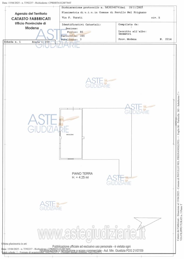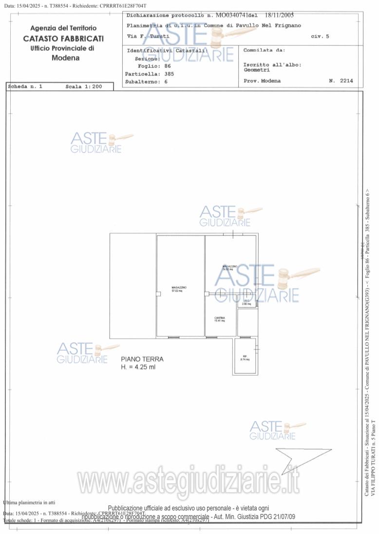 Custode Giudiziario: Alex Manelli - Email "visiteimmobili@ivgmodena.it"; Tel. 059/847301.