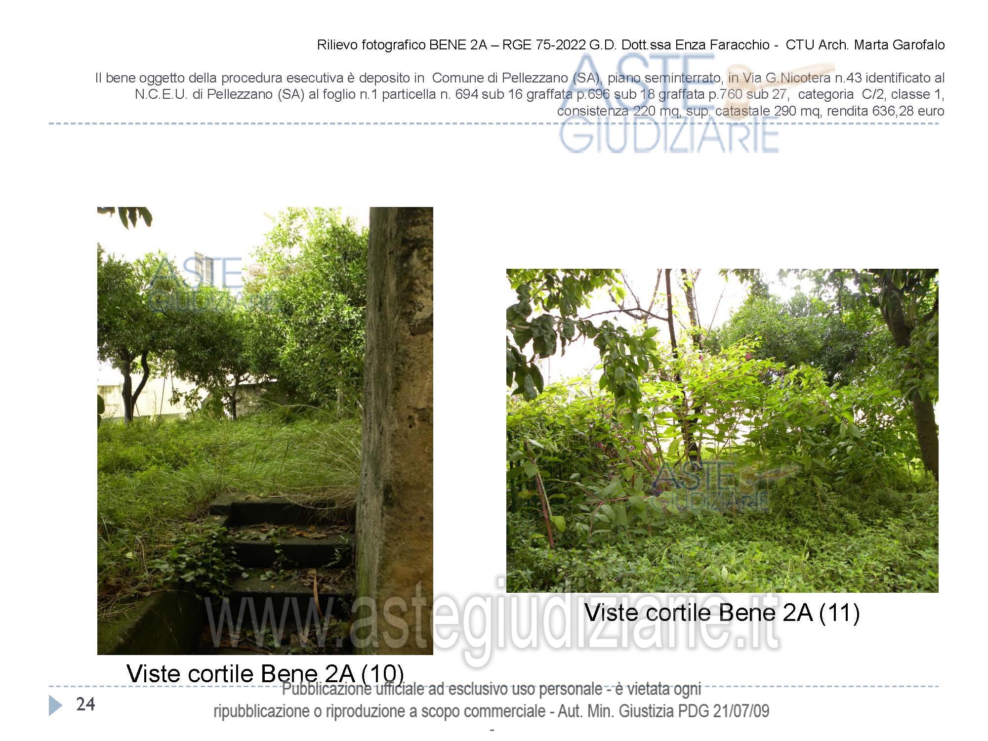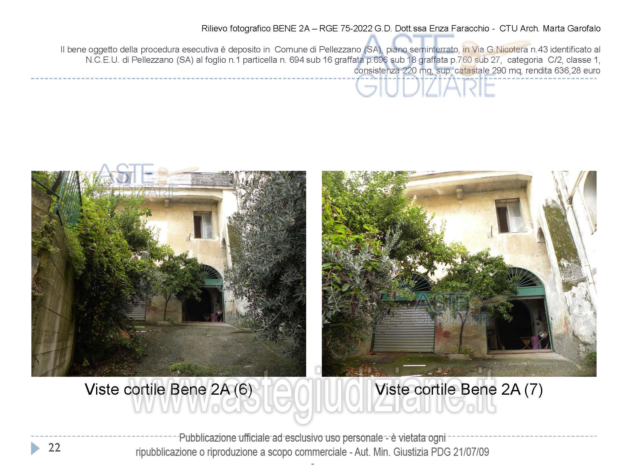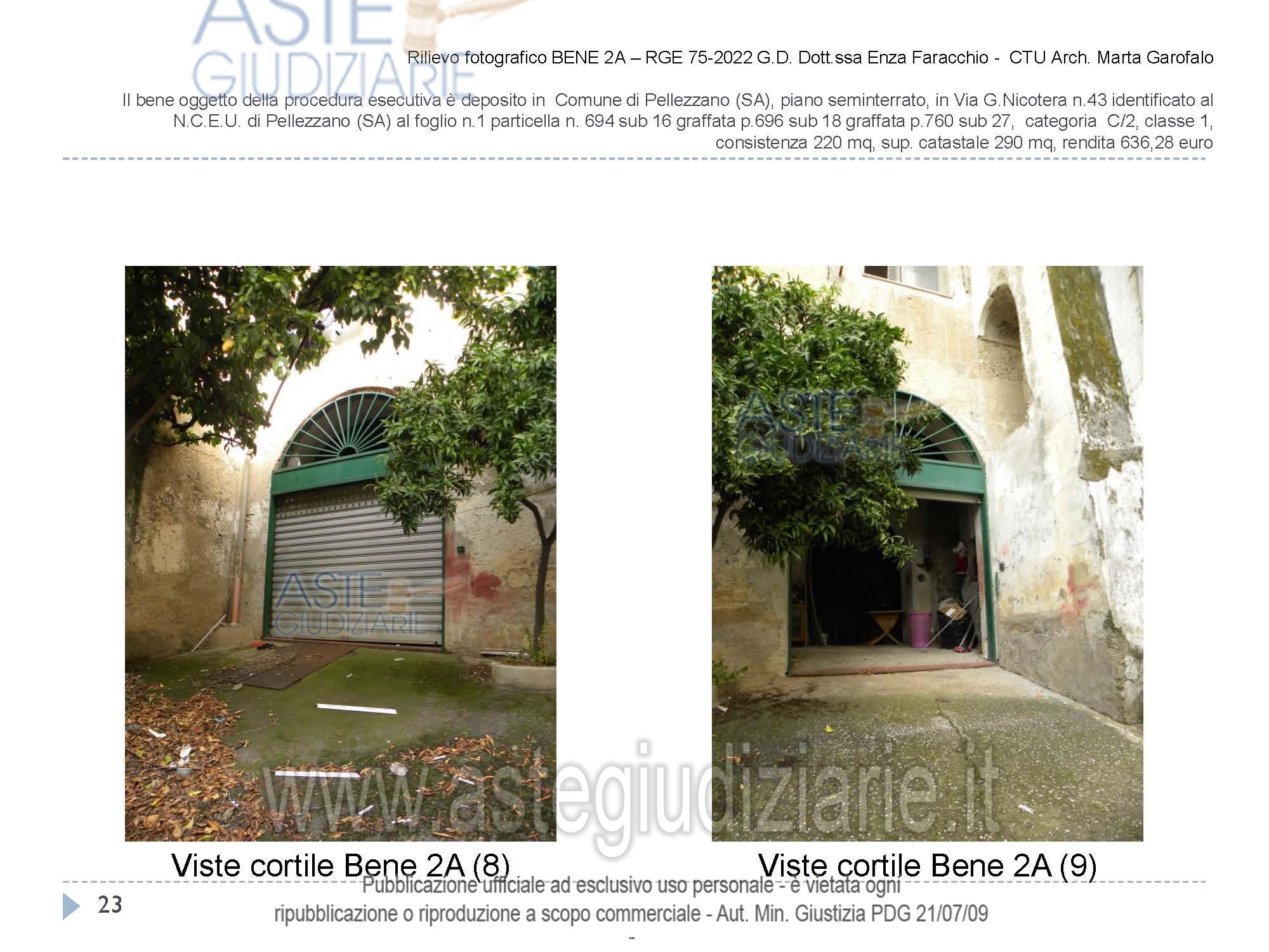 Vendita all'asta Senza incanto, con gara telematica asincrona - LOTTO 2: Deposito e Corte pertinenziale. Prezzo base € 49.000,00 (offerta minima € 37.000,00). Data inizio operazioni di vendita: 28/04/2026 ore 13:00. Giudice Enza Faracchio. Professionista delegato alla vendita Avv. Laura Cavallo. Custode Giudiziario Avv. Laura Cavallo - Email "laura.cavallo@iannicelliassociati.it"; Cell. 3204954332; Tel. 089237900. Rif. Tribunale di Salerno - Esecuzione immobiliare post legge 80 n. 75/2022
