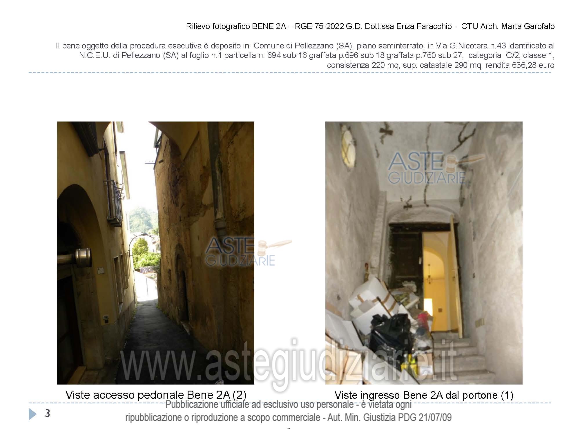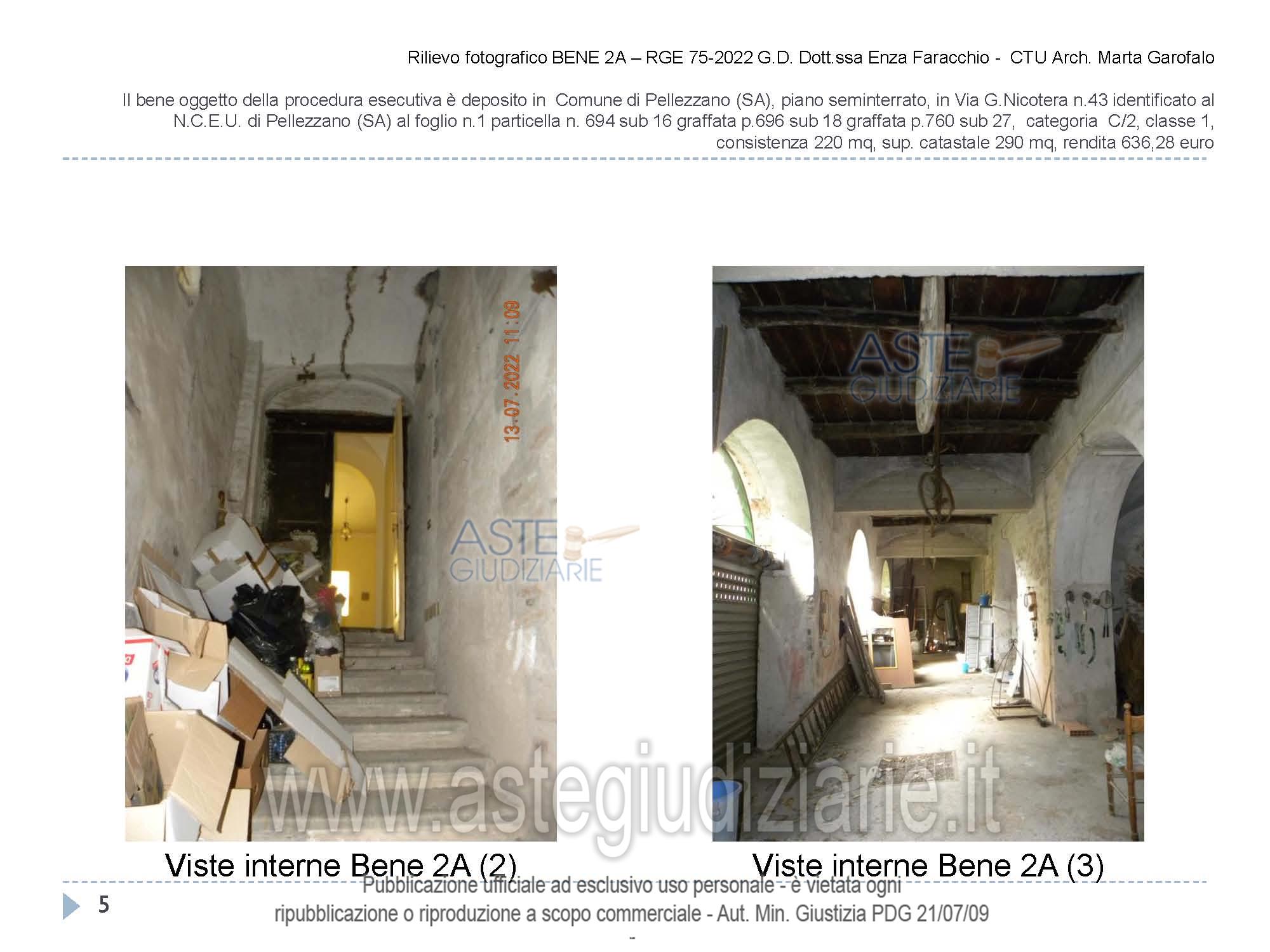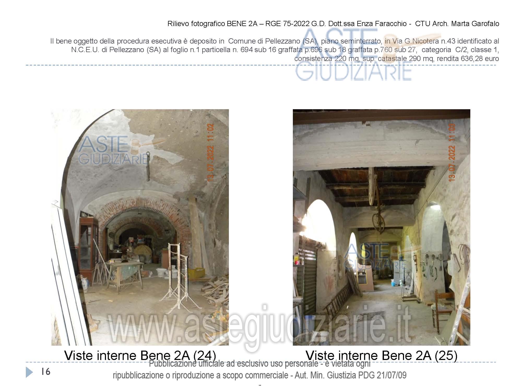 Vendita all'asta Senza incanto, con gara telematica asincrona - LOTTO 2: Deposito e Corte pertinenziale. Prezzo base € 49.000,00 (offerta minima € 37.000,00). Data inizio operazioni di vendita: 28/04/2026 ore 13:00. Giudice Enza Faracchio. Professionista delegato alla vendita Avv. Laura Cavallo. Custode Giudiziario Avv. Laura Cavallo - Email "laura.cavallo@iannicelliassociati.it"; Cell. 3204954332; Tel. 089237900. Rif. Tribunale di Salerno - Esecuzione immobiliare post legge 80 n. 75/2022