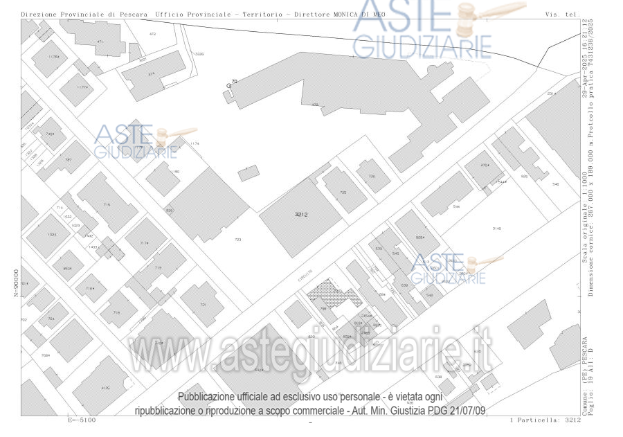 Vendita all'asta Senza incanto, con gara telematica asincrona - LOTTO unico: IN DER GEMEINDE PESCARA: vollständiges und ungeteiltes Eigentum für einen Anteil gleich dem gesamten gewerblich genutzten Lagerhaus in ausgezeichnetem Wartungszustand, mit Zugang von der Via del Circuito Nr. 198, mit einer Gesamtfläche von ca. 800 m², aufgeteilt in zwei separate und funktional integrierte Gebäudeblöcke, ergänzt durch einen hofseitigen, gepflasterten exklusiven Bereich, der als Parkplatz genutzt wird, sowie im hinteren Teil des Lagerbereichs eine kleine, etwa 29 m² große Außenfläche. Spezifisch: Der erste Gebäudeblock, der direkt zur Straße hin ausgerichtet ist, erstreckt sich über zwei Ebenen: Erdgeschoss und erstes Stockwerk. Im Erdgeschoss befindet sich eine geräumige Ausstellungsbereich mit gewerblicher Nutzung, der von drei großen Schaufenstern geprägt ist, die zur Hauptstraße zeigen; Das Erdgeschoss wird ergänzt durch einige Verwaltungsbüros, die von innen und außen zugänglich sind; Der zweite Gebäudeblock, der über ein Einfahrtstor von dem ersten Block aus zugänglich ist, befindet sich im hinteren Teil des Gebäudes und ist hauptsächlich für Lager-, Warenlager- und Technikwerkstattaktivitäten vorgesehen.