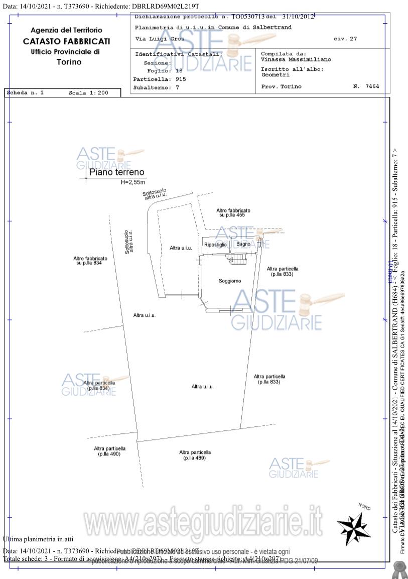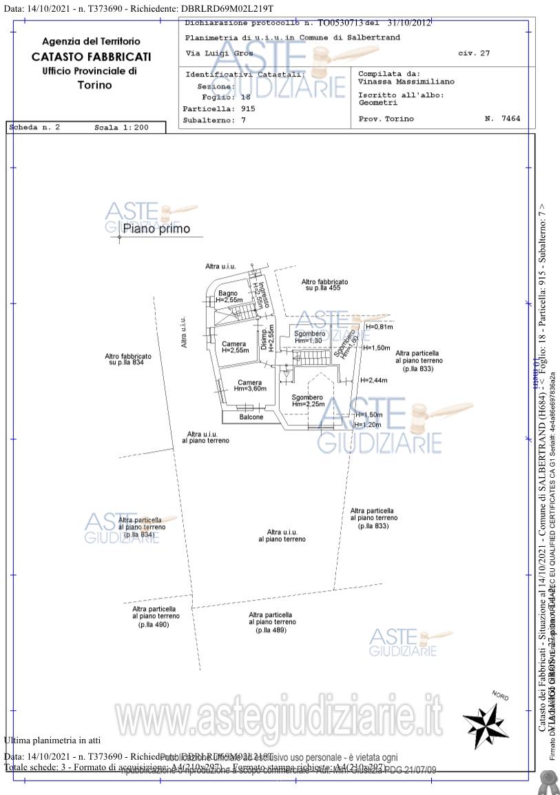 Vendita all'asta Senza incanto, con gara telematica asincrona - LOTTO 1: In Comune di Salbertrand (To), frazione Oulme, via Luigi Gros attualmente senza numero civico, ma già facente parte del civico numero 27 con altro immobile di proprietà di terzi non oggetto della p. Prezzo base € 170.000,00 (offerta minima € 127.500,00). Data inizio operazioni di vendita: 24/11/2025 ore 15:30. Giudice Francesca Alonzo. Professionista delegato alla vendita Avv. Giuseppe Pensi. Custode Giudiziario Avv. Pensi - Email "giuseppe.pensi@inwind.it". Rif. Tribunale di Torino - Esecuzione immobiliare post legge 80 n. 156/2021