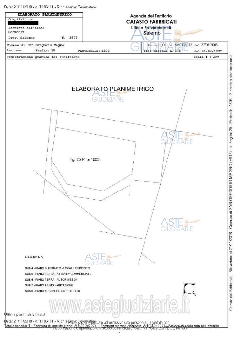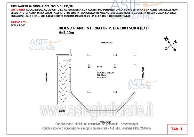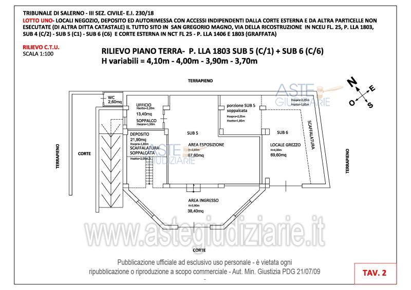 Vendita all'asta Senza incanto, con gara telematica asincrona - LOTTO 1: Locale deposito, negozio ed autorimessa con accessi indipendenti dalla corte esterna. Prezzo base € 87.950,00 (offerta minima € 65.962,00). Data inizio operazioni di vendita: 16/04/2026 ore 16:00. Giudice Dott. Enza Faracchio. Professionista delegato alla vendita Avv. Alessandro Marino. Custode Giudiziario Avv. Alessandro Marino - Email "avv.alessandromarino@virgilio.it"; Tel. 089-2895322. Rif. Tribunale di Salerno - Esecuzione immobiliare post legge 80 n. 230/2018