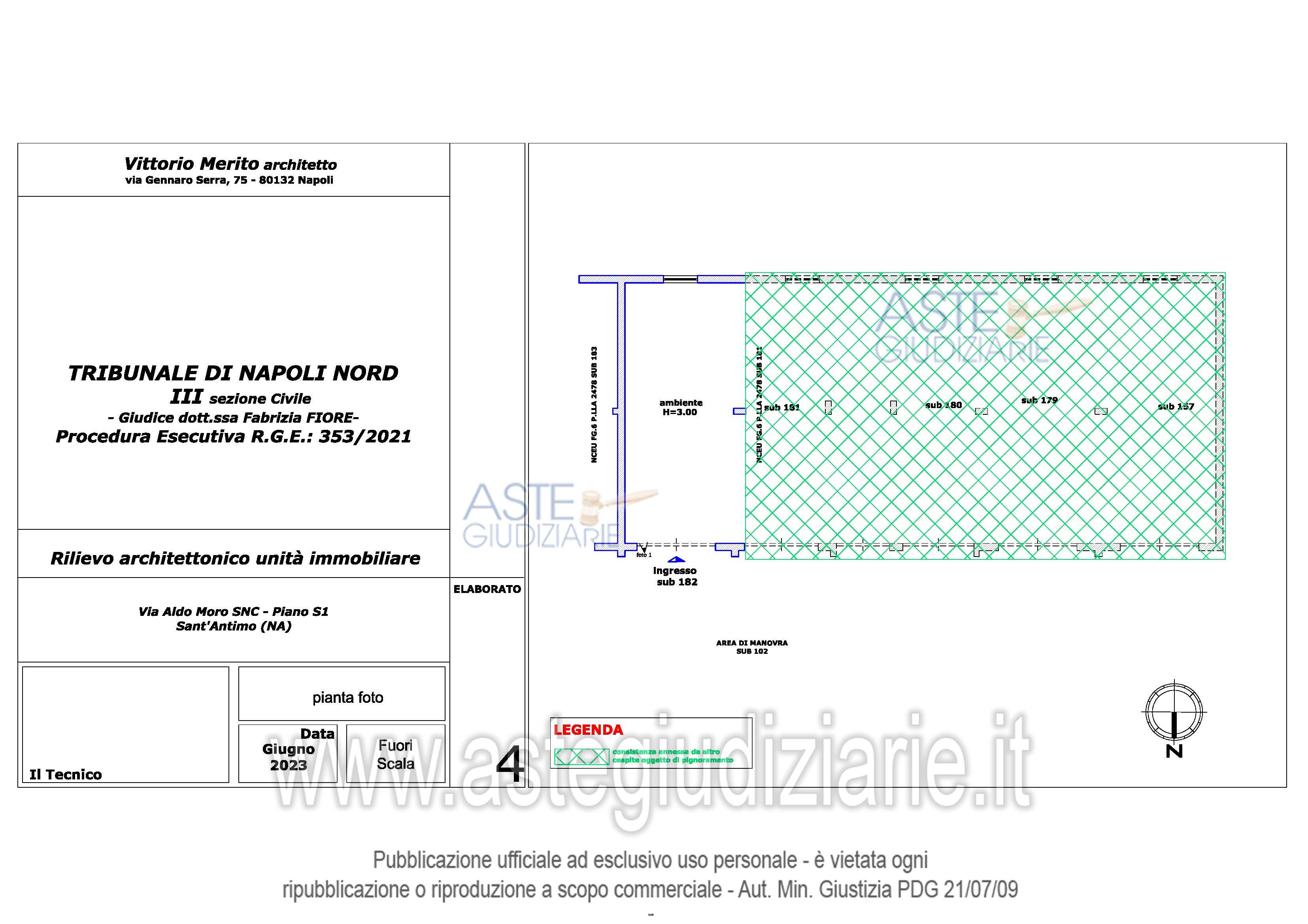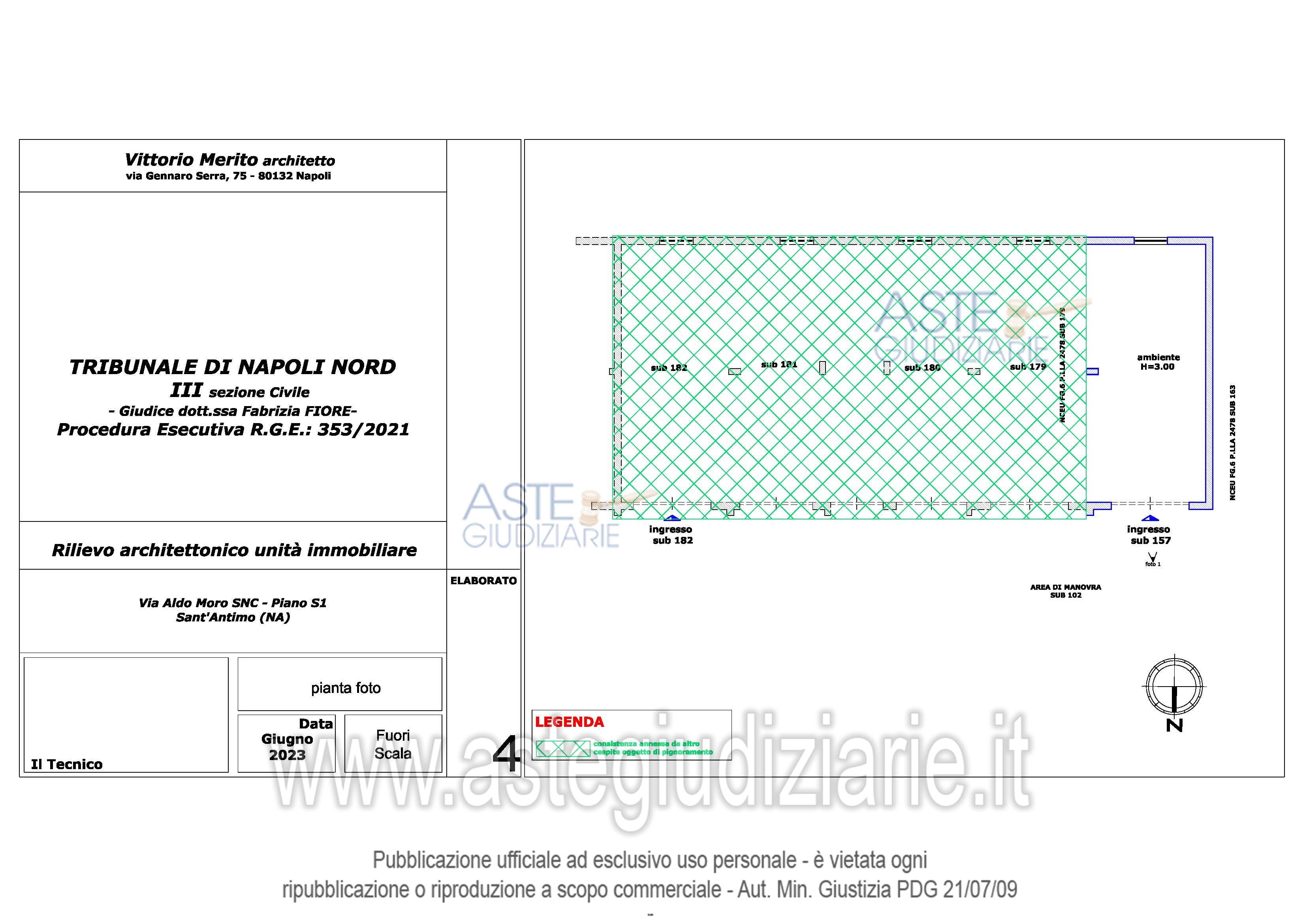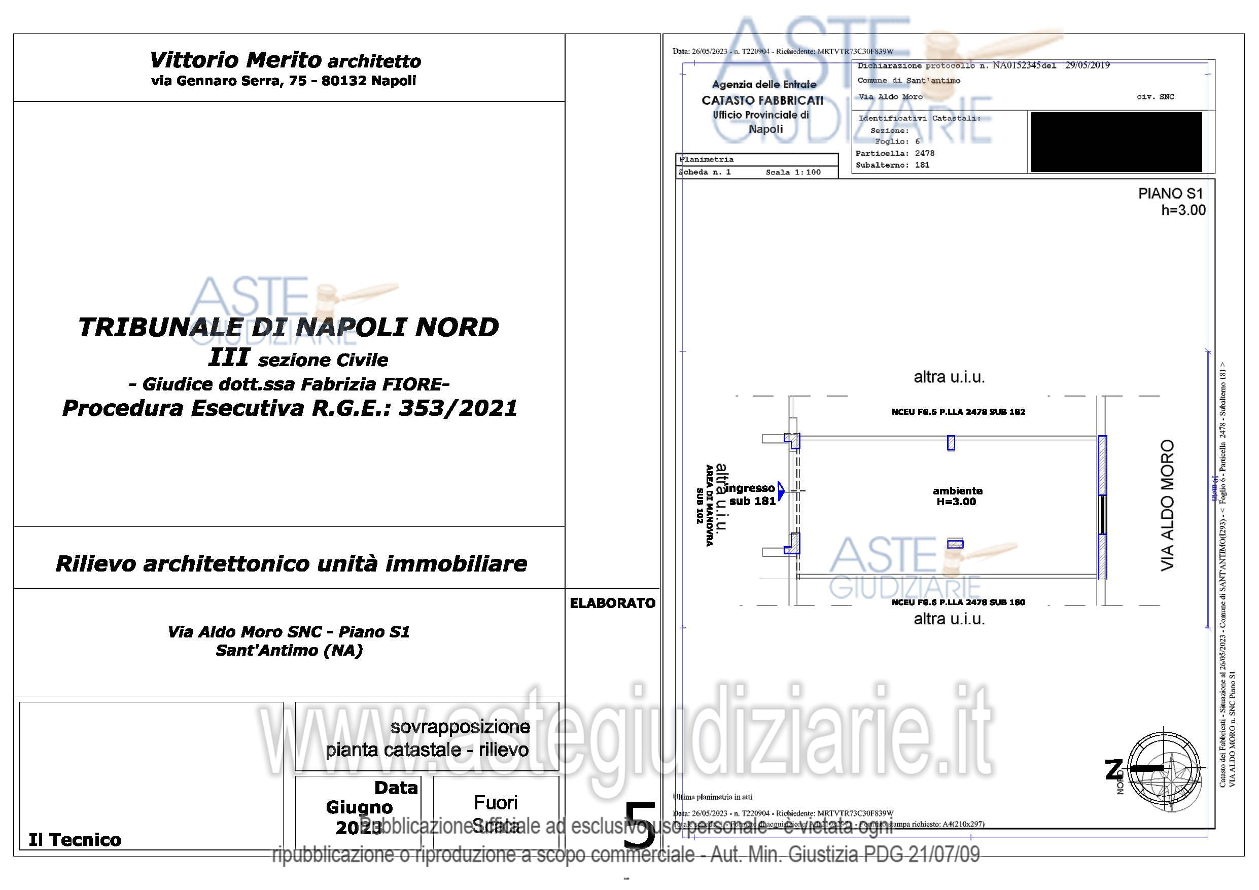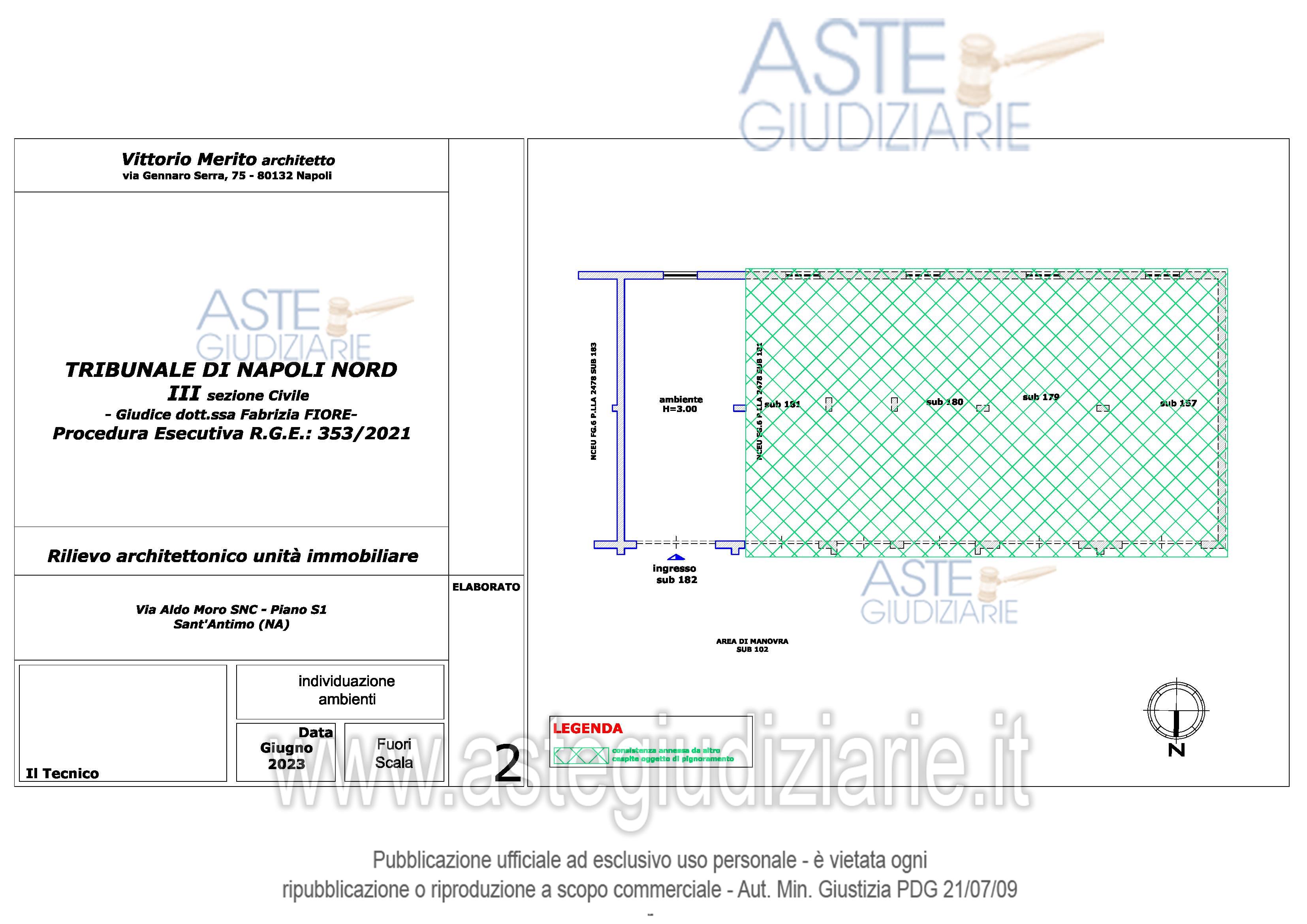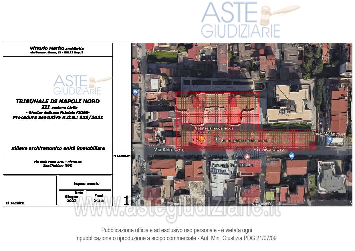 Vendita all'asta Senza incanto, con gara telematica asincrona - LOTTO 36: BENE 1 – Garage sito nel Comune di Sant’Antimo (Na) via Aldo Moro 21, piano S1 “Parco Omissis” composto da unico ambiente; in NCEU foglio 6, particella 2478, sub. 157, cat. C/6, classe 3, consistenza 52 mq, sup. cat. 56 mq. Bene 2 -Bene 3 - Bene 4 e Bene 5 - Locali Deposito, censiti in NCEU al foglio 6, part. 2478, sub 179, 180, 181, 182. I beni de quibus risultano tutti liberi. Prezzo base € 141.600,00 (offerta minima € 106.200,00). Data inizio operazioni di vendita: 27/11/2025 ore 16:00. Custode Giudiziario Dott. Francesco Russo - Email "studiocasillorusso@libero.it"; Tel. 0815404454. Rif. Tribunale di Napoli Nord - Esecuzione immobiliare post legge 80 n. 353/2021
