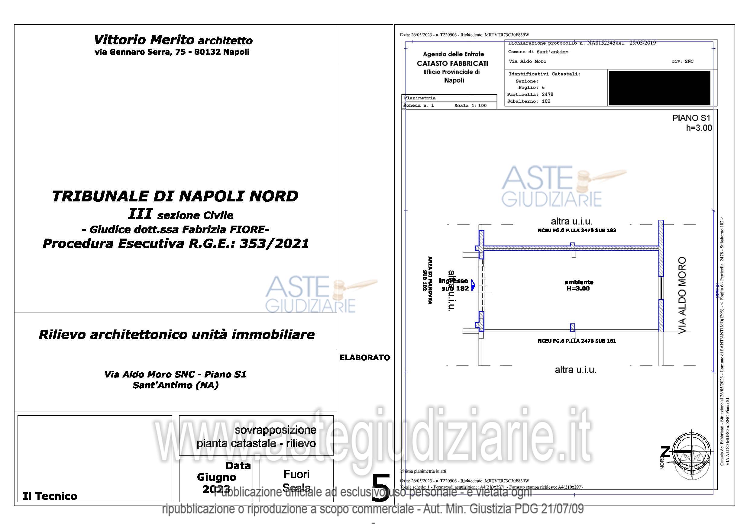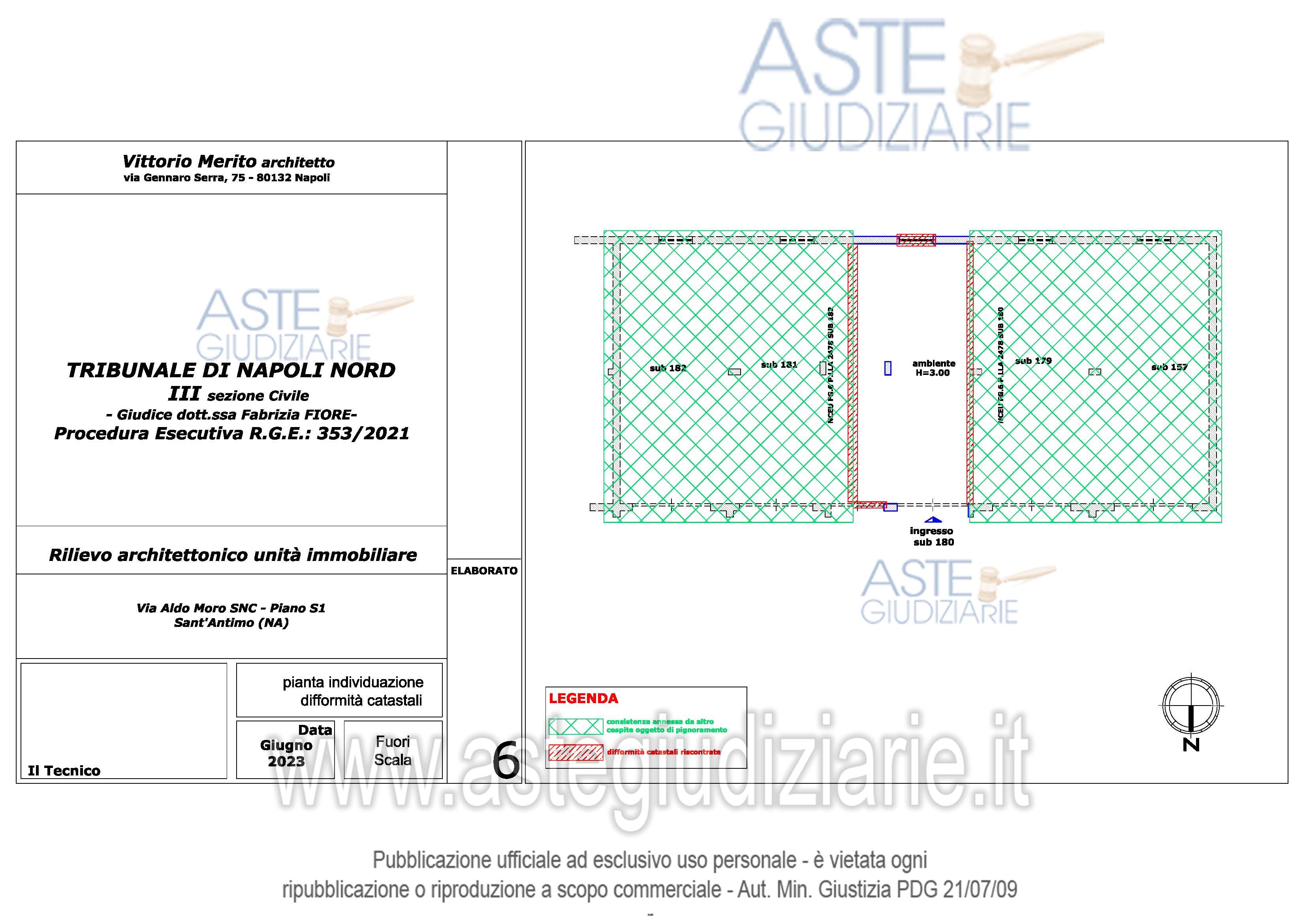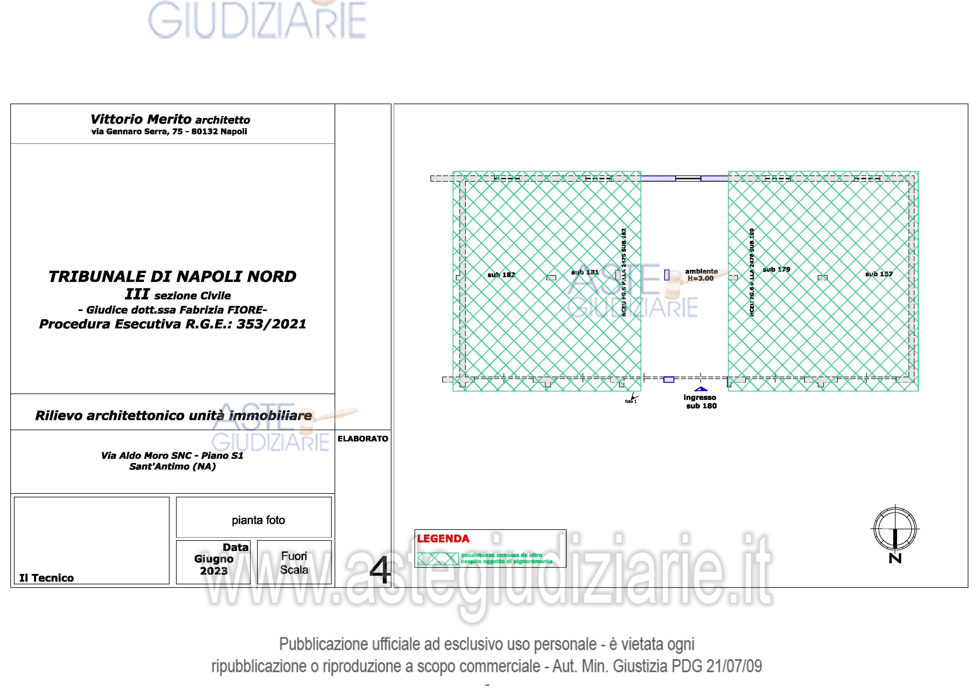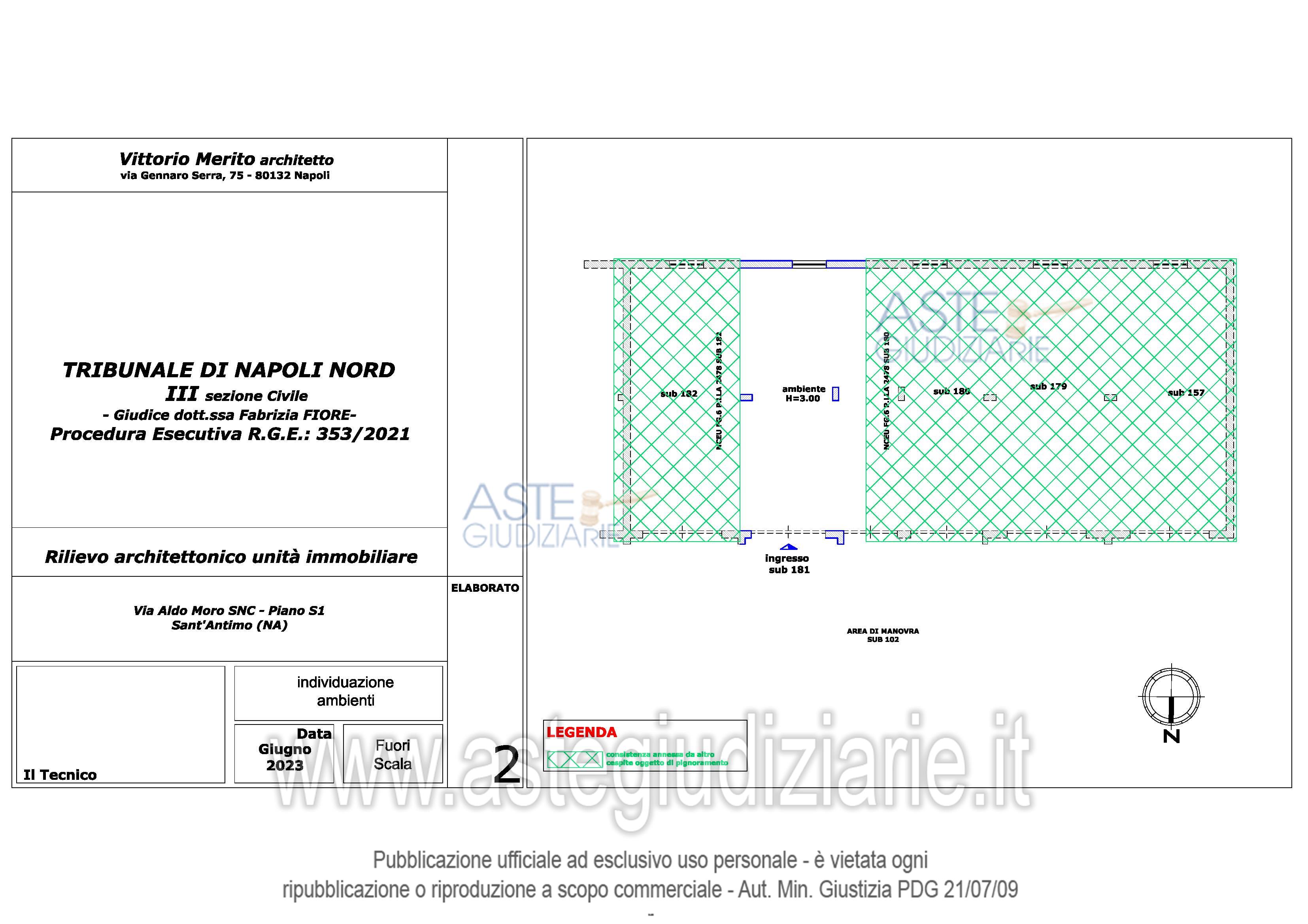 Vendita all'asta Senza incanto, con gara telematica asincrona - LOTTO 36: BENE 1 – Garage sito nel Comune di Sant’Antimo (Na) via Aldo Moro 21, piano S1 “Parco Omissis” composto da unico ambiente; in NCEU foglio 6, particella 2478, sub. 157, cat. C/6, classe 3, consistenza 52 mq, sup. cat. 56 mq. Bene 2 -Bene 3 - Bene 4 e Bene 5 - Locali Deposito, censiti in NCEU al foglio 6, part. 2478, sub 179, 180, 181, 182. I beni de quibus risultano tutti liberi. Prezzo base € 141.600,00 (offerta minima € 106.200,00). Data inizio operazioni di vendita: 27/11/2025 ore 16:00. Custode Giudiziario Dott. Francesco Russo - Email "studiocasillorusso@libero.it"; Tel. 0815404454. Rif. Tribunale di Napoli Nord - Esecuzione immobiliare post legge 80 n. 353/2021