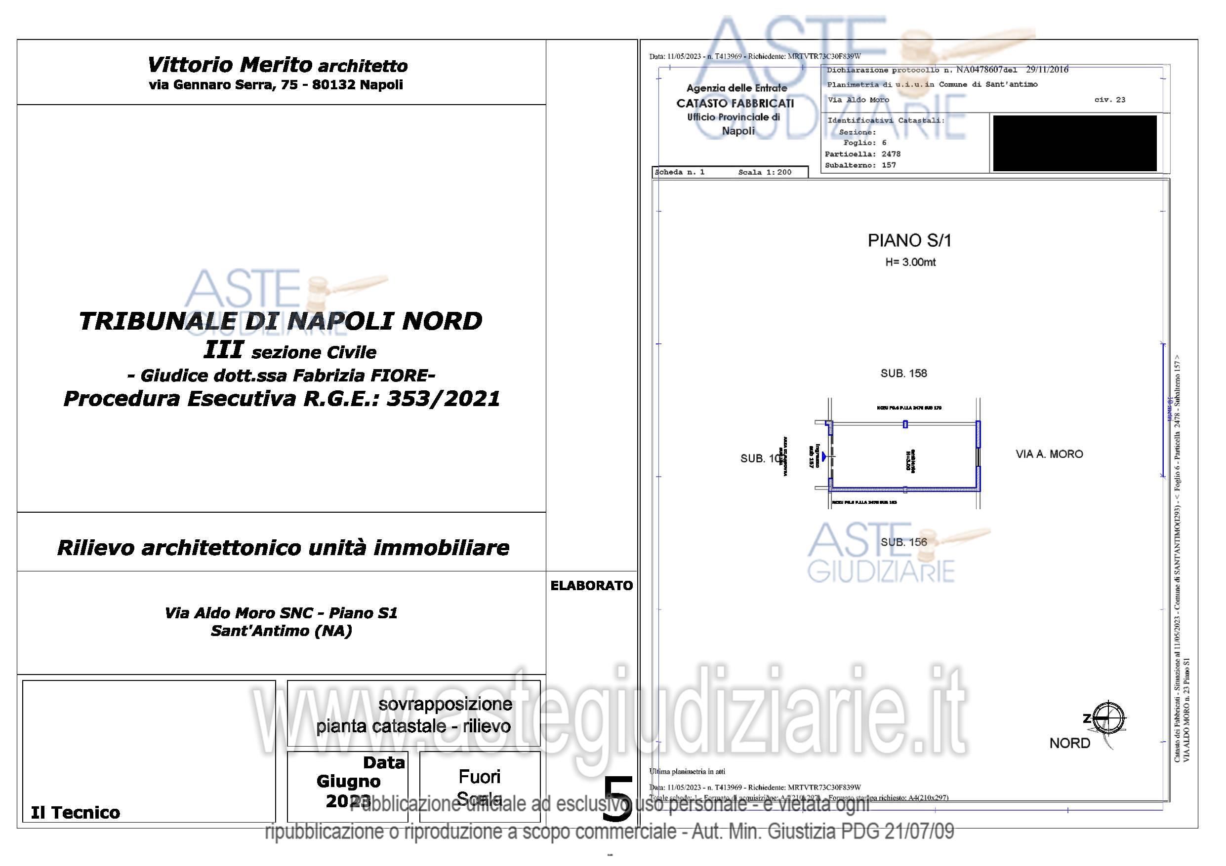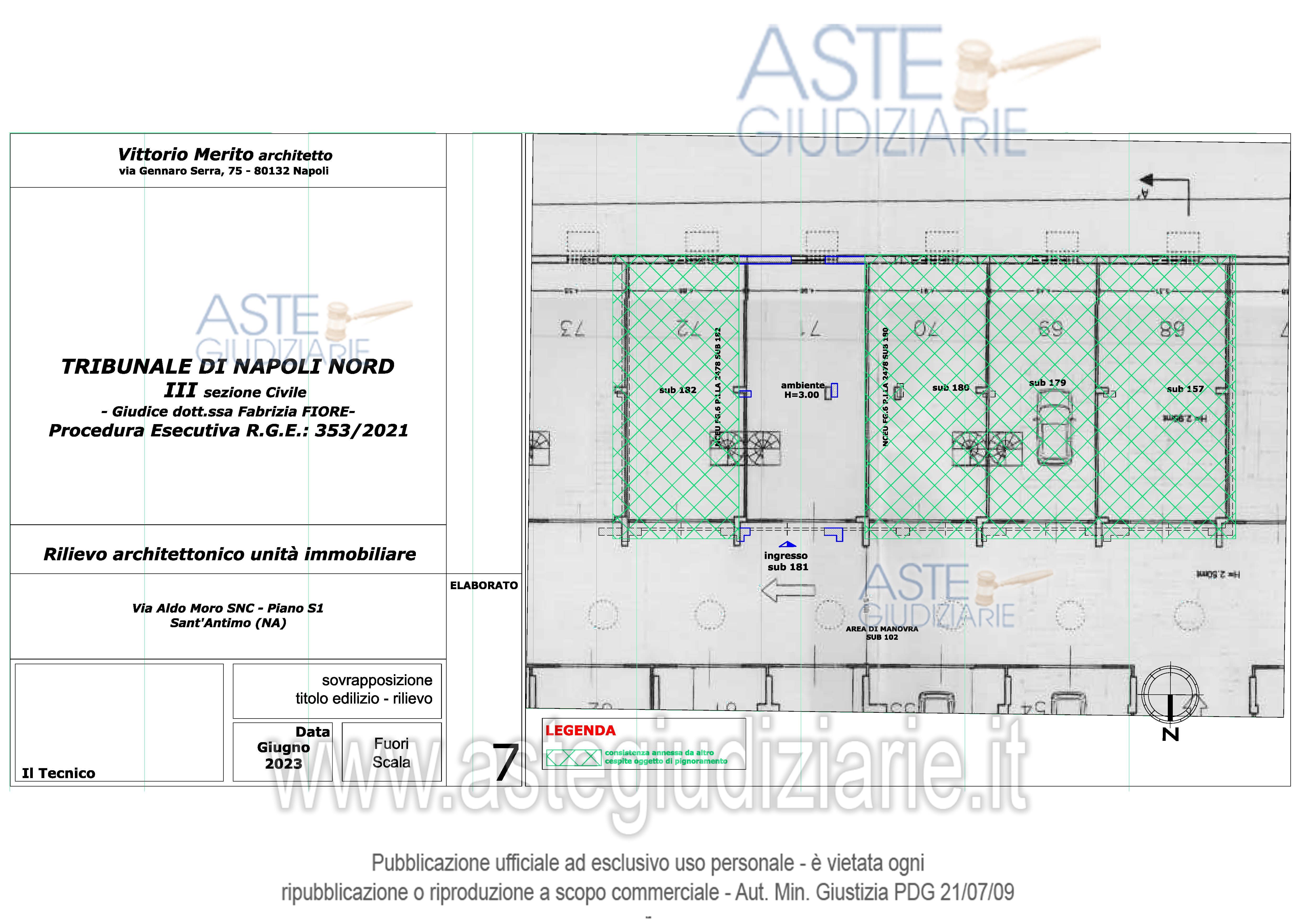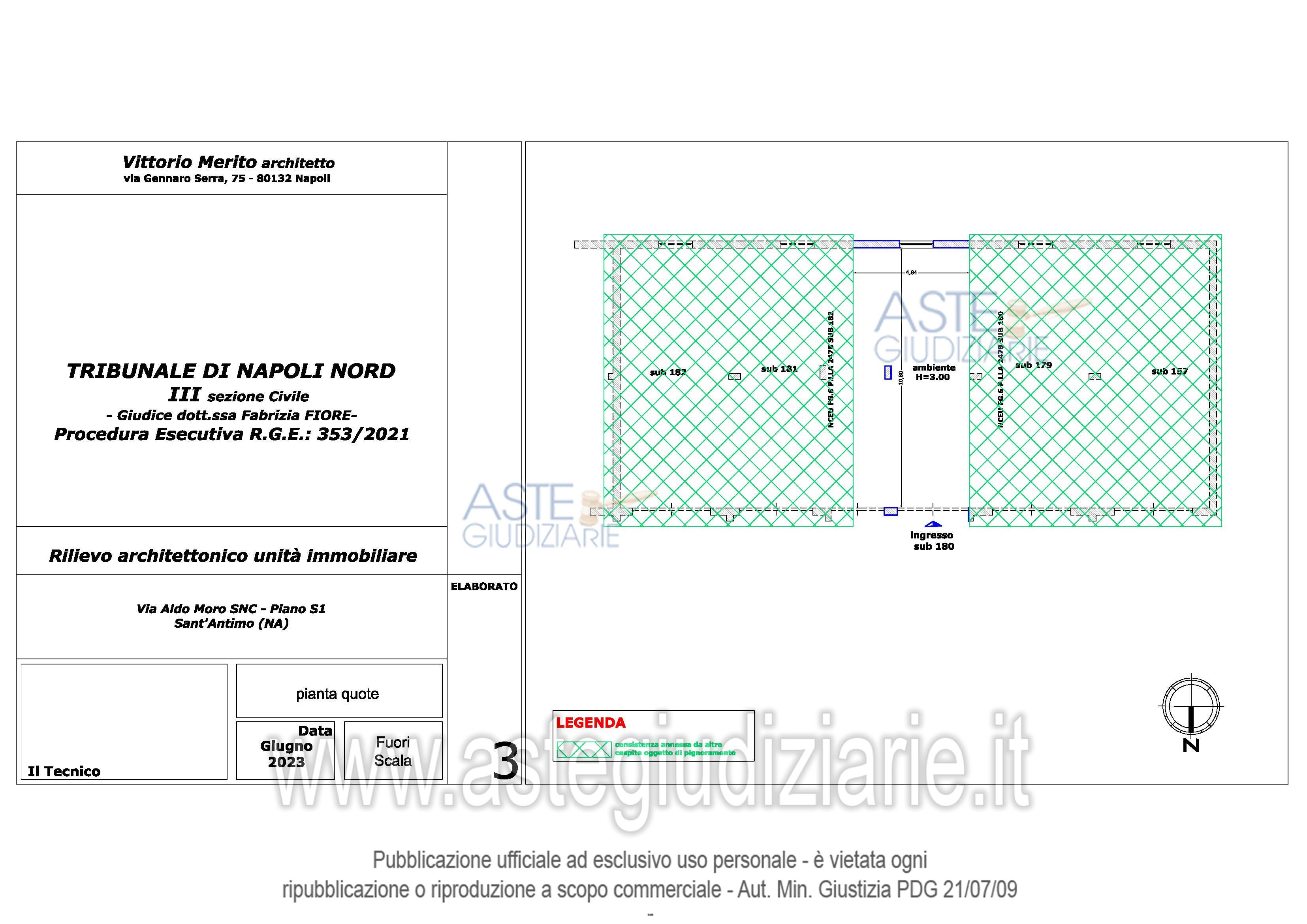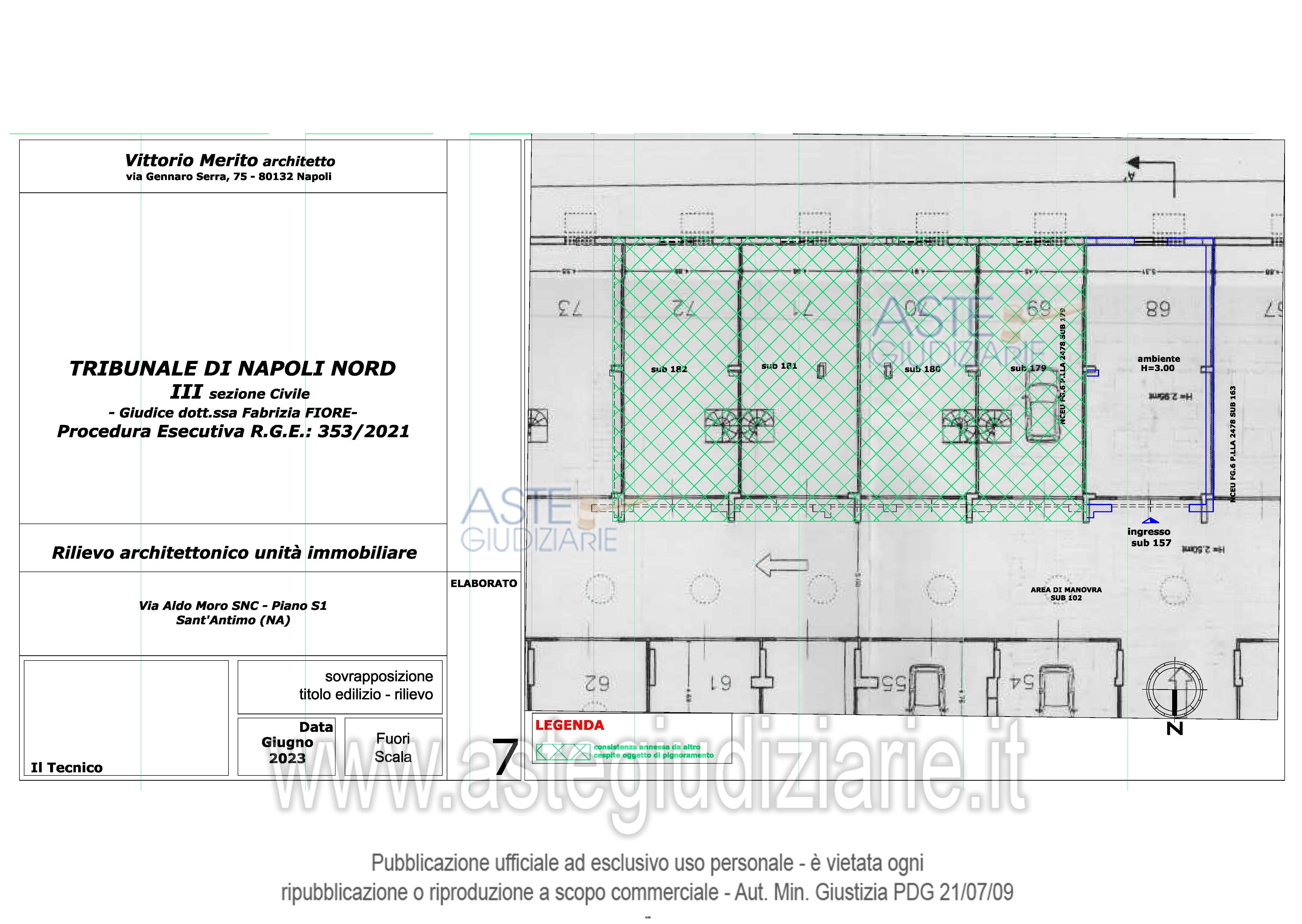 Vendita all'asta Senza incanto, con gara telematica asincrona - LOTTO 36: BENE 1 – Garage sito nel Comune di Sant’Antimo (Na) via Aldo Moro 21, piano S1 “Parco Omissis” composto da unico ambiente; in NCEU foglio 6, particella 2478, sub. 157, cat. C/6, classe 3, consistenza 52 mq, sup. cat. 56 mq. Bene 2 -Bene 3 - Bene 4 e Bene 5 - Locali Deposito, censiti in NCEU al foglio 6, part. 2478, sub 179, 180, 181, 182. I beni de quibus risultano tutti liberi. Prezzo base € 141.600,00 (offerta minima € 106.200,00). Data inizio operazioni di vendita: 27/11/2025 ore 16:00. Custode Giudiziario Dott. Francesco Russo - Email "studiocasillorusso@libero.it"; Tel. 0815404454. Rif. Tribunale di Napoli Nord - Esecuzione immobiliare post legge 80 n. 353/2021