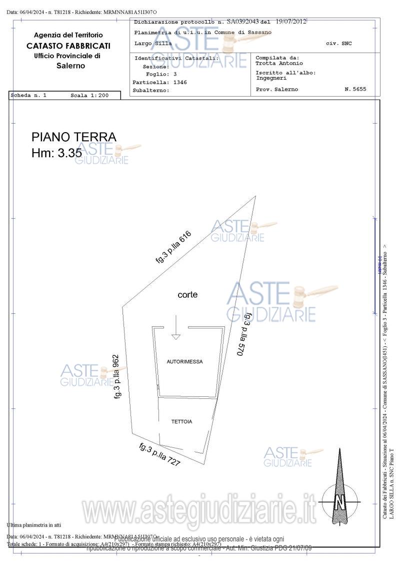 Vendita all'asta Senza incanto, con gara telematica asincrona - LOTTO 3: Locale deposito con annessa corte esterna. Prezzo base € 16.500,00 (offerta minima € 12.375,00). Data inizio operazioni di vendita: 03/03/2026 ore 16:00. Professionista delegato alla vendita Avv. Maria Santoro - Email "mariasantoro.maratea@tiscali.it"; Cell. 3387495879. Custode Giudiziario Avv. Maria Santoro - Email "mariasantoro.maratea@tiscali.it"; Cell. 3387495879. Rif. Tribunale di Lagonegro - Esecuzione immobiliare post legge 80 n. 31/2021