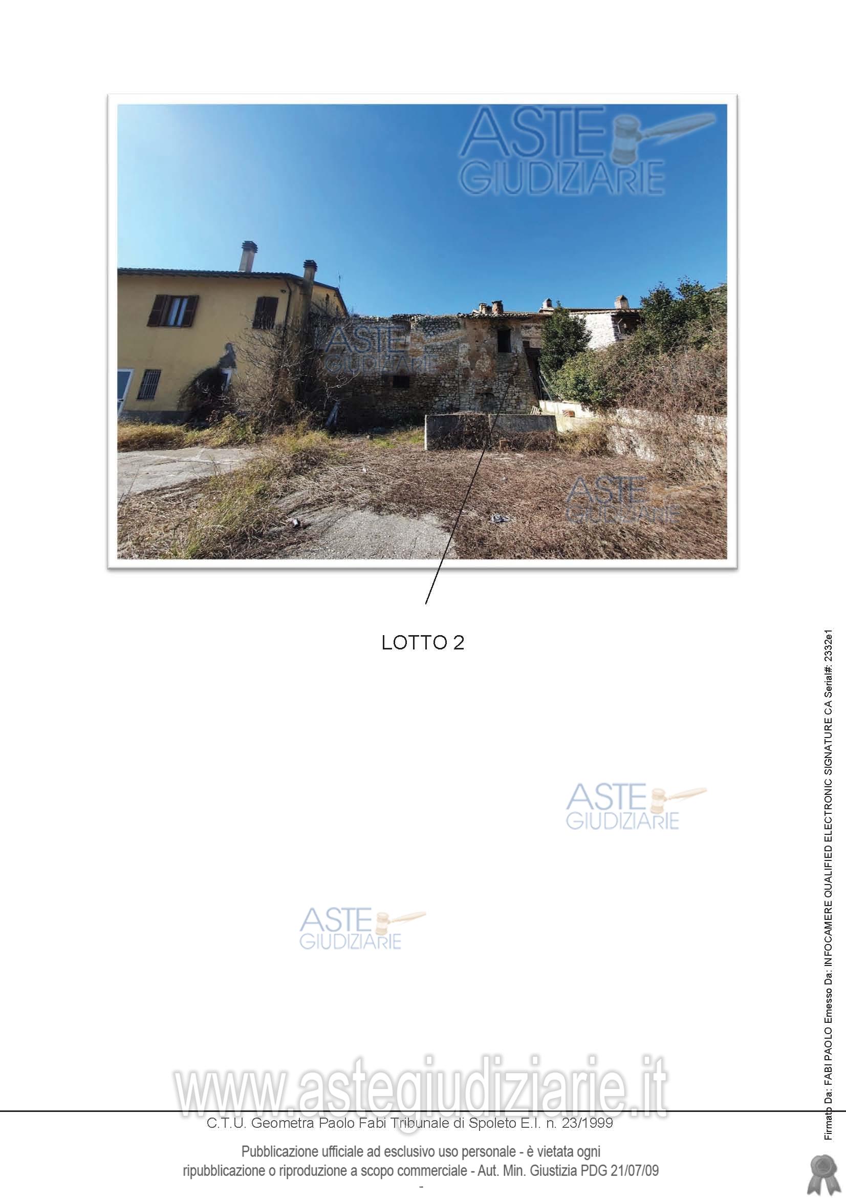 Vendita all'asta Senza incanto, con gara telematica sincrona mista - LOTTO 2: SPOLETO (PG) FRAZ. STRETTURA LOTTO 2. Prezzo base € 14.500,00 (offerta minima € 11.000,00). Data vendita 21/01/2026 ore 10:00. Giudice Alberto Cappellini. Professionista delegato alla vendita Avv. Lucia Cretoni - Email "lucia.cretoni@gmail.com"; Tel. 0743260728. Custode Giudiziario Ivg Perugia - Email "visite@ivgumbria.com"; Tel. 0755913525. Rif. Tribunale di Spoleto - Esecuzione immobiliare post legge 80 n. 23/1999