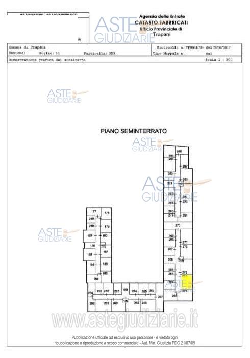 Vendita all'asta Senza incanto, con gara telematica asincrona - LOTTO C3: Warehouse located in P.S1 of about 30 square meters. Prezzo base € 9.720,00 (offerta minima € 9.720,00). Data inizio operazioni di vendita: 14/01/2026 ore 11:00. In caso di più offerte valide si procederà a gara che inizierà il 14/01/2026 ore 11:00 e terminerà il 21/01/2026 ore 00:00. Professionista delegato alla vendita Dott. Calogero Cracò - Tel. 0925 902753. Rif. Tribunale di Trapani - Misura di prevenzione n. 56/2008