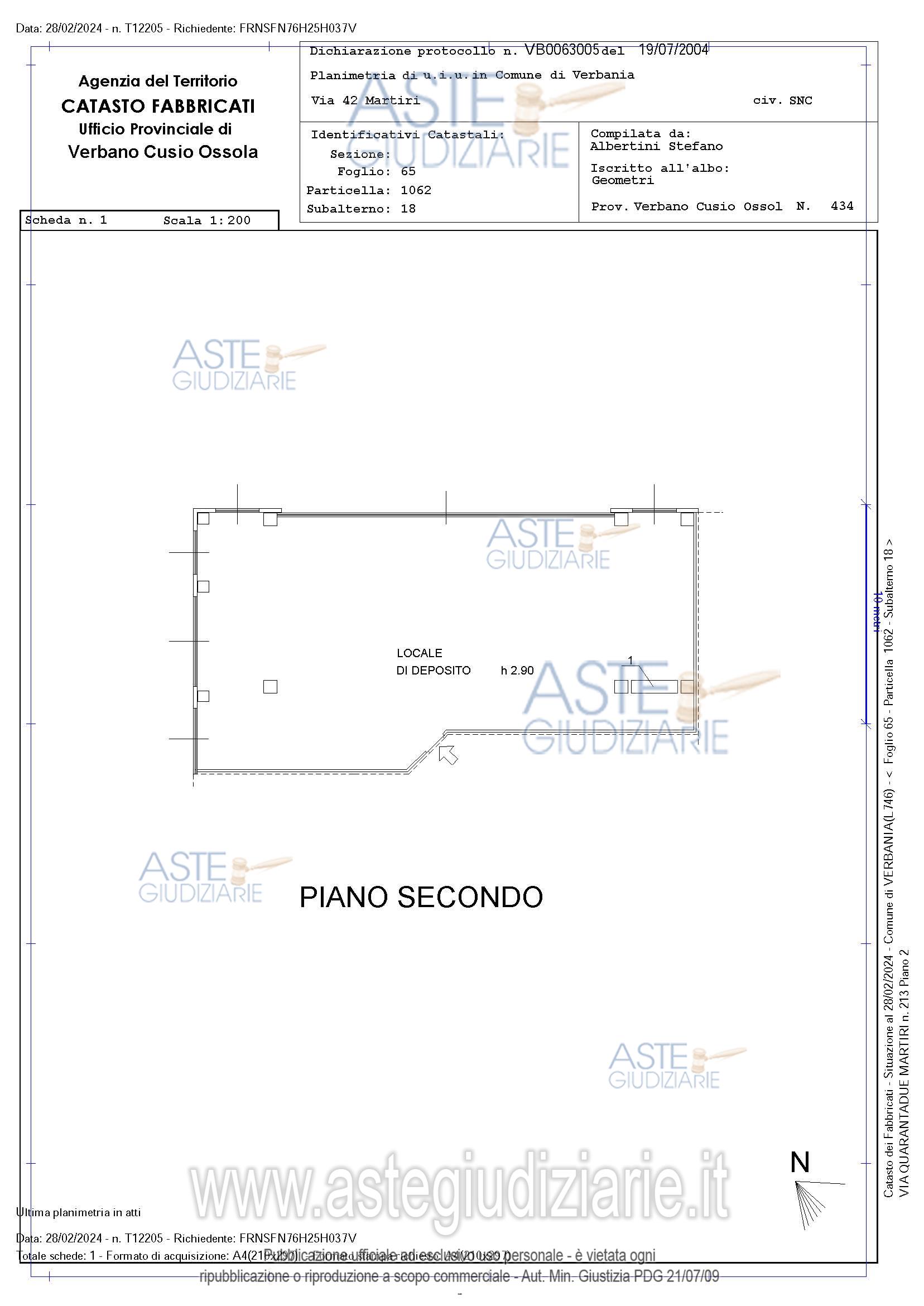 Vendita in attesa dell'emissione del nuovo bando d'asta. LOTTO 1: Unità immobiliare allo stato rustico, con destinazione deposito, composta da unico locale al piano secondo. Ultimo prezzo base € 71.500,00 (offerta minima € 53.625,00). Giudice Dott. Caterina Sinico. Custode Giudiziario Aste Giudiziarie Inlinea Spa - Email "ufficiocustodie@astegiudiziarie.it". Rif. Tribunale di Verbania - Espropriazione immobiliare (cartabia) n. 1/2024