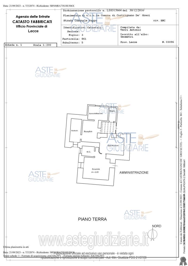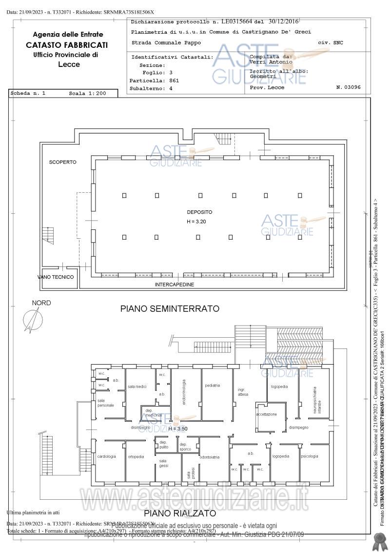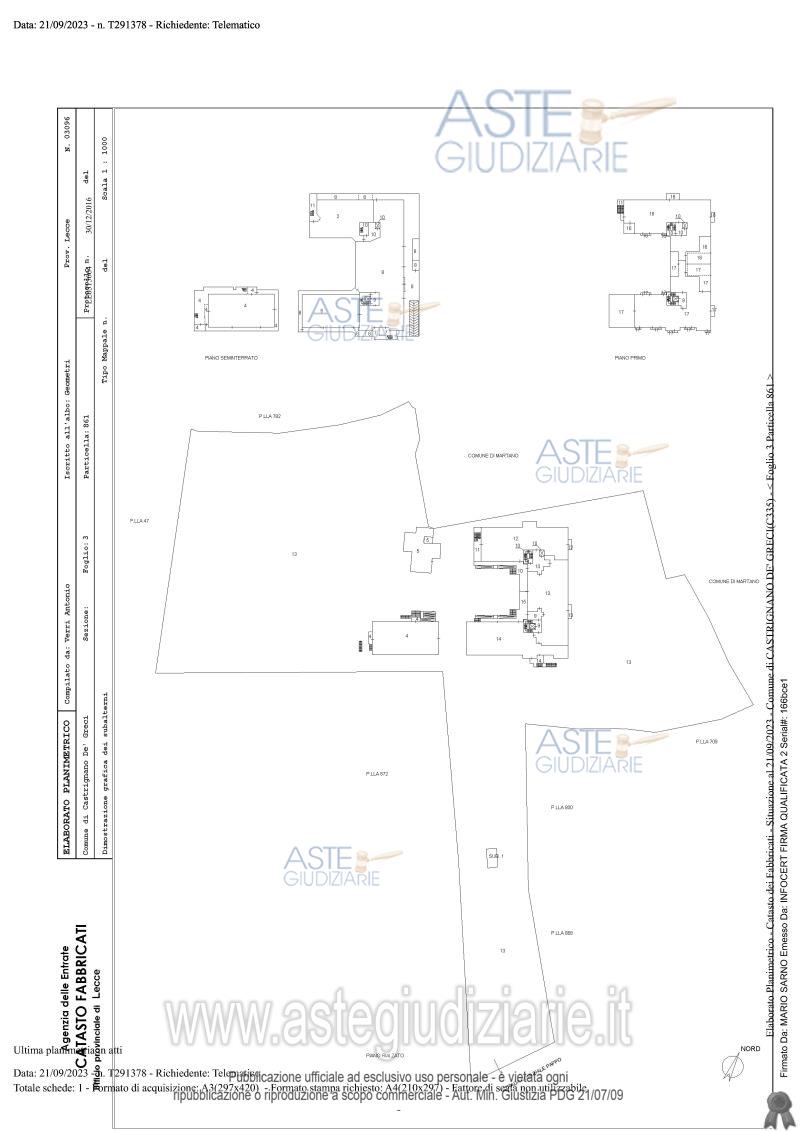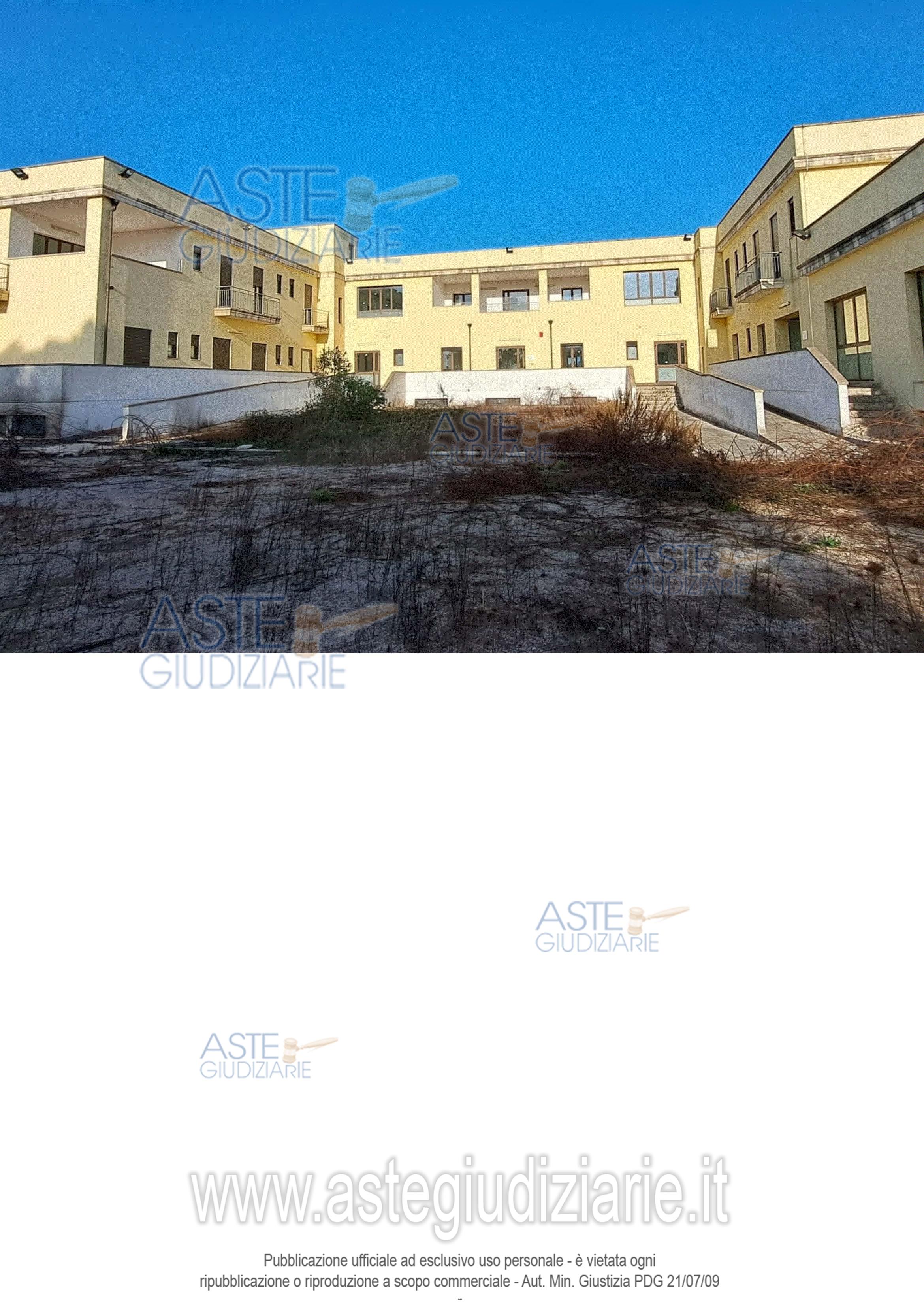 Vendita all'asta Senza incanto, con gara telematica asincrona - LOTTO UNICO: A) Residenza Socio Sanitaria Assistenziale a Castrignano de’ Greci (LE) quota 1/1 di piena proprietà, piano S1 – T – 1. B) Poliambulatorio a Castrignano de’ Greci (LE) quota 1/1 di piena proprietà, piano S1 – T. C) Amministrazione – Uffici a Castrignano de’ Greci (LE) quota 1/1 di piena proprietà, piano T. D) Terreno agricolo a Martano (LE) di 6.437,00 mq, quota 1/1 di piena proprietà, E) Terreno agricolo a Martano (LE) di 5.710,00 mq, quota 1/1 di piena proprietà,. Prezzo base € 1.425.306,00 (offerta minima € 1.068.980,00). Data inizio operazioni di vendita: 04/05/2026 ore 10:30. Professionista delegato alla vendita Avv. Andrea Rollo - Email "studiolegalerollo@virgilio.it"; Cell. 3356396309; Tel. 0832241588. Custode Giudiziario Avv. Andrea Rollo - Email "studiolegalerollo@virgilio.it"; Cell. 3356396309; Tel. 0832241588. Rif. Tribunale di Lecce - Esecuzione immobiliare post legge 80 n. 54/2023