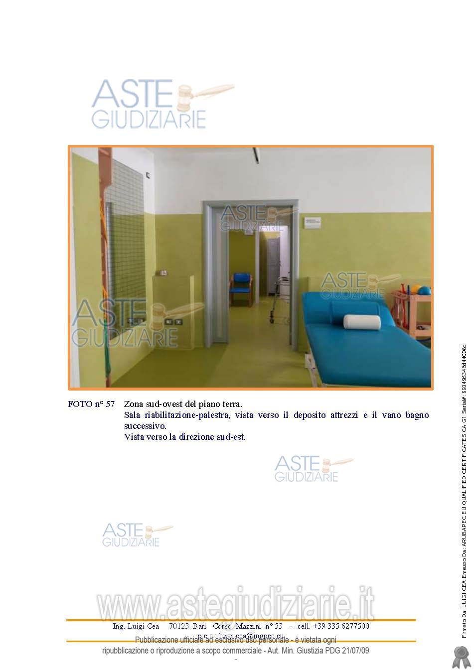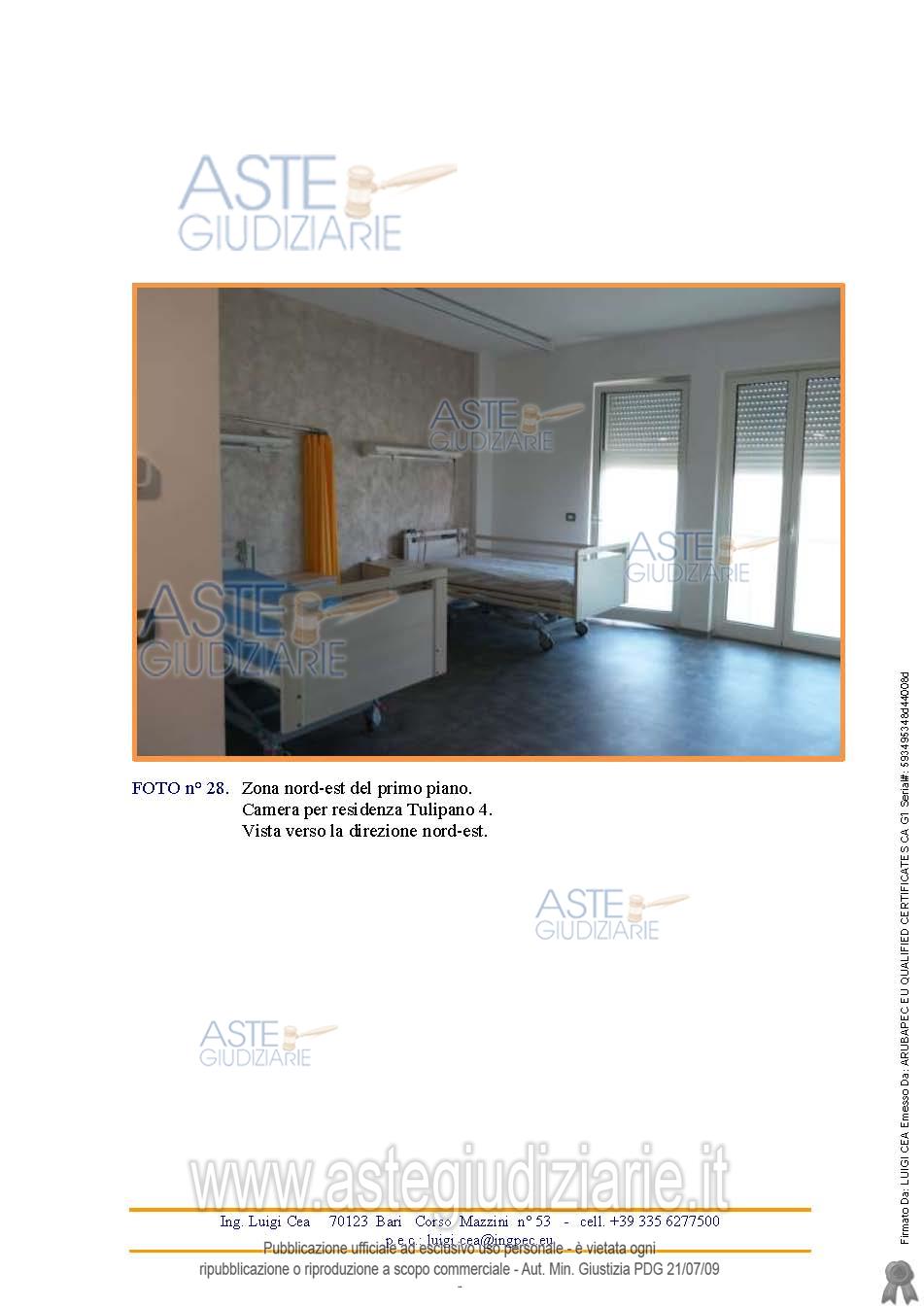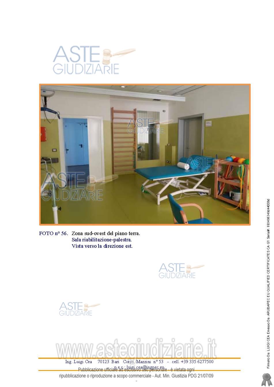 Vendita all'asta Senza incanto, con gara telematica asincrona - LOTTO UNICO: Complesso edilizio vincolato alla destinazione d’uso di “Residenza Socio Sanitaria Assistenziale per anziani e per persone non auto sufficienti”, composto da due distinti corpi di fabbrica, di cui uno principale, della consistenza complessiva di 3.186 metri quadrati, disposto su quattro livelli fuori terra, piano terra, piano primo, secondo e lastrico solare con vani tecnici al terzo piano e un fabbricato tecnologico a corpo isolato a piano terra a servizio dell’immobile principale. Prezzo base € 3.910.000,00 (offerta minima € 2.932.500,00). Data inizio operazioni di vendita: 21/05/2026 ore 16:00. Giudice Dott. Chiara Cutolo. Professionista delegato alla vendita Avv. Giulia Rossini - Email "giuliarossini@studiolegalerossini.com"; Cell. 3358263825; Tel. 0805216257. Custode Giudiziario Avv. Giulia Rossini - Email "giuliarossini@studiolegalerossini.com"; Cell. 3358263825. Rif. Tribunale di Bari - Espropriazione immobiliare (cartabia) n. 299/2024