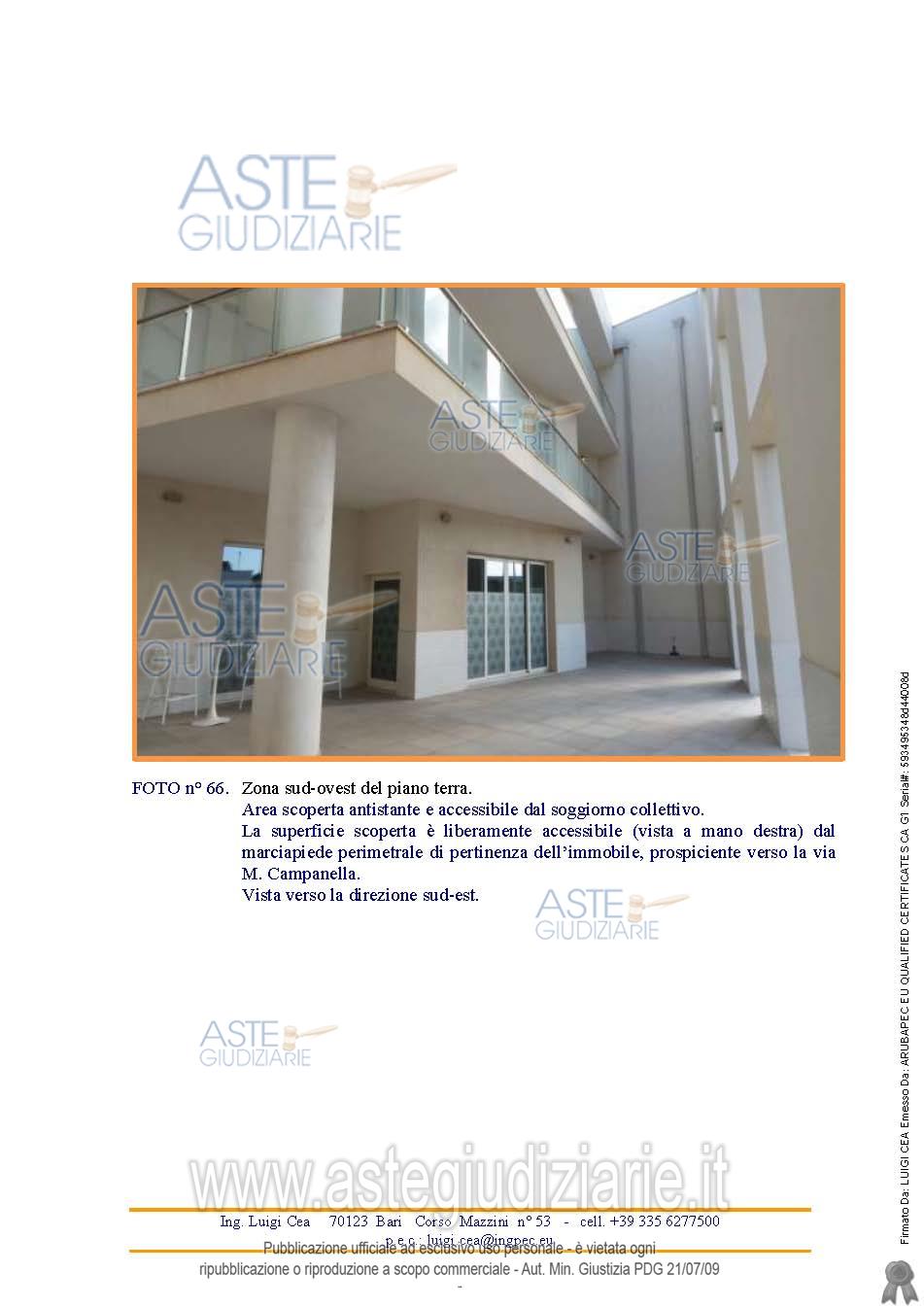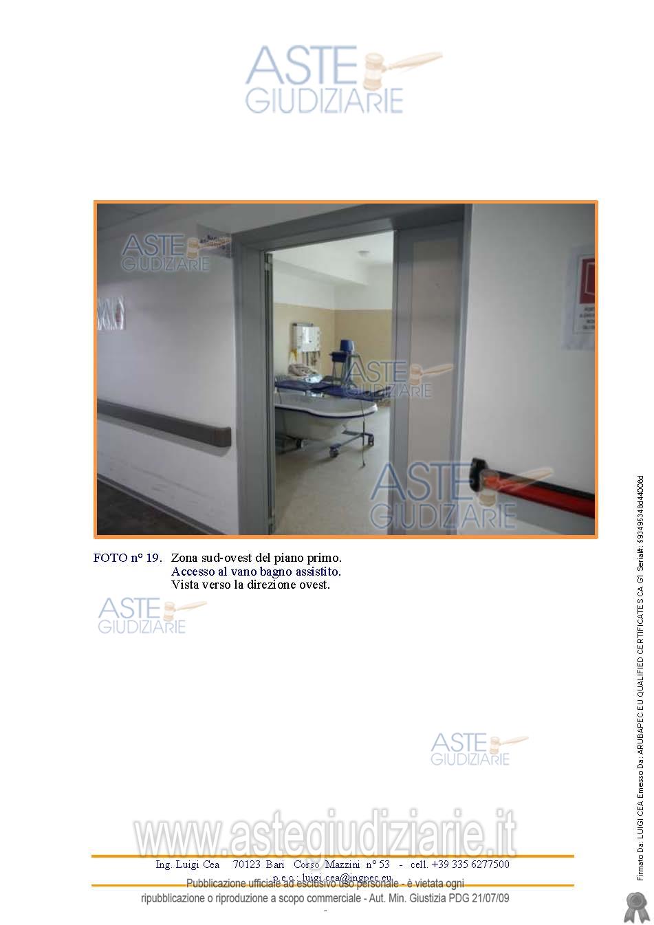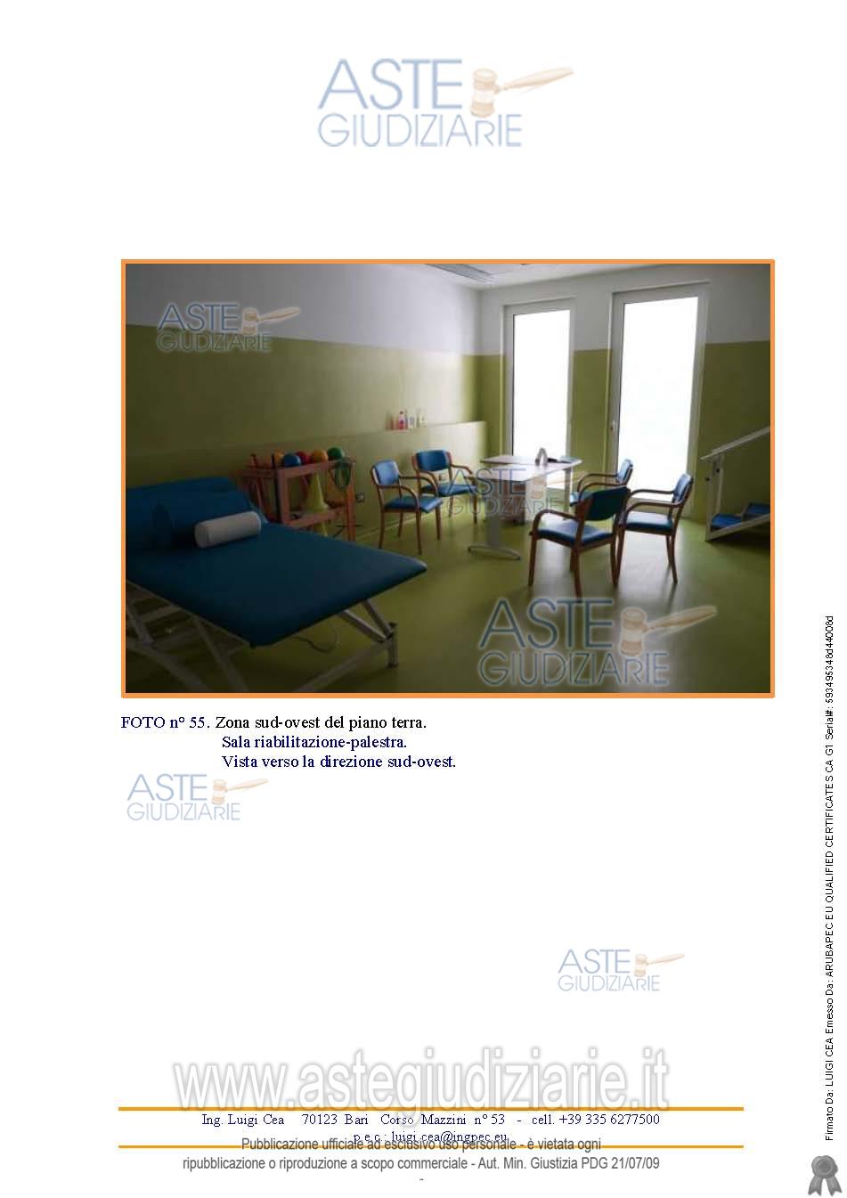 Vendita all'asta Senza incanto, con gara telematica asincrona - LOTTO UNICO: Complesso edilizio vincolato alla destinazione d’uso di “Residenza Socio Sanitaria Assistenziale per anziani e per persone non auto sufficienti”, composto da due distinti corpi di fabbrica, di cui uno principale, della consistenza complessiva di 3.186 metri quadrati, disposto su quattro livelli fuori terra, piano terra, piano primo, secondo e lastrico solare con vani tecnici al terzo piano e un fabbricato tecnologico a corpo isolato a piano terra a servizio dell’immobile principale. Prezzo base € 3.910.000,00 (offerta minima € 2.932.500,00). Data inizio operazioni di vendita: 21/05/2026 ore 16:00. Giudice Dott. Chiara Cutolo. Professionista delegato alla vendita Avv. Giulia Rossini - Email "giuliarossini@studiolegalerossini.com"; Cell. 3358263825; Tel. 0805216257. Custode Giudiziario Avv. Giulia Rossini - Email "giuliarossini@studiolegalerossini.com"; Cell. 3358263825. Rif. Tribunale di Bari - Espropriazione immobiliare (cartabia) n. 299/2024