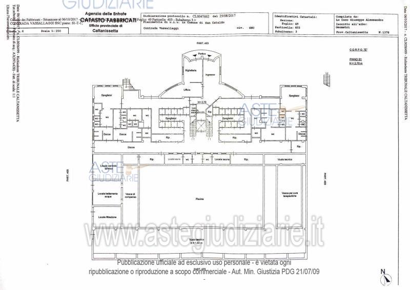 Vendita in attesa dell'emissione del nuovo bando d'asta. LOTTO 3: Centro polivalente per lo sport e il tempo libero, dotato di impiantistica costituita da piscine especchi di acqua all’aperto, attrazioni ludiche quali giochi e scivoli, campetto di calcio, salemeeting, bar, ristorante e pizzeria. Ultimo prezzo base € 2.559.551,62 (offerta minima € 1.919.663,72). Professionista delegato alla vendita Not. Giuliana Carano. Custode Giudiziario Not. Giuliana Carano - Email "gcarano@notariato.it". Rif. Tribunale di Caltanissetta - Esecuzione immobiliare post legge 80 n. 73/2013