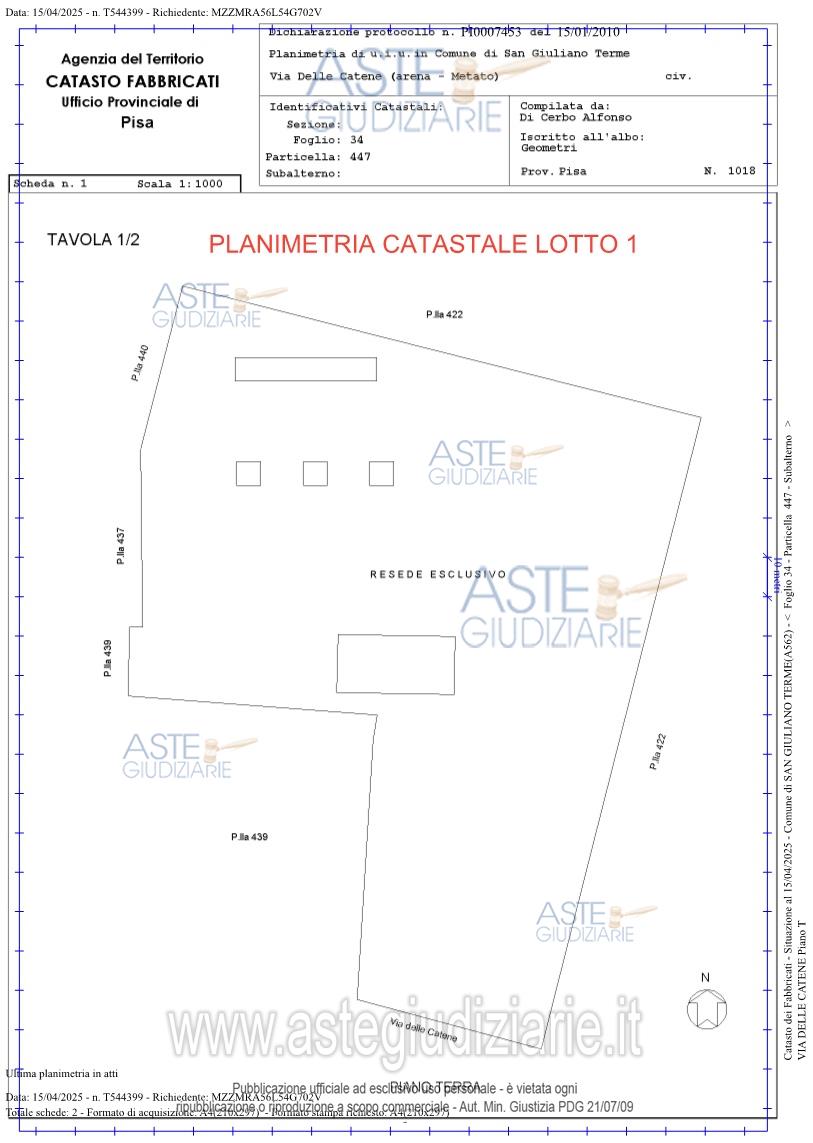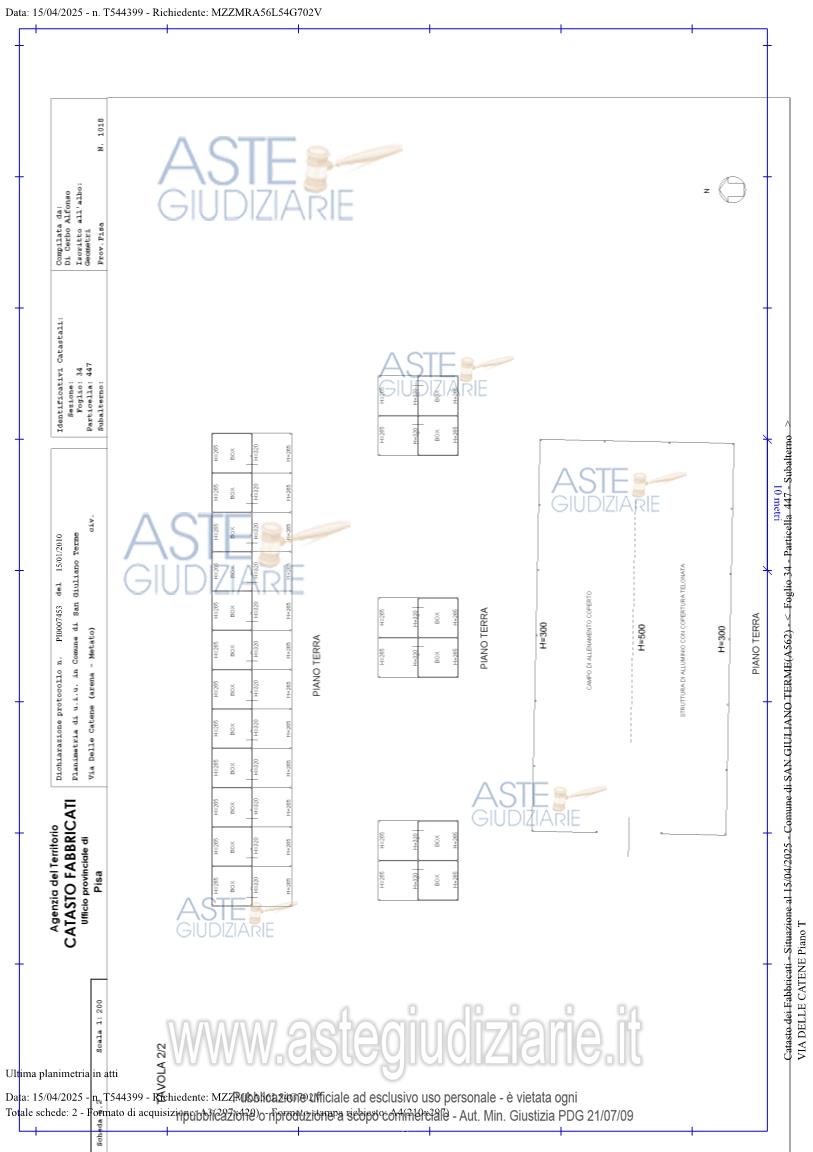 Vendita all'asta Senza incanto, con gara telematica asincrona - LOTTO 1: Scuderia ubicata a San Giuliano Terme (PI) - Via delle Catene - Arena Metato. Prezzo base € 204.000,00 (offerta minima € 153.000,00). Data inizio operazioni di vendita: 06/05/2026 ore 16:00. Giudice Pastacaldi. Professionista delegato alla vendita Dott. Maurizio Rubbini. Custode Giudiziario Dott. Cosimo Erriquez - Email "prenotazionipisa@astagiudiziaria.com"; Tel. 050554790. Rif. Tribunale di Pisa - Espropriazione immobiliare (cartabia) n. 238/2024