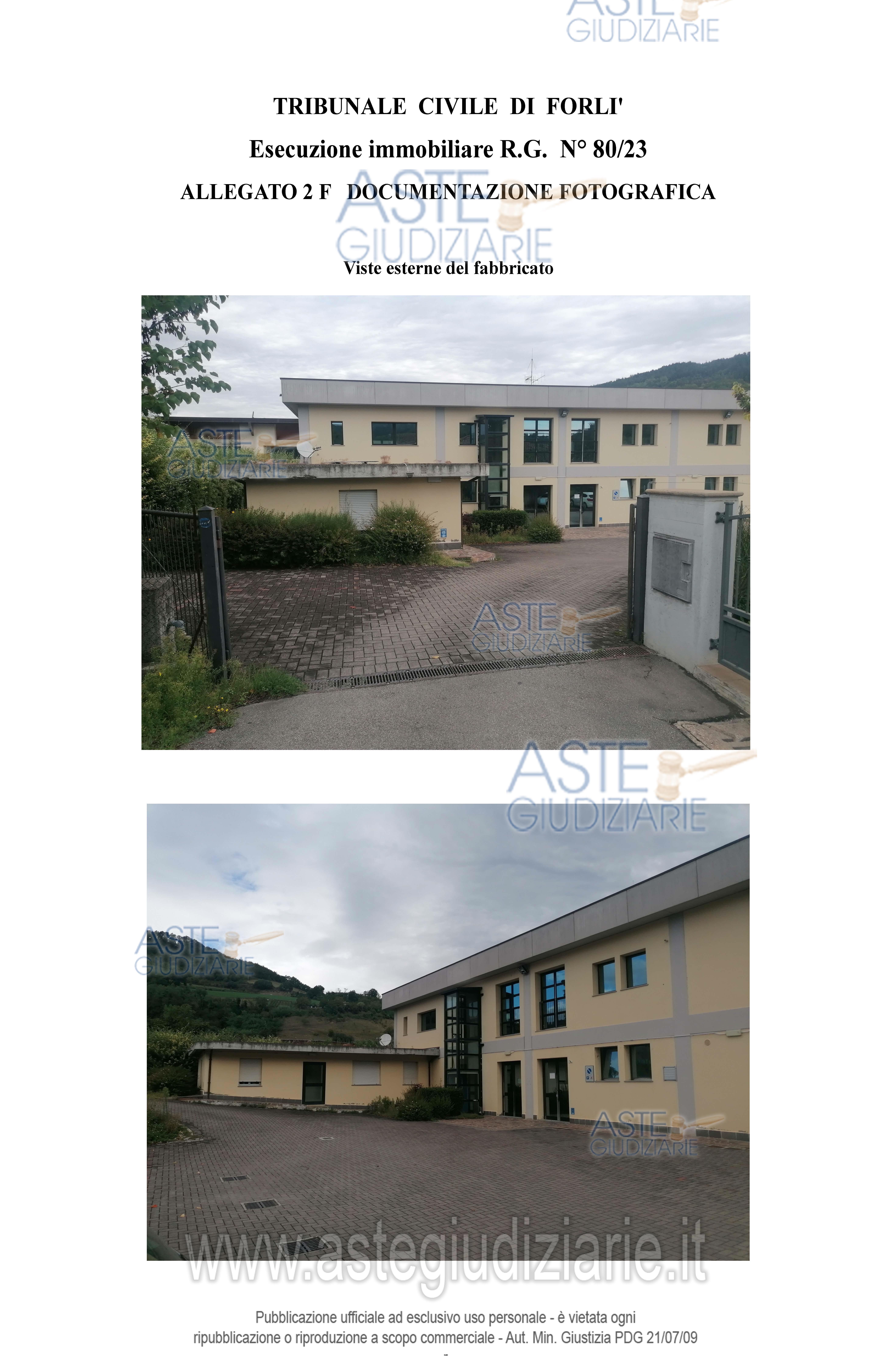 Vendita all'asta Senza incanto, con gara telematica asincrona - LOTTO UNICO: 1/1 di fabbricato ad uso “centro fitness” con annessa area cortilizia pertinenziale circostante, parzialmente recintata (in parte adibita a parcheggio), composto al piano T da ingr, servizi, bar, depositi e C.T., reception, palestra e scala interna di collegamento al 1° piano ove trovasi spogliatoi, servizi, ripostiglio e sala da ballo. Sup.commerc.tot.mq. 836,77. Occupato in forza di comodato non opponibile, autorizzato dal G.Es., con provved.del 04/11/24. Prezzo base € 217.265,63 (offerta minima € 162.949,22). Data inizio operazioni di vendita: 03/03/2026 ore 10:30. Giudice Fabio Santoro. Professionista delegato alla vendita Not. Silvia Deflorian - Email "esecuzioninotai@gmail.com"; Tel. 054320059. Custode Giudiziario Ivg Forli’ Srl - Email "ivg.forli@gmail.com"; Tel. 0543473480. Rif. Tribunale di Forlì - Espropriazione immobiliare (cartabia) n. 80/2023