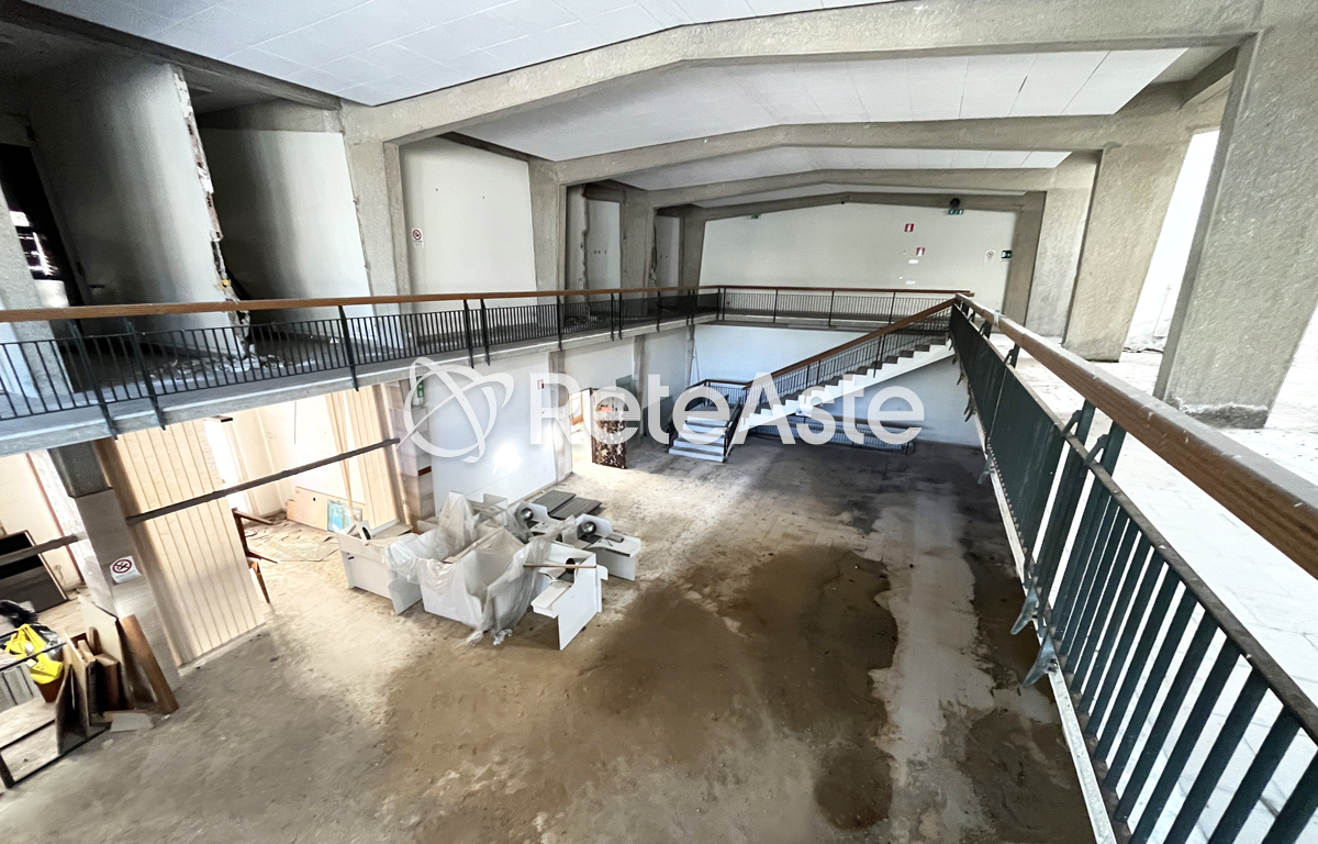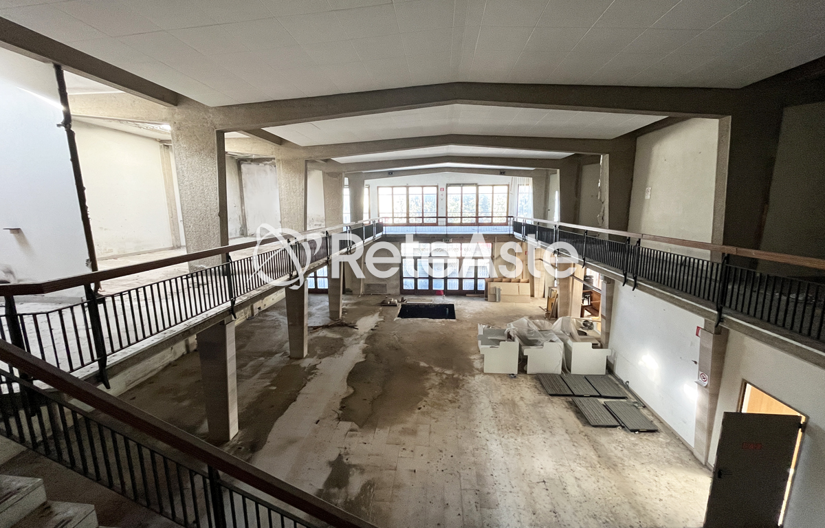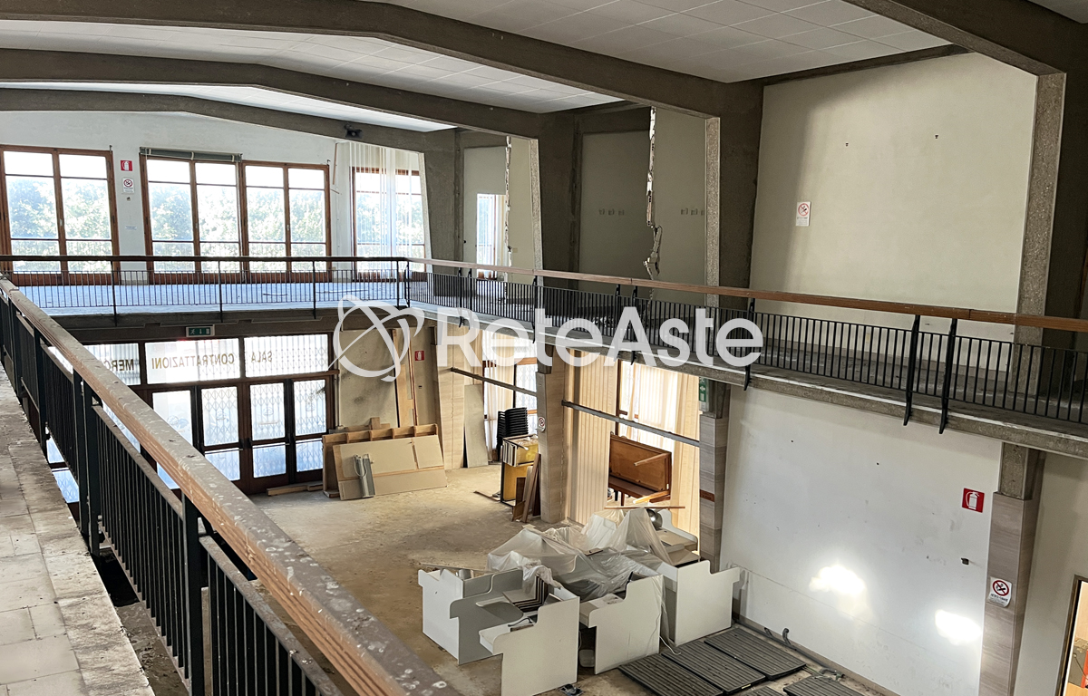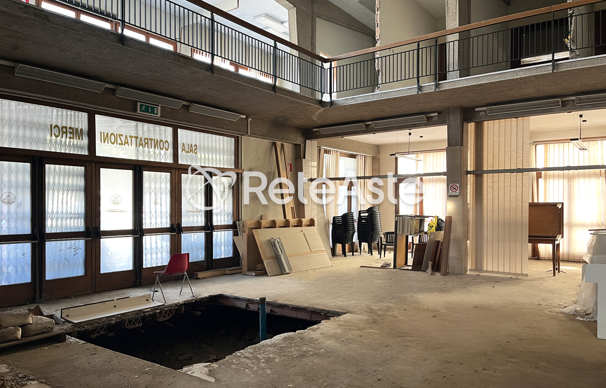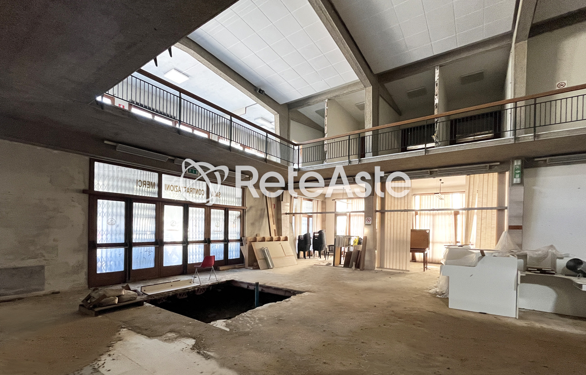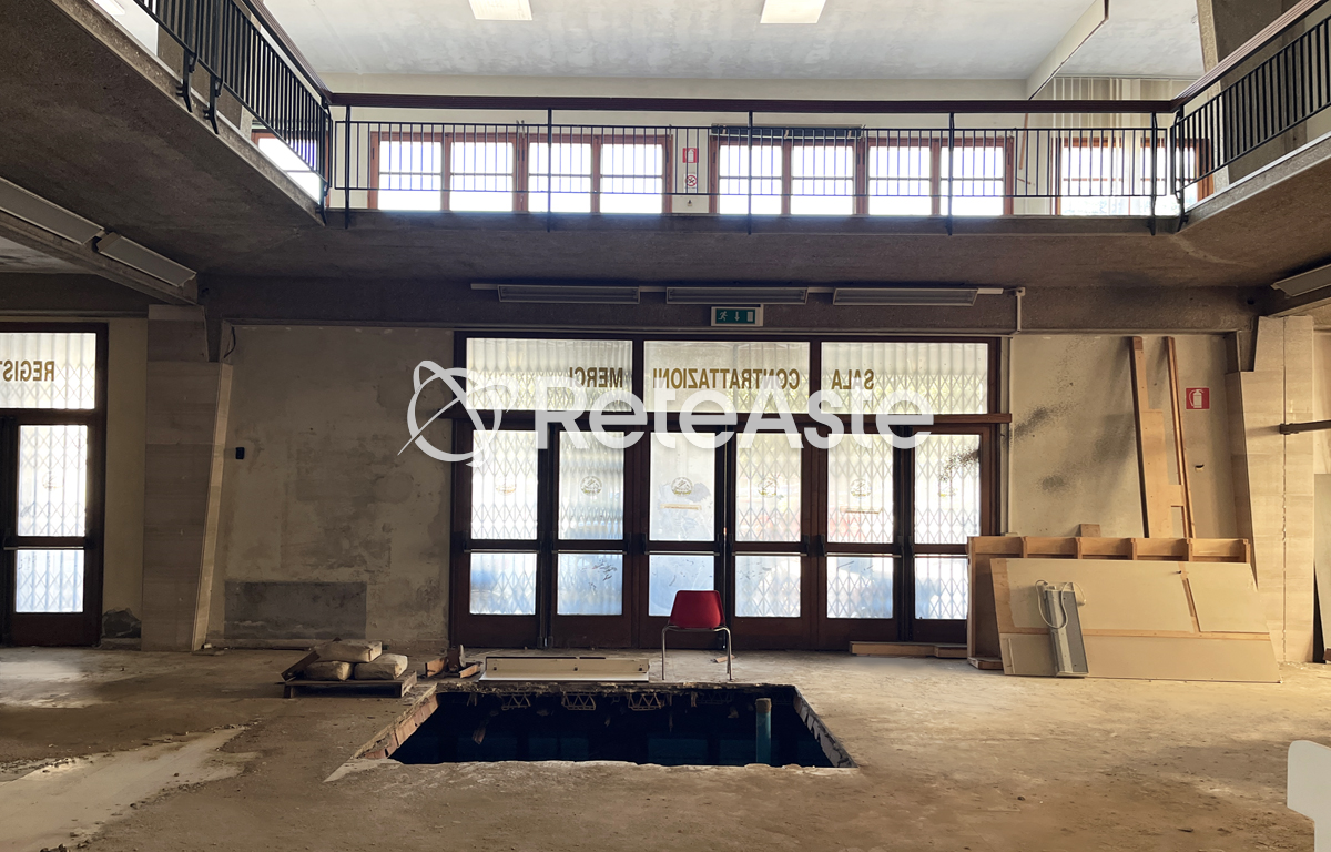 The property, discontinued since 2005 and currently vacant, is divided into three main units: - Main unit: developed on multiple levels, with the large Trading Hall on the ground floor, offices served by a perimeter internal balcony on the first floor, and large office spaces with bathrooms on the second floor. The basement is dedicated to bathrooms, the central heating system, and a storage room. - Secondary units: on the ground floor, there is a former small commercial space consisting of a single room with a bathroom, while on the second floor, there is a former service residential unit comprising an entrance, a large living area with a kitchen, two bedrooms, a bathroom, and a rooftop terrace. The property is in a poor state of maintenance, completely lacking electrical and thermo-hydraulic systems, and requires a complete renovation for any future use. Due to its central location and ample size, the building represents a significant opportunity for redevelopment for buyers with a strategic vision.