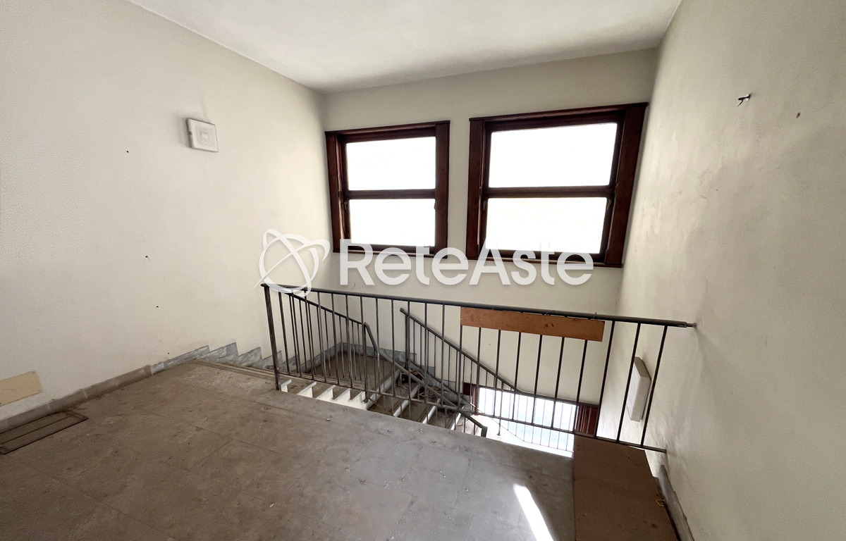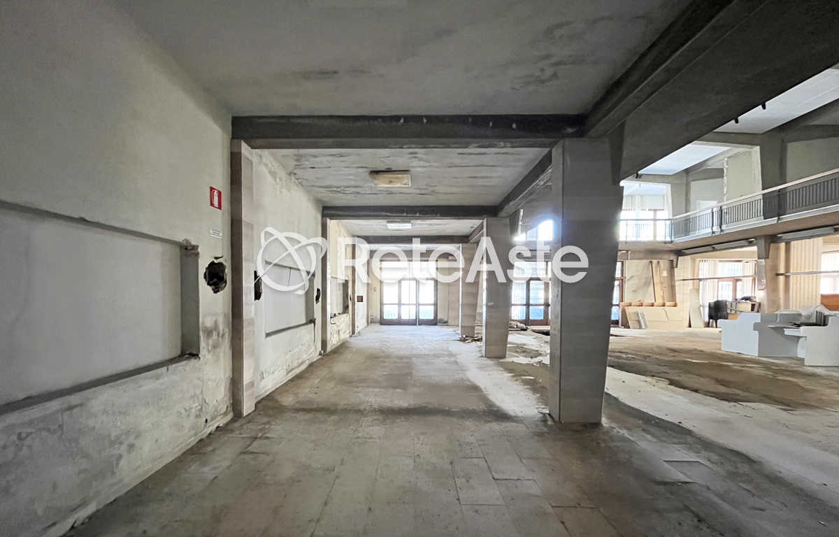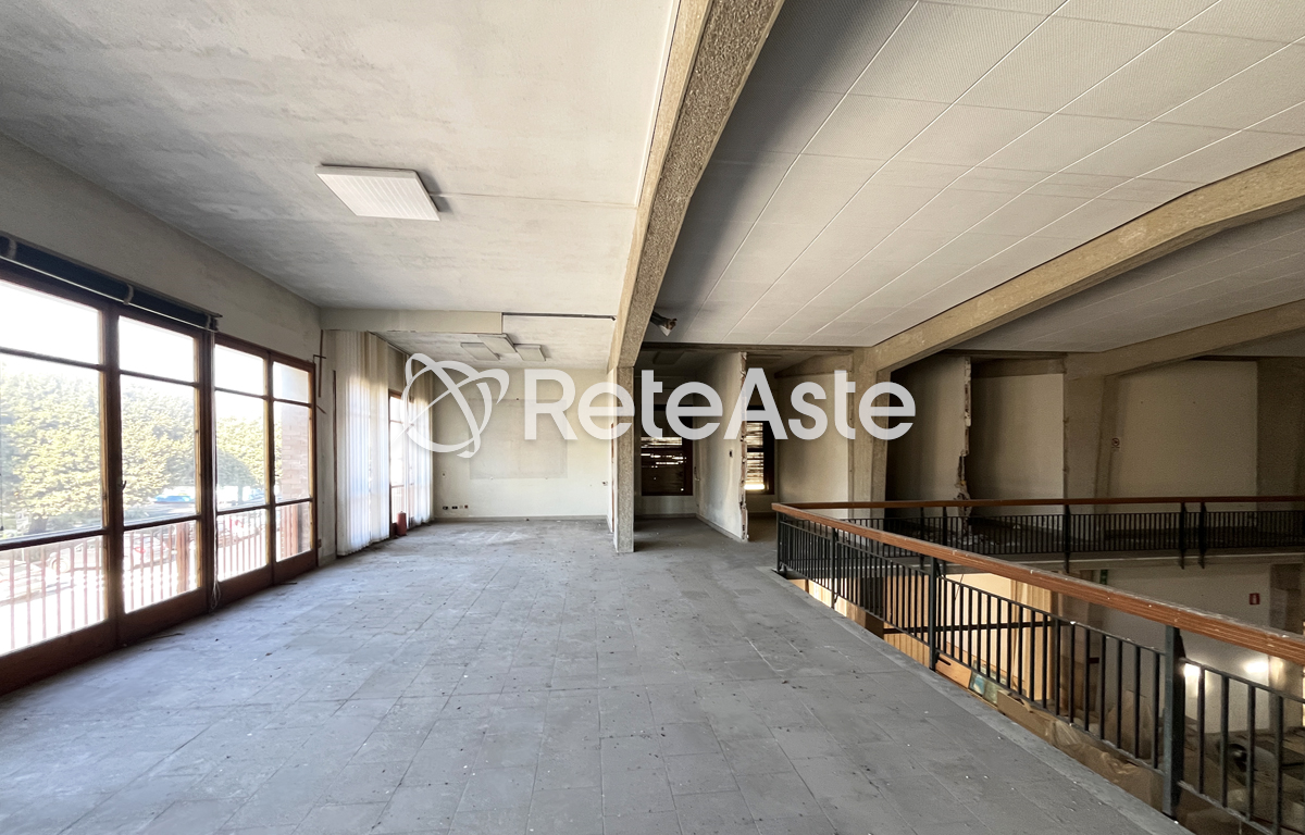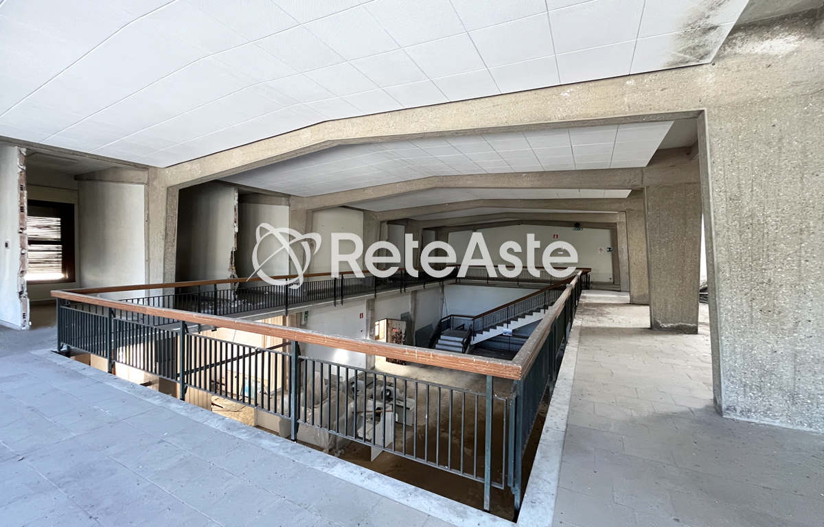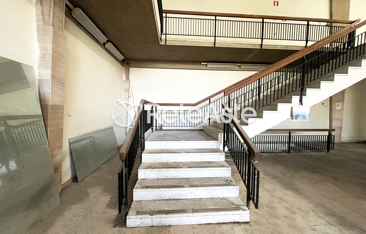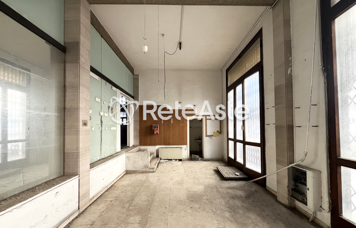 The property, discontinued since 2005 and currently vacant, is divided into three main units: - Main unit: developed on multiple levels, with the large Trading Hall on the ground floor, offices served by a perimeter internal balcony on the first floor, and large office spaces with bathrooms on the second floor. The basement is dedicated to bathrooms, the central heating system, and a storage room. - Secondary units: on the ground floor, there is a former small commercial space consisting of a single room with a bathroom, while on the second floor, there is a former service residential unit comprising an entrance, a large living area with a kitchen, two bedrooms, a bathroom, and a rooftop terrace. The property is in a poor state of maintenance, completely lacking electrical and thermo-hydraulic systems, and requires a complete renovation for any future use. Due to its central location and ample size, the building represents a significant opportunity for redevelopment for buyers with a strategic vision.