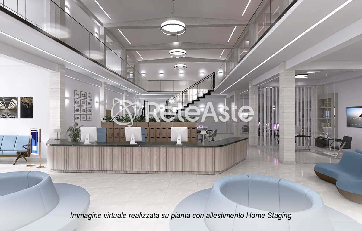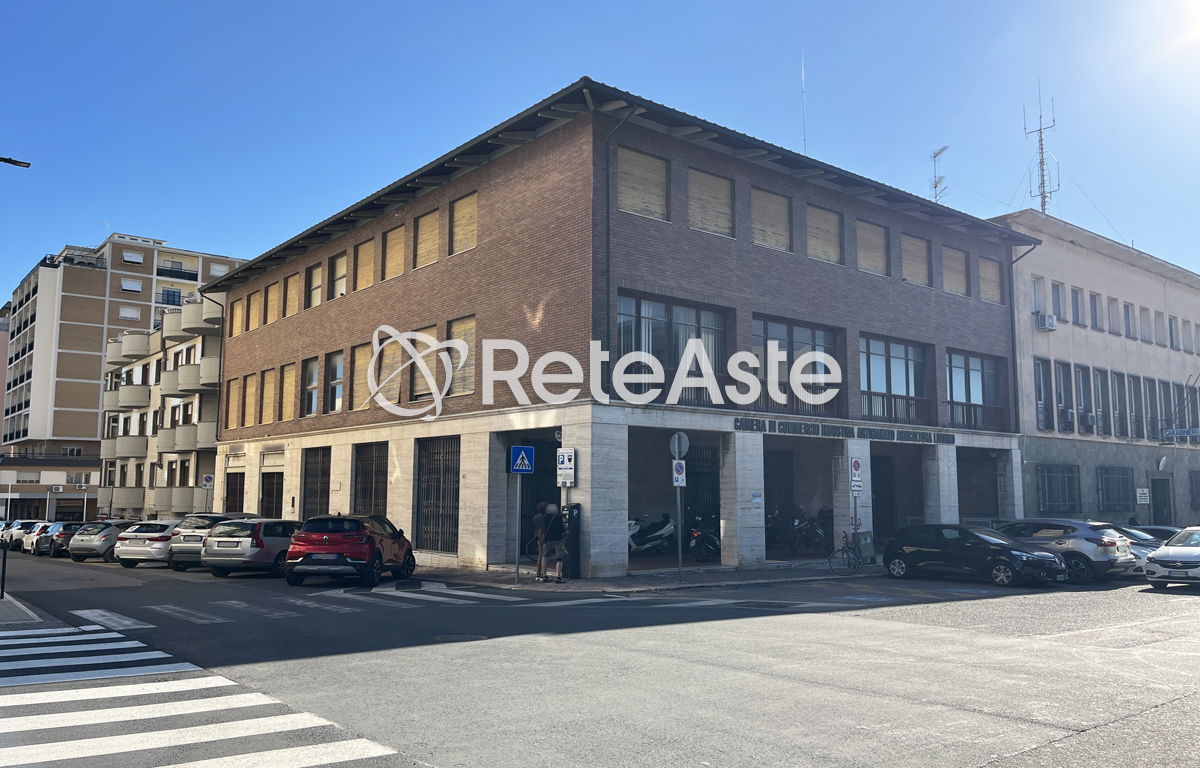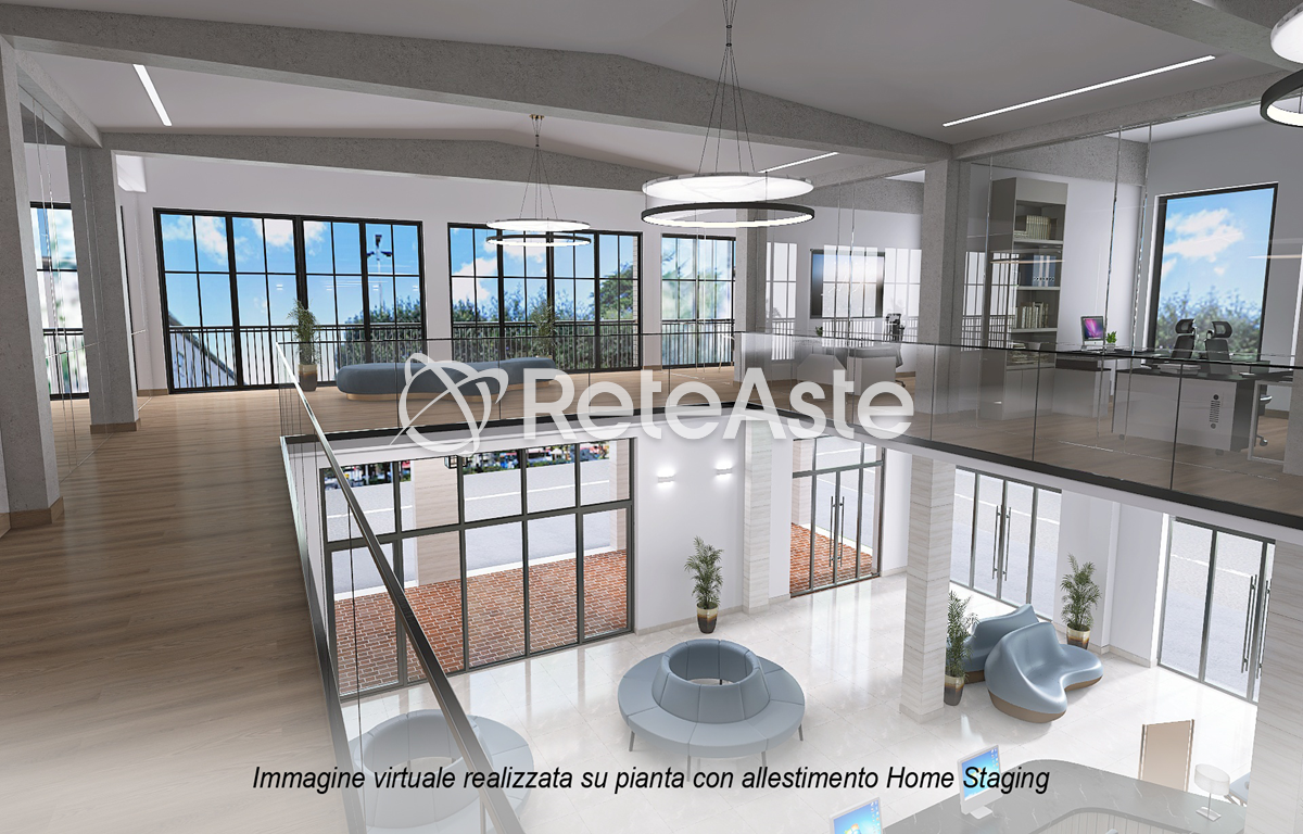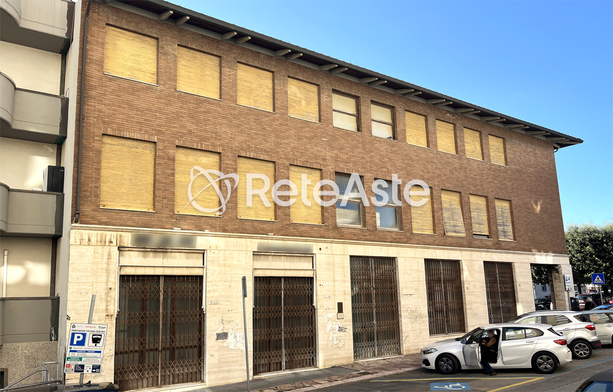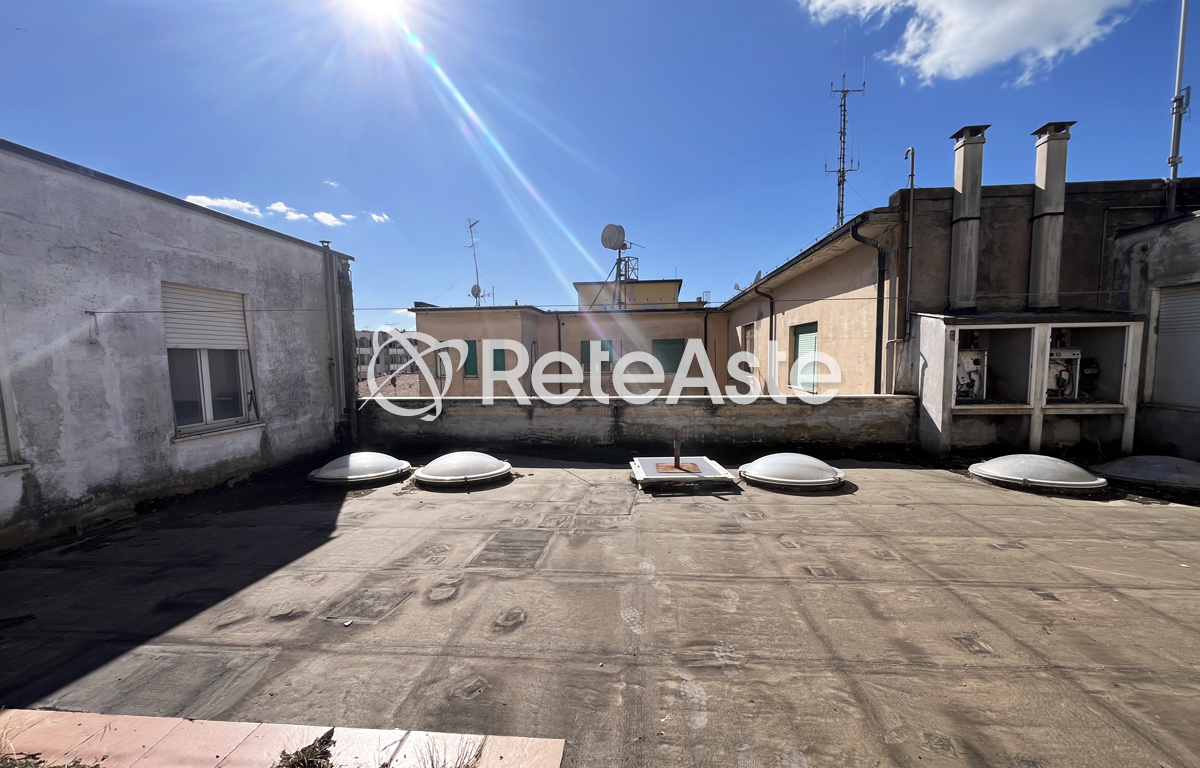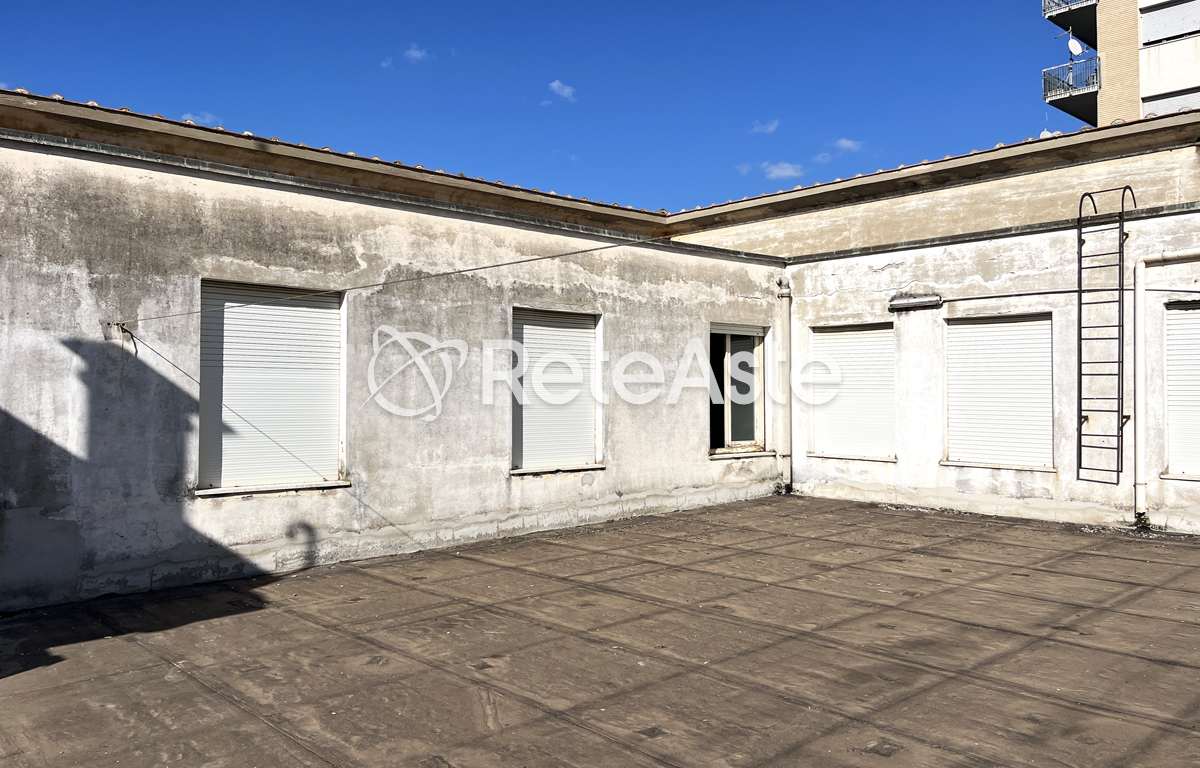 The property, discontinued since 2005 and currently vacant, is divided into three main units: - Main unit: developed on multiple levels, with the large Trading Hall on the ground floor, offices served by a perimeter internal balcony on the first floor, and large office spaces with bathrooms on the second floor. The basement is dedicated to bathrooms, the central heating system, and a storage room. - Secondary units: on the ground floor, there is a former small commercial space consisting of a single room with a bathroom, while on the second floor, there is a former service residential unit comprising an entrance, a large living area with a kitchen, two bedrooms, a bathroom, and a rooftop terrace. The property is in a poor state of maintenance, completely lacking electrical and thermo-hydraulic systems, and requires a complete renovation for any future use. Due to its central location and ample size, the building represents a significant opportunity for redevelopment for buyers with a strategic vision.