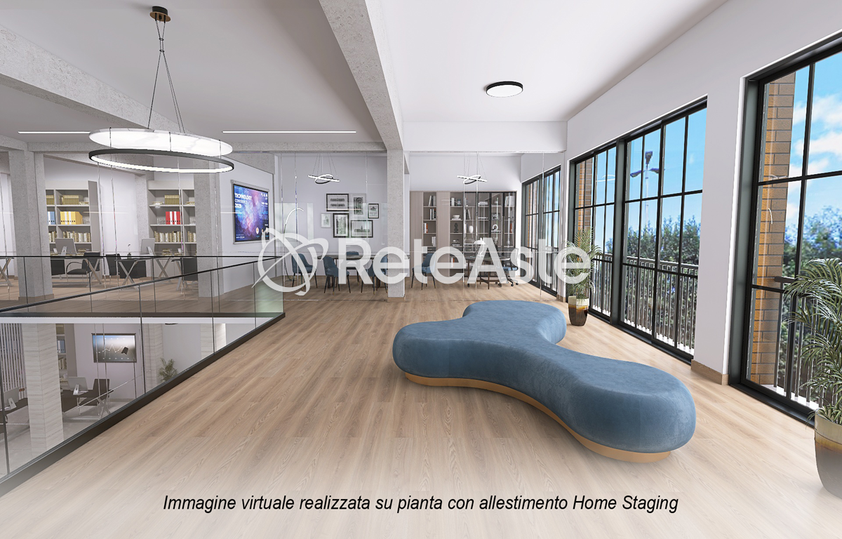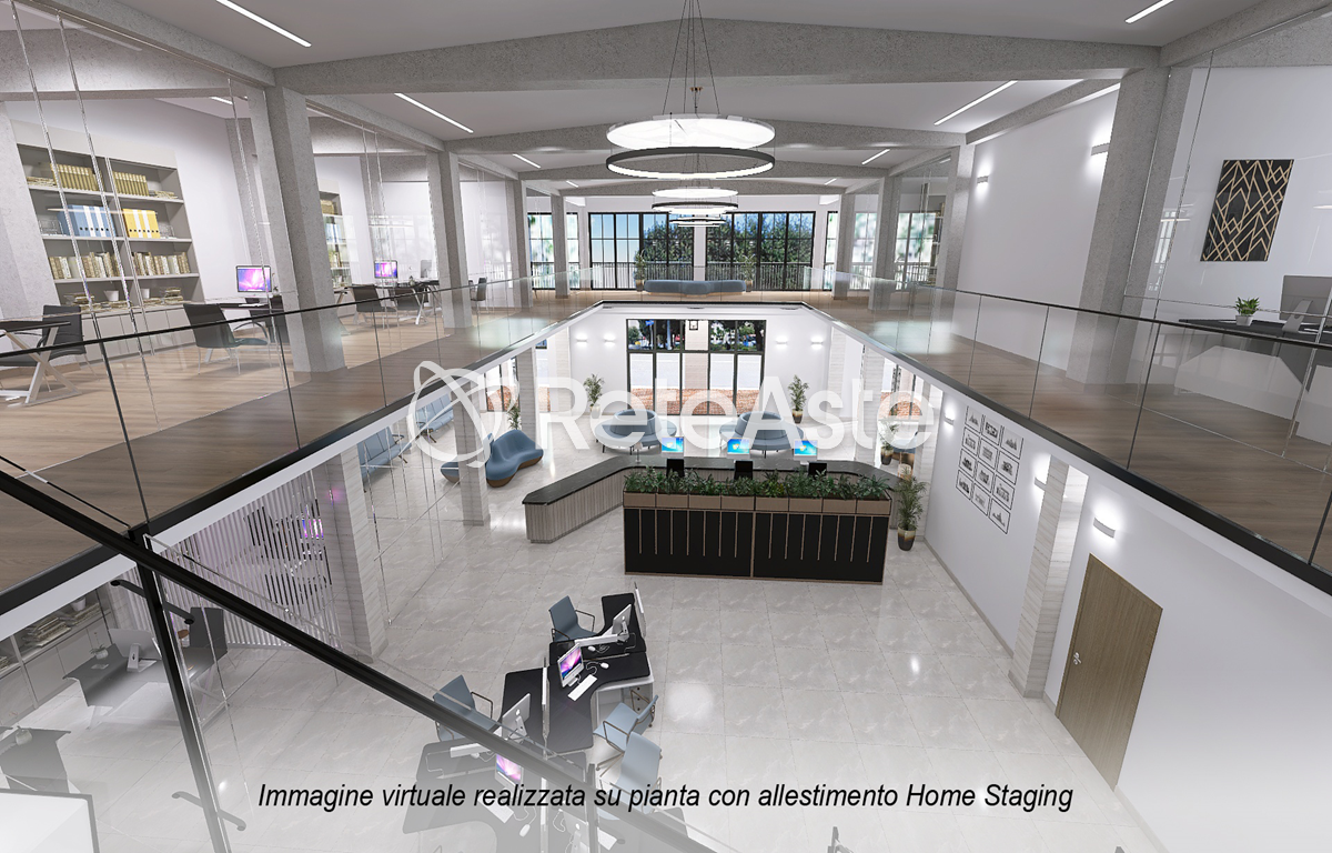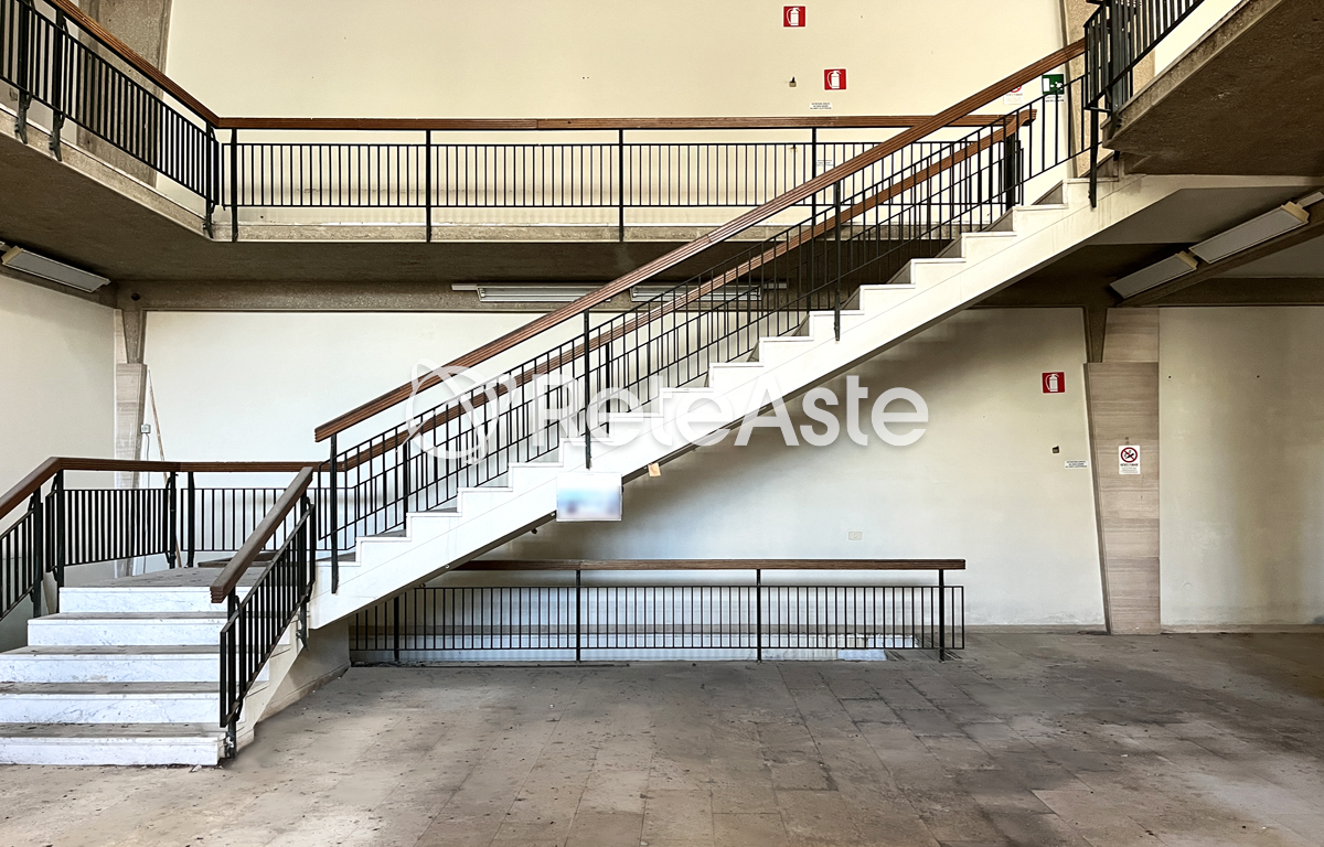 • unità principale: sviluppata su più livelli, con al piano terra l’ampia Sala per le Contrattazioni, al primo piano uffici serviti da balconata perimetrale interna e al secondo piano grandi vani uso ufficio con servizi igienici. Il piano seminterrato è destinato ai servizi igienici e centrale termica e locale di deposito.