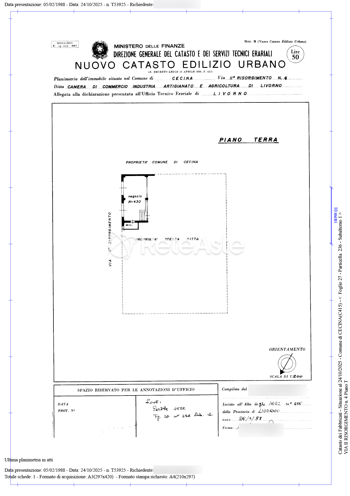 Vente en attente de l’émission d’un avis nouveau. Multifunktionsgebäude im Herzen von Cecina, in einer Gegend mit einer hohen Konzentration von Dienstleistungen. In unmittelbarer Nähe befinden sich öffentliche Ämter, die Kaserne der Carabinieri, Filialen von Banken und Einzelhandelsgeschäften. Der Freiheitsplatz, an dem sich der Haupteingang befindet, beherbergt die Bushaltestelle, während der Bahnhof nur wenige Minuten zu Fuß entfernt ist. Die Nähe zur verkehrsberuhigten und Fußgängerzone garantiert ausgezeichnete Anbindungen an den öffentlichen Verkehr und verschiedene Parkmöglichkeiten in der Umgebung. Das Gebäude wurde zwischen 1957 und 1961 aus Stahlbeton erbaut und erstreckt sich über drei oberirdische Etagen sowie einen halbunterirdischen Raum. Die Außenfassaden sind gemischt gestaltet: "Abschlussstein" im Erdgeschoss und Sichtziegel in den oberen Etagen. Der Haupteingang zum Freiheitsplatz ist durch einen monumentalen Portikus mit feinen architektonischen Details geprägt. Das Immobilie, seit 2005 nicht mehr genutzt und derzeit leerstehend, ist in drei Haupteinheiten unterteilt: • Haupteinheit: über mehrere Etagen, mit einem großen Verhandlungssaal im Erdgeschoss, Büroräumen mit einem umlaufenden Balkon im ersten Stock und großen Bürozimmern mit Badezimmern im zweiten Stock. Der Halbuntergeschoss ist für Badezimmer, Heizraum und Lagerraum vorgesehen. • Nebeneinheiten: Im Erdgeschoss befindet sich ein ehemaliges kleines Ladengeschäft bestehend aus einem einzigen Raum mit Badezimmer, während im zweiten Stock eine ehemalige Service-Wohnung besteht, bestehend aus Eingangsbereich, großem Wohnbereich mit Küche, zwei Schlafzimmern, Bad und Dachterrasse. Das Gebäude befindet sich in einem schlechten Zustand, komplett ohne elektrische und wärmetechnische Anlagen und bedarf einer umfassenden Sanierung für jede zukünftige Nutzung. Aufgrund der zentralen Lage und der großen Grundfläche stellt das Gebäude eine bedeutende Gelegenheit zur Wiederbelebung für Käufer mit strategischem Blick dar. Das Gebäude ist günstig gelegen in Bezug auf die Hauptverkehrswege: Die Staatsstraße Aurelia und die Anbindung an die Autobahn A12 sind leicht erreichbar, was schnelle Verbindungen zu den benachbarten Städten ermöglicht.