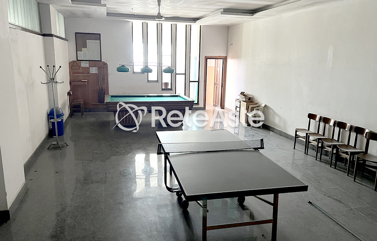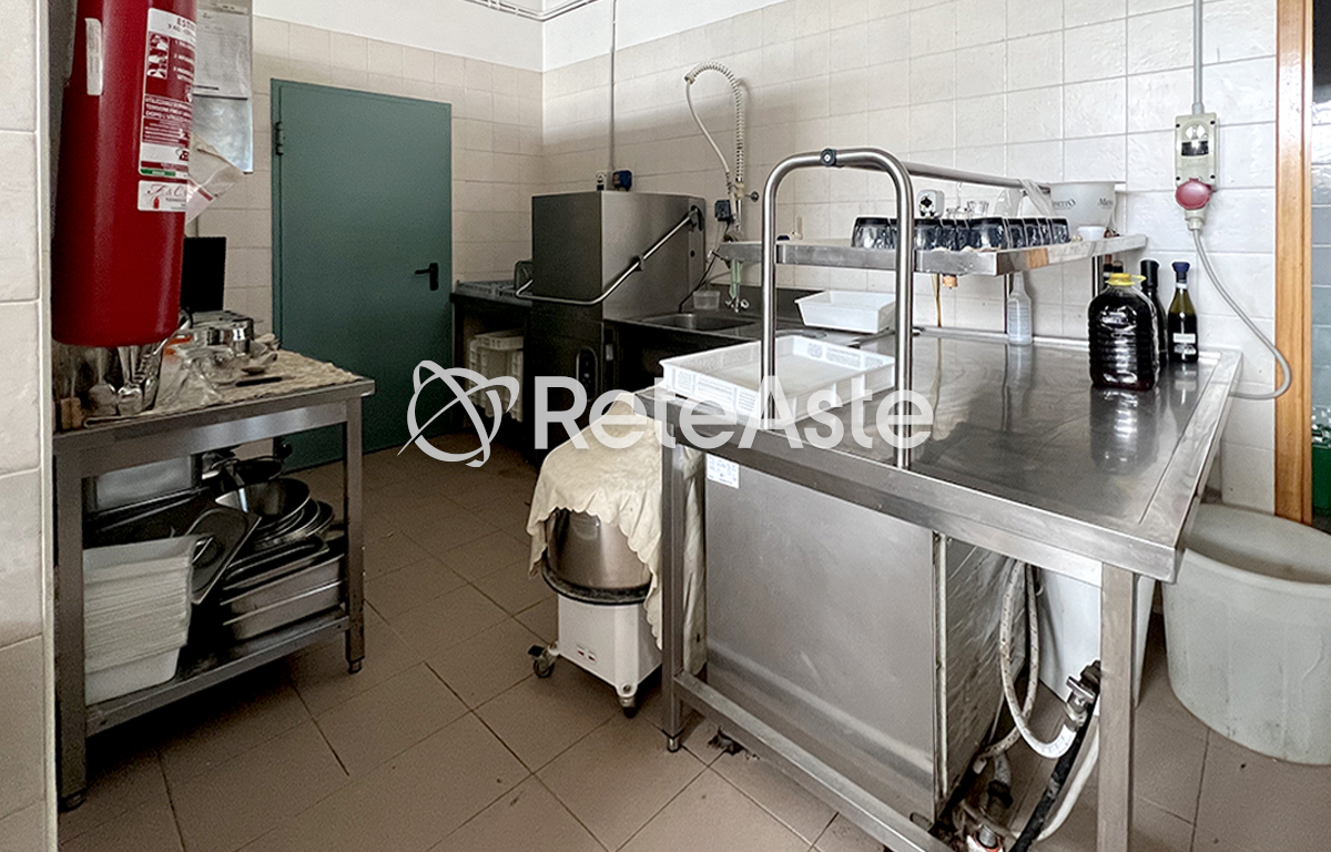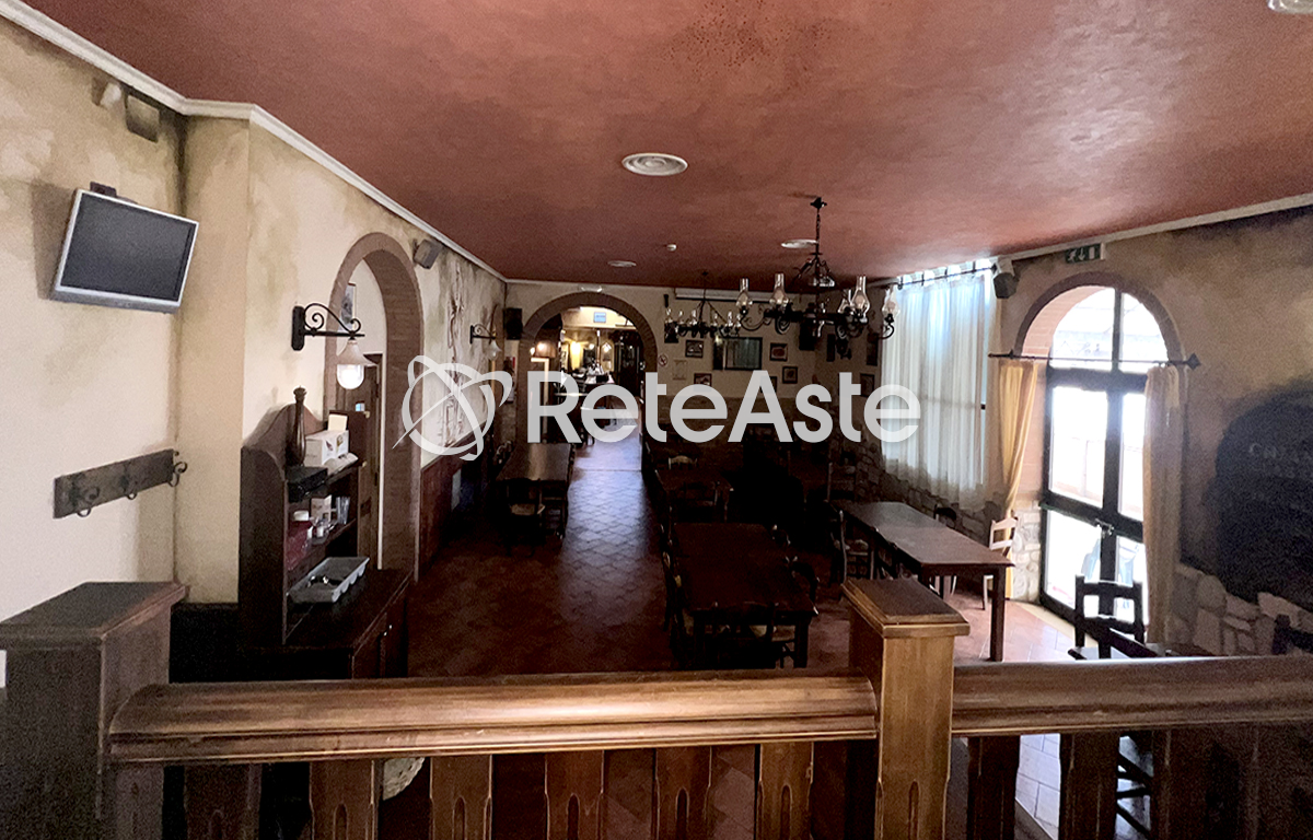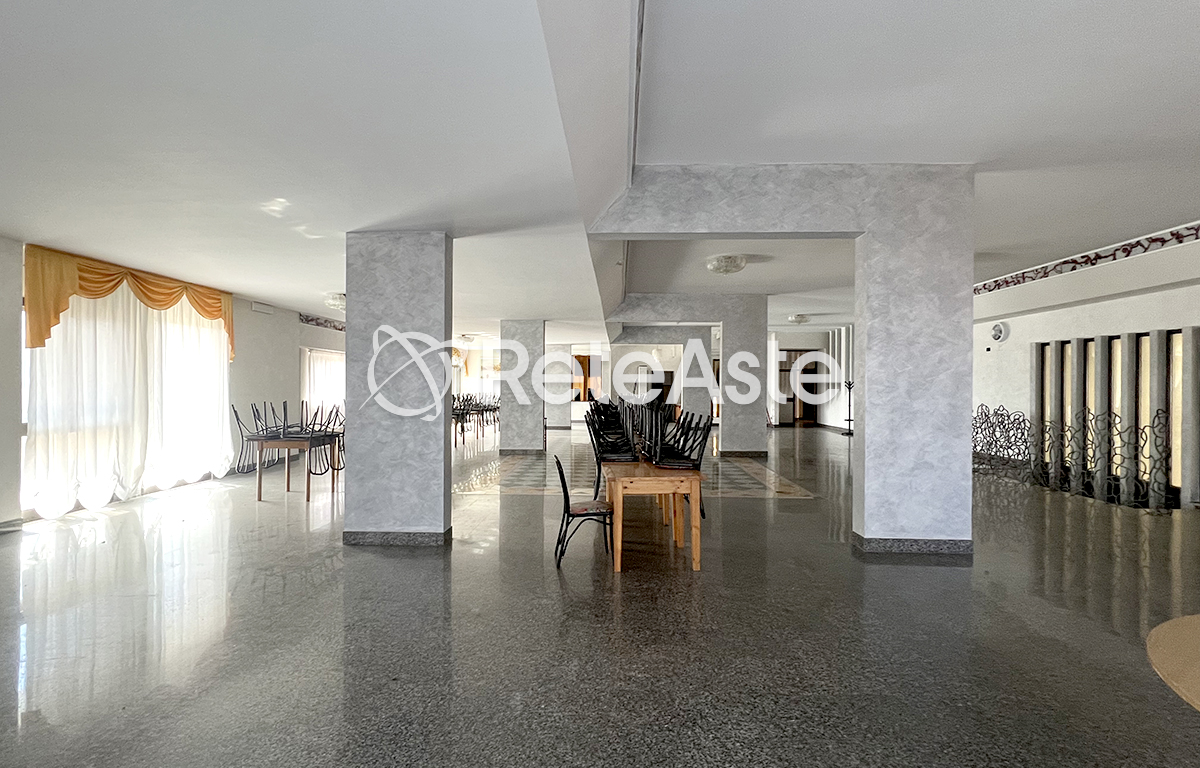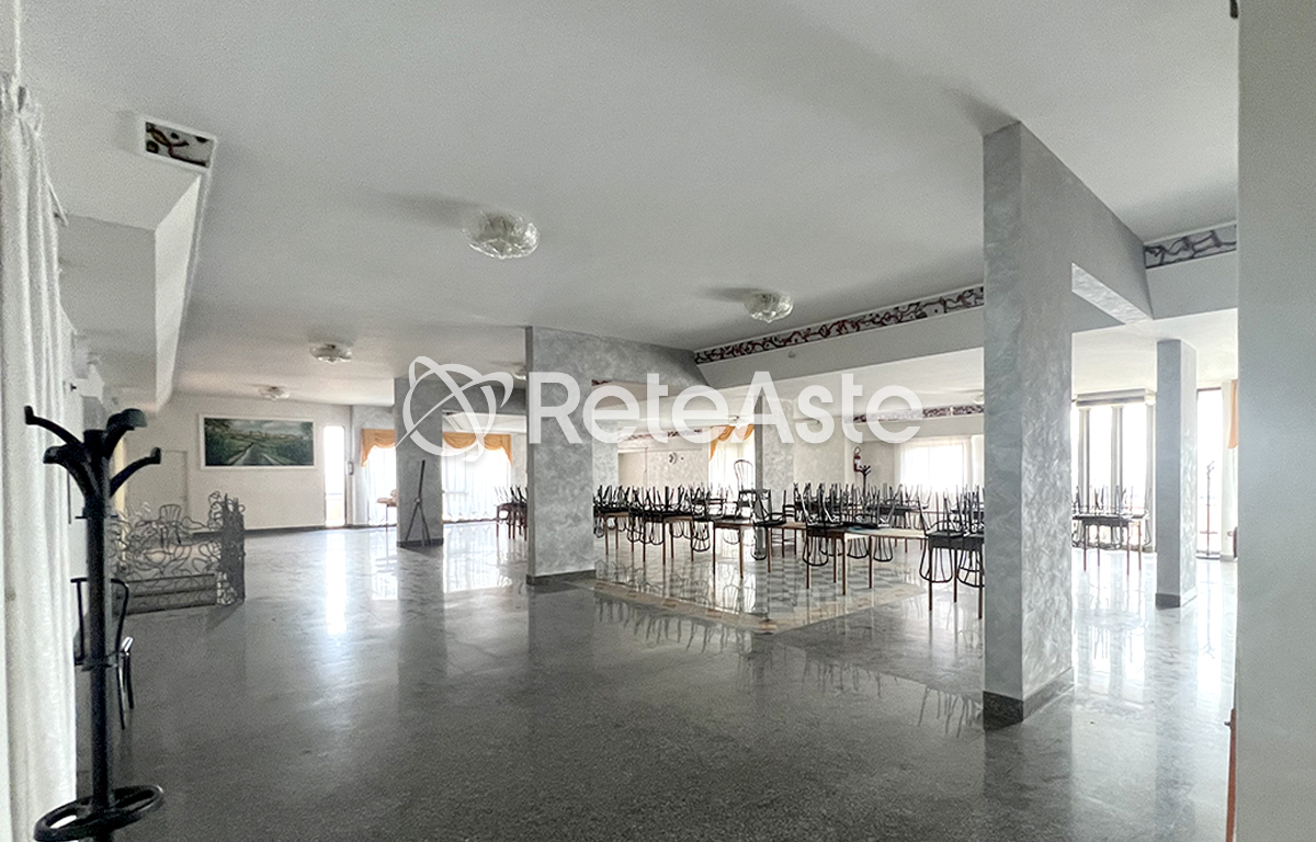 The structure, built in the early 1980s and with a total area of approximately 3,450 square meters, is developed on five levels: in the basement floors there are technical rooms, such as the heating plant, the autoclave, and the generator, along with a restaurant-pizzeria with an attached pub, kitchen, and bathrooms. On the raised ground floor, spacious reception rooms and panoramic terraces are ideal spaces for events and ceremonies.