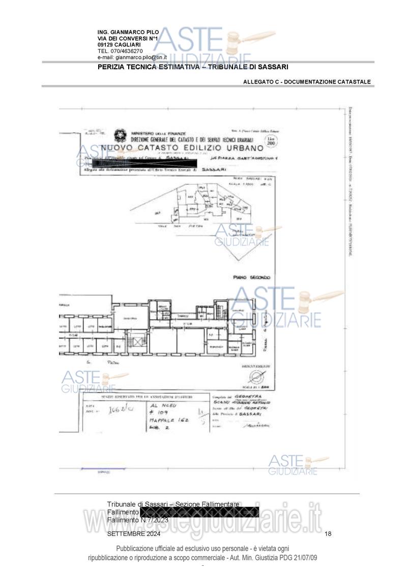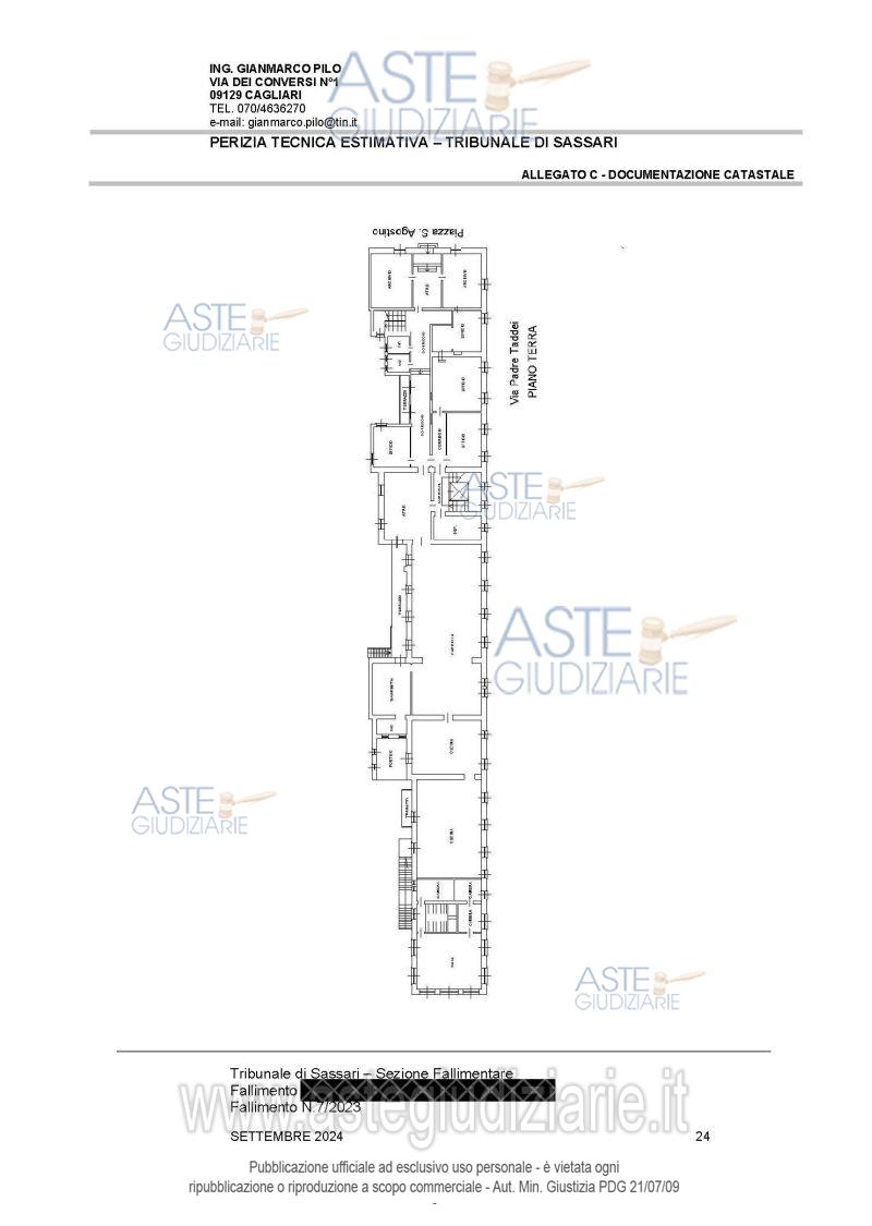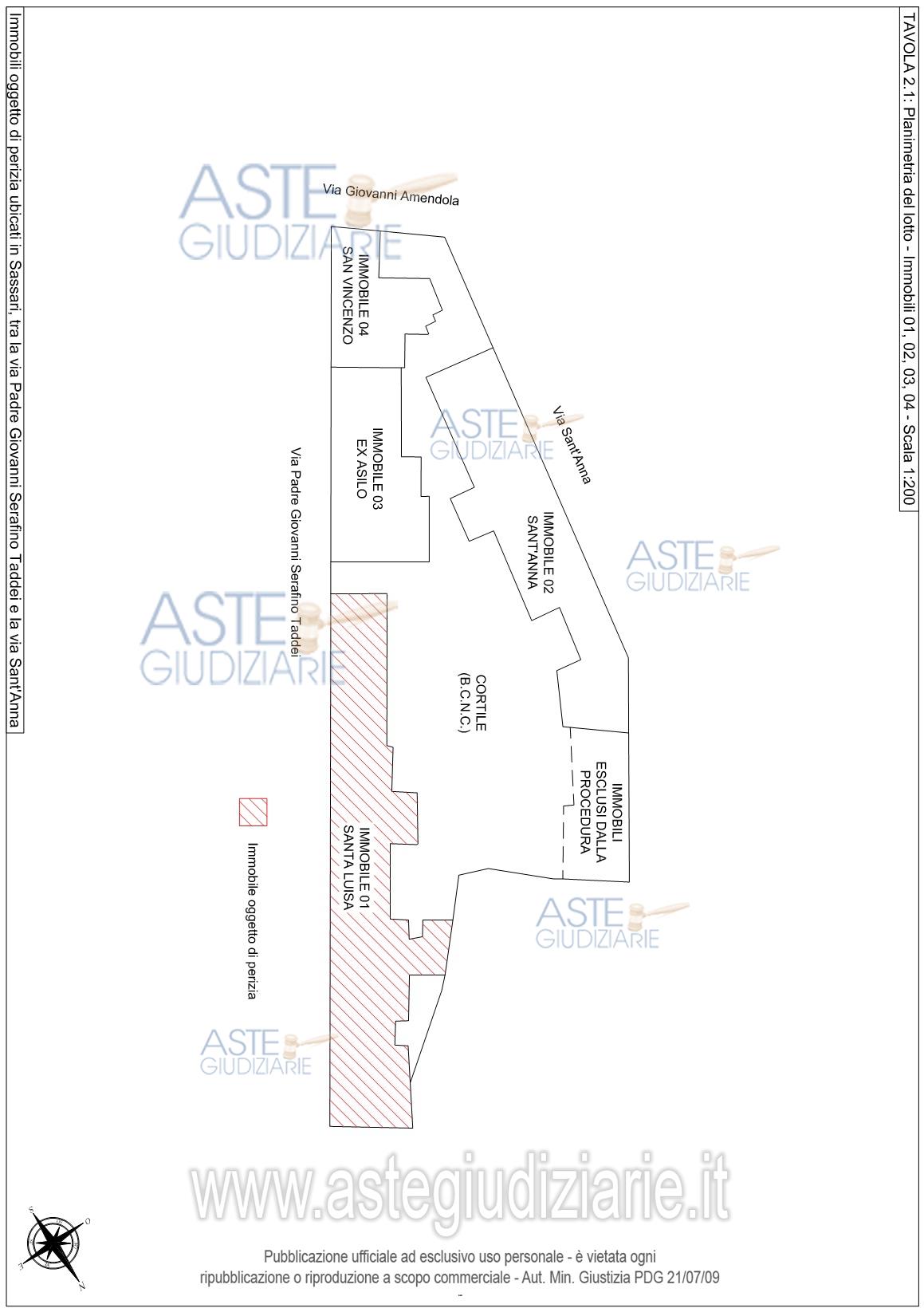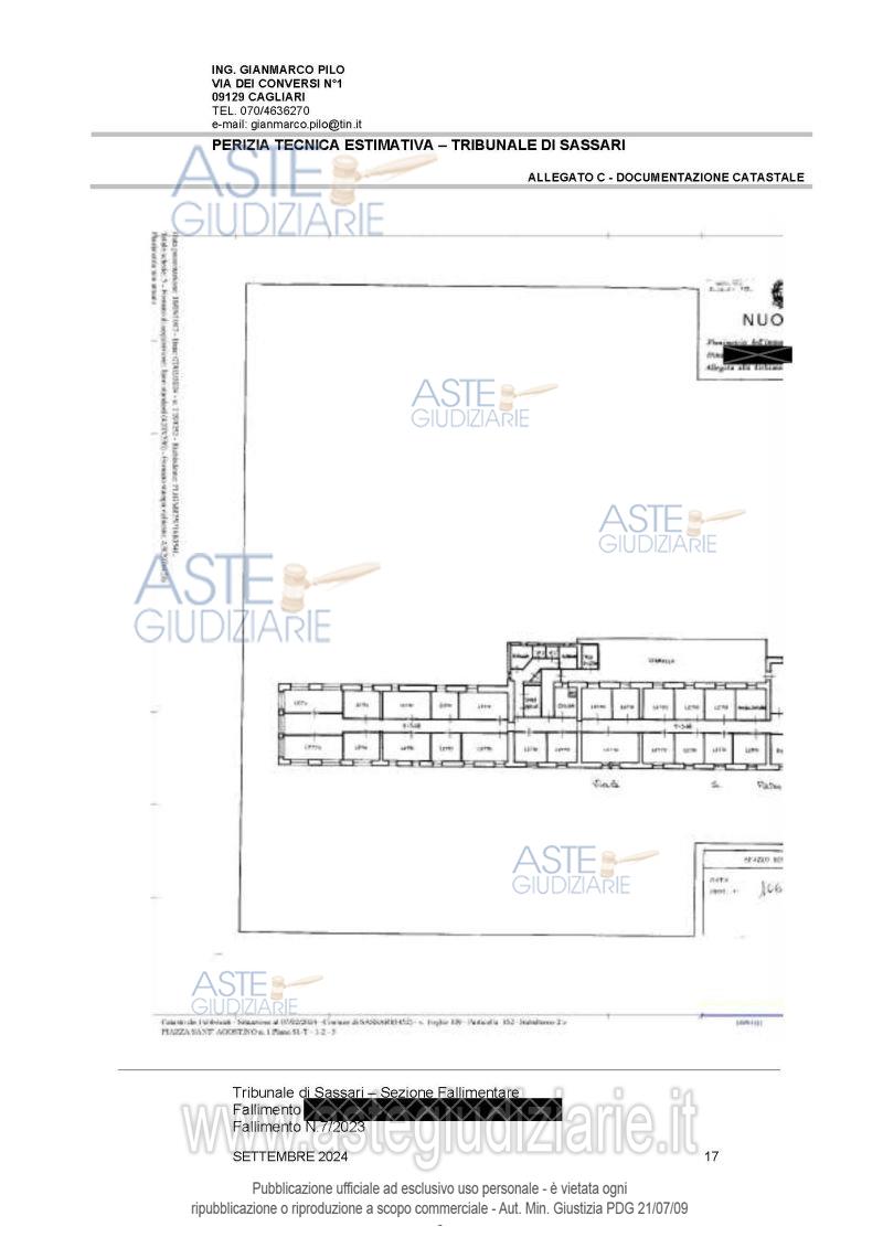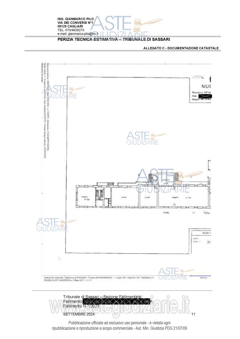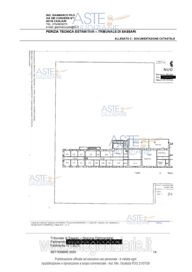 Vendita all'asta Senza incanto - LOTTO 1: Piena proprietà di un fabbricato pluripiano storico ubicato in Sassari, Piazza Sant’Agostino n. 1, avente superficie complessiva di circa 13.110 mq, censito al N.C.E.U. del Comune di Sassari al Foglio 109, Particella 162, Subalterno 2 categoria B/1. L'immobile è composto da due corpi di fabbrica non comunicanti internamente. E' confinante con un cortile interno. Sono ricompresi nella vendita anche i beni mobili presenti all’interno dell’unità immobiliare. Prezzo base € 933.362,50 (offerta minima € 933.362,50). Data vendita 09/06/2026 ore 16:00. Giudice Dott. Giovanna Maria Mossa. Custode Giudiziario Istituto Di Vendite Giudiziarie Sassari - Email "visitaivgsassari@gmail.com". Curatore Francesco Sotgiu - Email "francesco.sotgiu@studiosotgiu.com"; Tel. 0792151063. Rif. Tribunale di Sassari - Fallimentare (nuovo rito) n. 7/2023