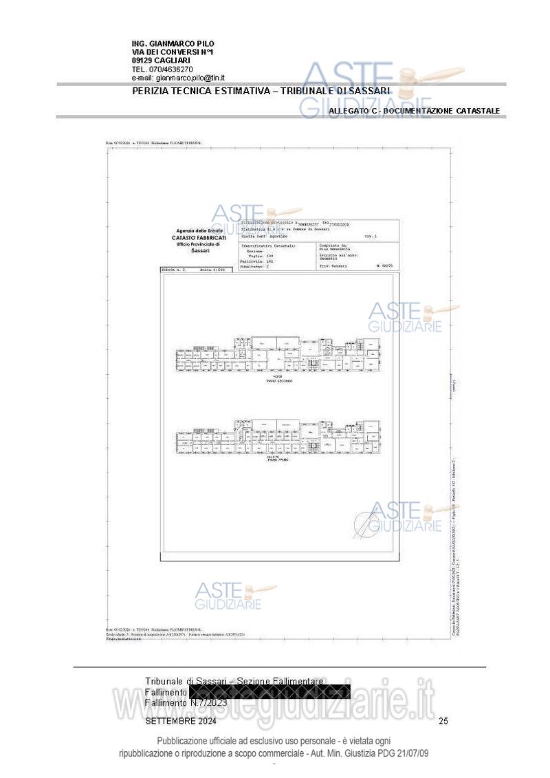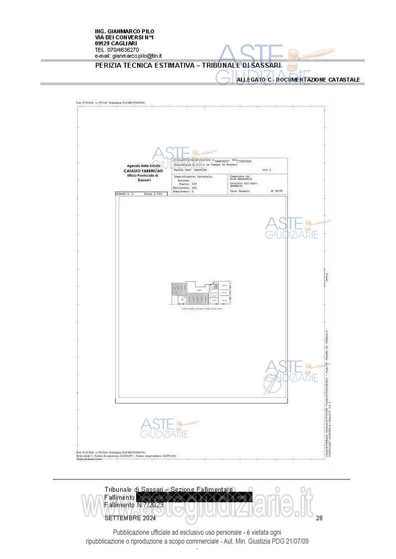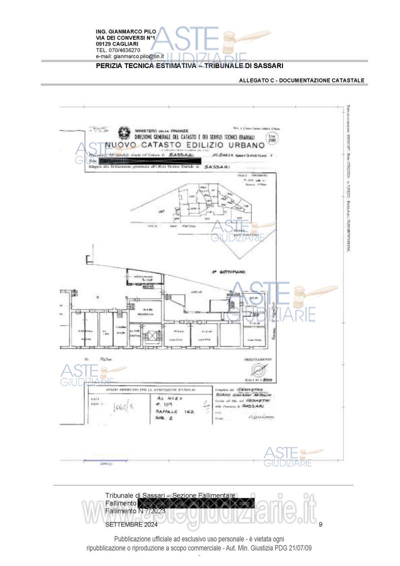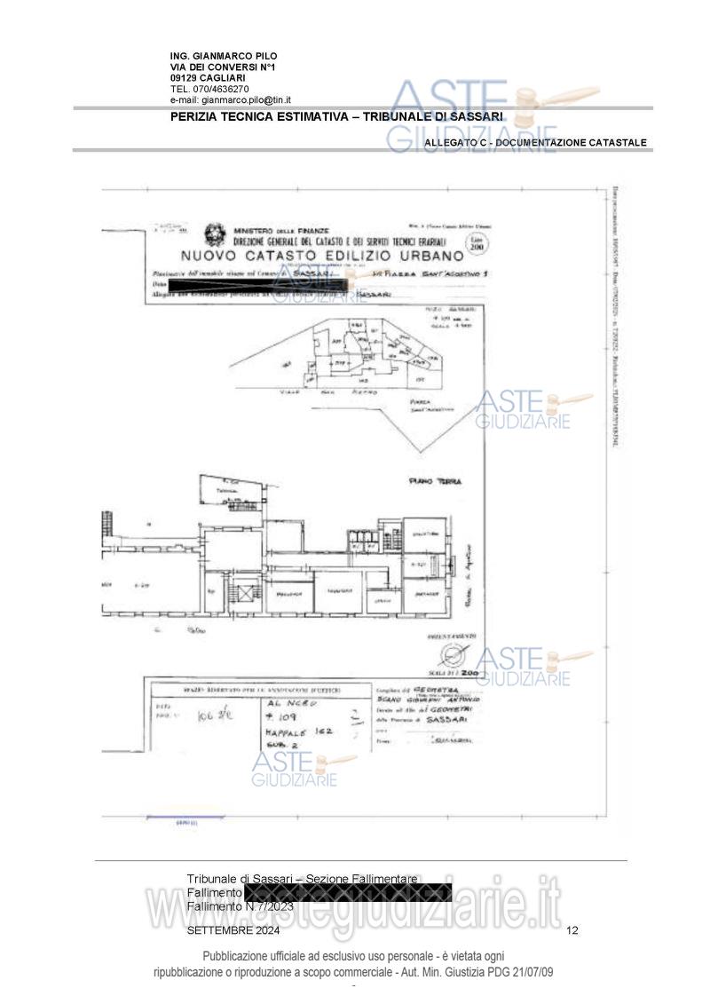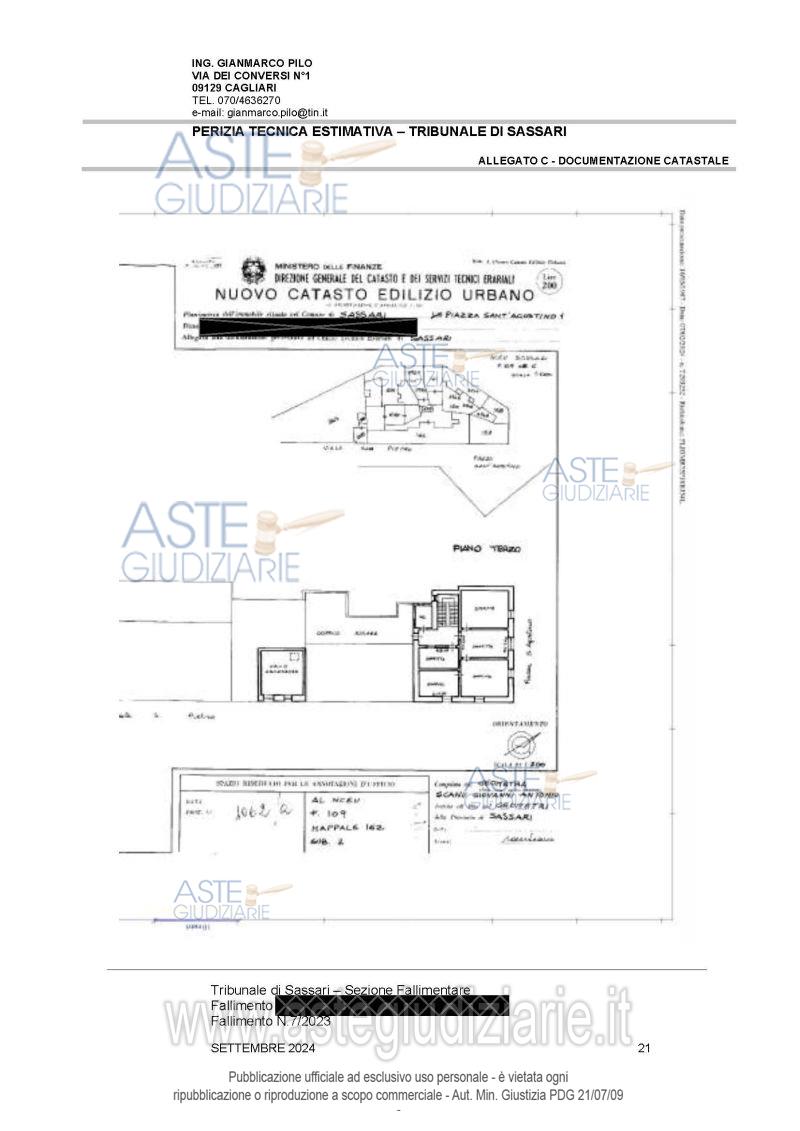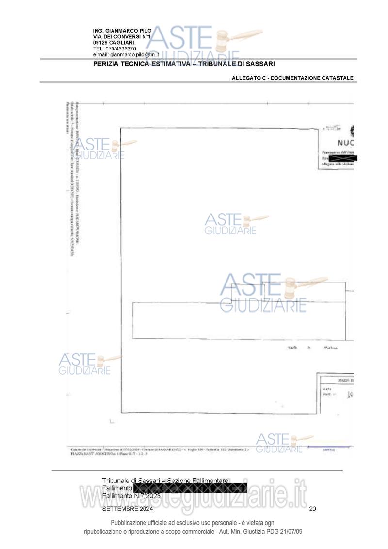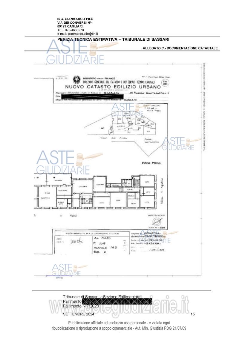 Vendita all'asta Senza incanto - LOTTO 1: Piena proprietà di un fabbricato pluripiano storico ubicato in Sassari, Piazza Sant’Agostino n. 1, avente superficie complessiva di circa 13.110 mq, censito al N.C.E.U. del Comune di Sassari al Foglio 109, Particella 162, Subalterno 2 categoria B/1. L'immobile è composto da due corpi di fabbrica non comunicanti internamente. E' confinante con un cortile interno. Sono ricompresi nella vendita anche i beni mobili presenti all’interno dell’unità immobiliare. Prezzo base € 933.362,50 (offerta minima € 933.362,50). Data vendita 09/06/2026 ore 16:00. Giudice Dott. Giovanna Maria Mossa. Custode Giudiziario Istituto Di Vendite Giudiziarie Sassari - Email "visitaivgsassari@gmail.com". Curatore Francesco Sotgiu - Email "francesco.sotgiu@studiosotgiu.com"; Tel. 0792151063. Rif. Tribunale di Sassari - Fallimentare (nuovo rito) n. 7/2023
