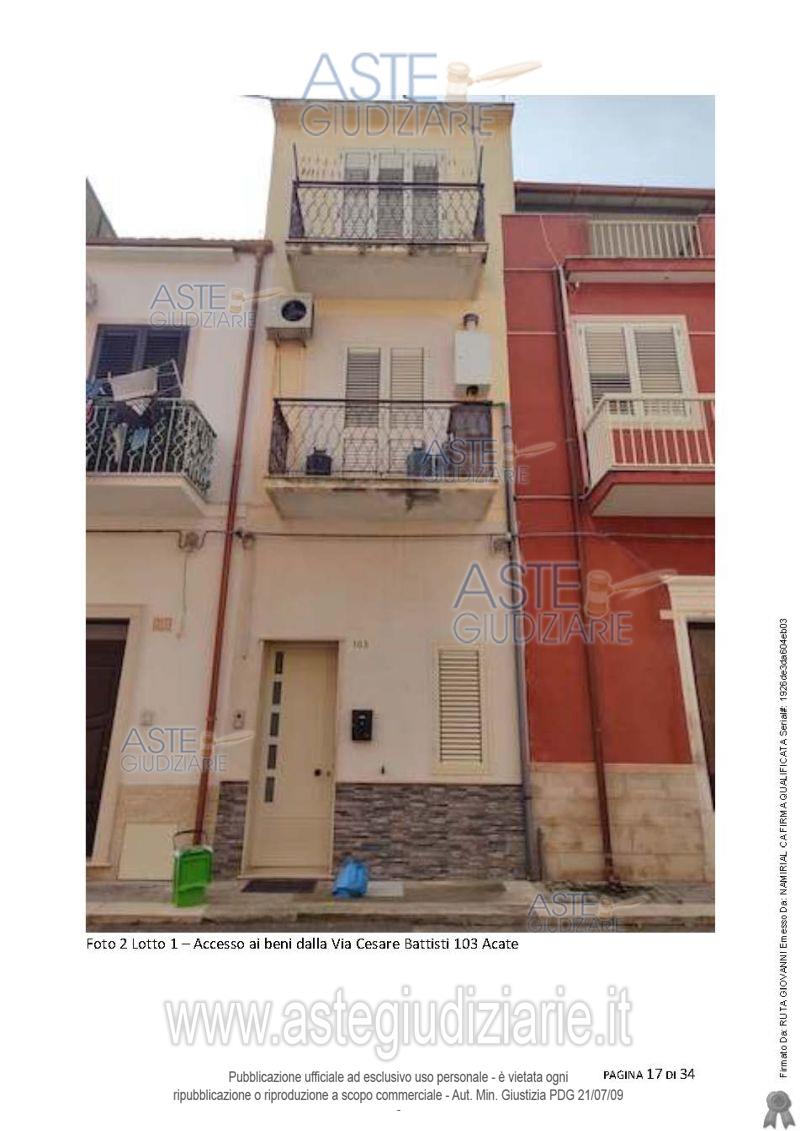 Vendita all'asta Senza incanto, con gara telematica sincrona mista - LOTTO 1: Piena proprietà del fabbricato su tre piani fuori terra con abusi edilizi e catastali con ingressi dalla Via Nazario Sauro al n. 102 e dalla Via Cesare Battisti al n. 103. Prezzo base € 47.400,00 (offerta minima € 35.550,00). Data vendita 02/04/2026 ore 10:00. Giudice Antonio Pianoforte. Professionista delegato alla vendita Avv. Milena Basile - Cell. 3333573237. Custode Giudiziario Avv. Milena Basile - Email "milena.basile@virgilio.it"; Cell. 3333573237. Rif. Tribunale di Ragusa - Espropriazione immobiliare (cartabia) n. 303/2024