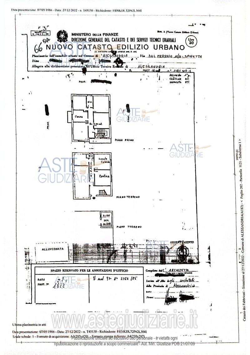 Vendita all'asta Senza incanto - LOTTO UNICO: Fabbricato in corso di ristrutturazione/costruzione, abitazione di tipo popolare, privo di tetto, impianti, pavimenti, serramenti. Con area cortilizia esclusiva di circa 450 mq, attualmente in stato di abbandono con vario materiale all'interno. Prezzo base € 5.860,00 (offerta minima € 4.395,00). Data vendita 20/02/2026 ore 09:00. Professionista delegato alla vendita Avv. Simona Chiola - Email "simonachiola@alice.it"; Cell. 3471306910; Tel. 0141793060. Custode Giudiziario Avv. Simona Chiola - Email "simonachiola@alice.it"; Cell. 3471306910; Tel. 0141793060. Rif. Tribunale di Alessandria - Esecuzione immobiliare post legge 80 n. 104/2022