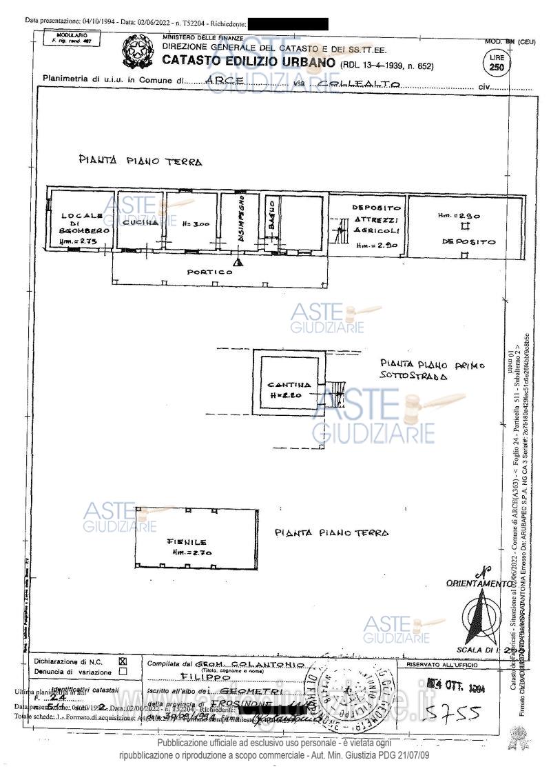 Vendita all'asta Senza incanto, con gara telematica asincrona - LOTTO 01: LOTTO N. 1: N° 1 - Fabbricato civile ubicato a Arce (FR) - via Collealto 70, piano s1-t Immobile occupato • N° 2 - Unità collabente ubicato a Arce (FR) - via Collealto 70 Proprietà (1/1) • N° 3 - Terreno ubicato a Arce (FR) - via Collealto. Terreno seminativo adibito a giardino pertinenziale all'abitazione. Proprietà (1/1) • N° 4 - Terreno ubicato a Arce (FR) - via Collealto. Terreno seminativo adibito a giardino pertinenziale all'abitazione. Proprietà (1/1). I beni del lotto 1 zona agricola E1. Prezzo base € 33.792,00 (offerta minima € 25.344,00). Data inizio operazioni di vendita: 12/02/2026 ore 10:30. Professionista delegato alla vendita Avv. Avv Antonio Tari - Email "ANTONIO.TARI81@LIBERO.IT"; Cell. 3294261403; Tel. 07761722809. Custode Giudiziario Avv. Avv Antonio Tari - Email "ANTONIO.TARI81@LIBERO.IT"; Cell. 3294261403; Tel. 07761722809. Rif. Tribunale di Cassino - Esecuzione immobiliare post legge 80 n. 34/2022