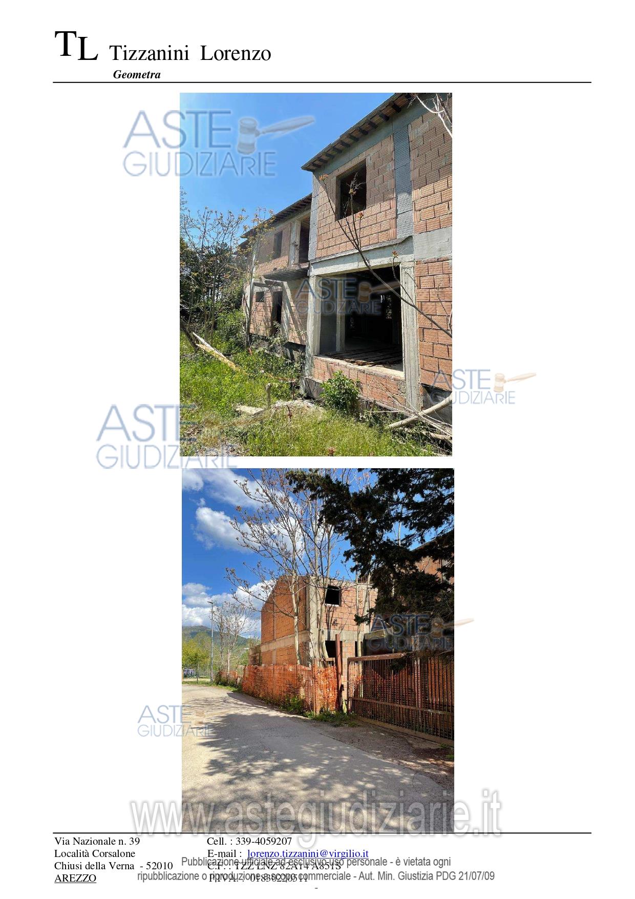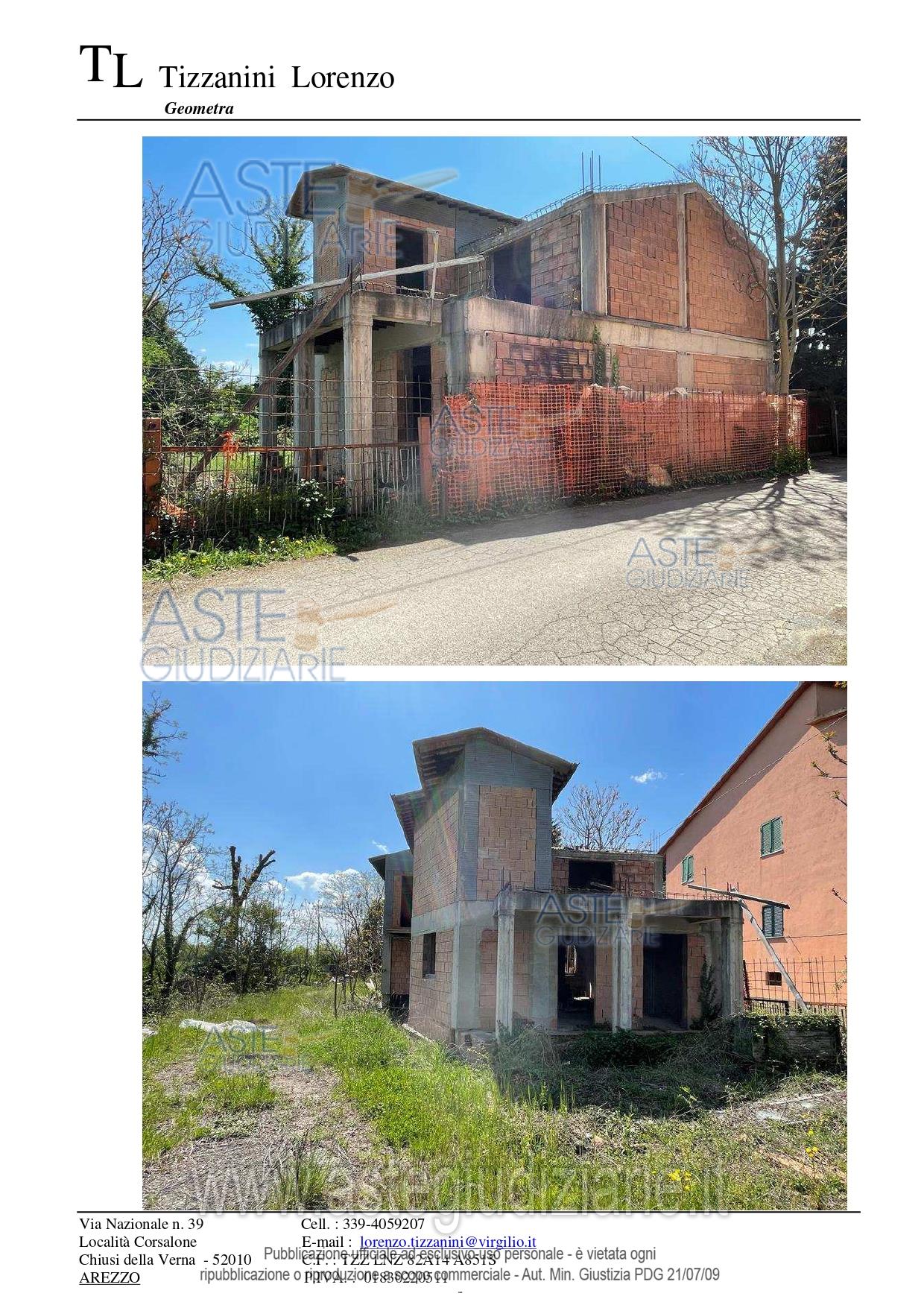 Vendita all'asta Senza incanto, con gara telematica sincrona mista - LOTTO UNICO: Diritto di piena proprietà per l’intero su di un fabbricato in corso di costruzione (allo stato grezzo) progettato per la realizzazione di n. 3 unità immobiliari del tipo residenziale, sito in Comune di Arezzo (AR) in Loc. Ottavo. Prezzo base € 79.360,00 (offerta minima € 59.520,00). Data vendita 04/06/2026 ore 11:00. Professionista delegato alla vendita Dott. Fabio Battaglia - Email "segreteria@assovab.net"; Cell. 3933308330; Tel. 0575680477. Custode Giudiziario Avv. Istituto Vendite Giudiziarie Arezzo-Siena - Email "visite.ivg@gmail.com"; Cell. 3397337017; Tel. 0577318111. Rif. Tribunale di Arezzo - Esecuzione immobiliare post legge 80 n. 132/2021