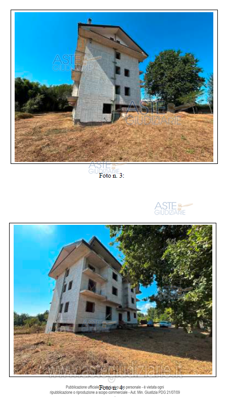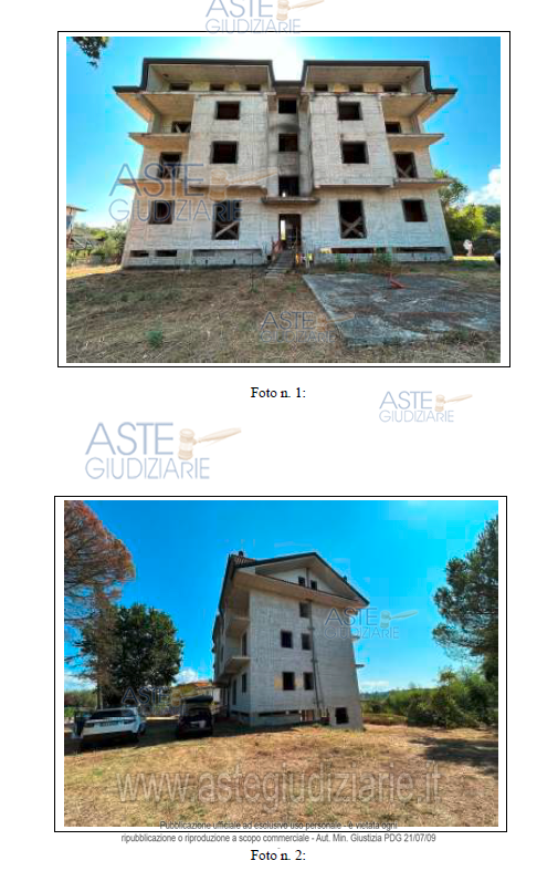 Vendita all'asta Senza incanto, con gara telematica asincrona - LOTTO UNICO: LOTTO UNICO composto da diritto di proprietà (1/1) su: Bene N° 1 - fabbricato in corso di costruzione composto da un piano seminterrato e quattro piani fuori terra, con corte circostante tenuta a prato di 2.260,00 mq; Bene N° 2 – terreno di forma quadrilatera e giacitura pianeggiante, della superficie di 2.260 mq. La vendita del bene è soggetta a IVA. Prezzo base € 260.000,00 (offerta minima € 195.000,00). Data inizio operazioni di vendita: 25/11/2025 ore 16:00. Giudice Simona Di Nicola. Professionista delegato alla vendita Dott. Sveva Sica - Email "dott.ssasvevasica@hotmail.com"; Cell. 3408662126; Tel. 0775873264. Custode Giudiziario Dott. Sveva Sica - Email "dott.ssasvevasica@hotmail.com"; Cell. 3408662126; Tel. 0775873264. Rif. Tribunale di Frosinone - Espropriazione immobiliare (cartabia) n. 67/2024
