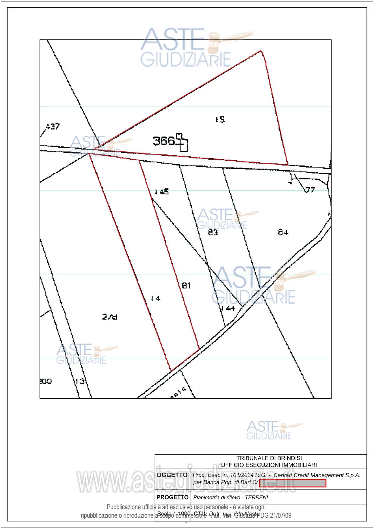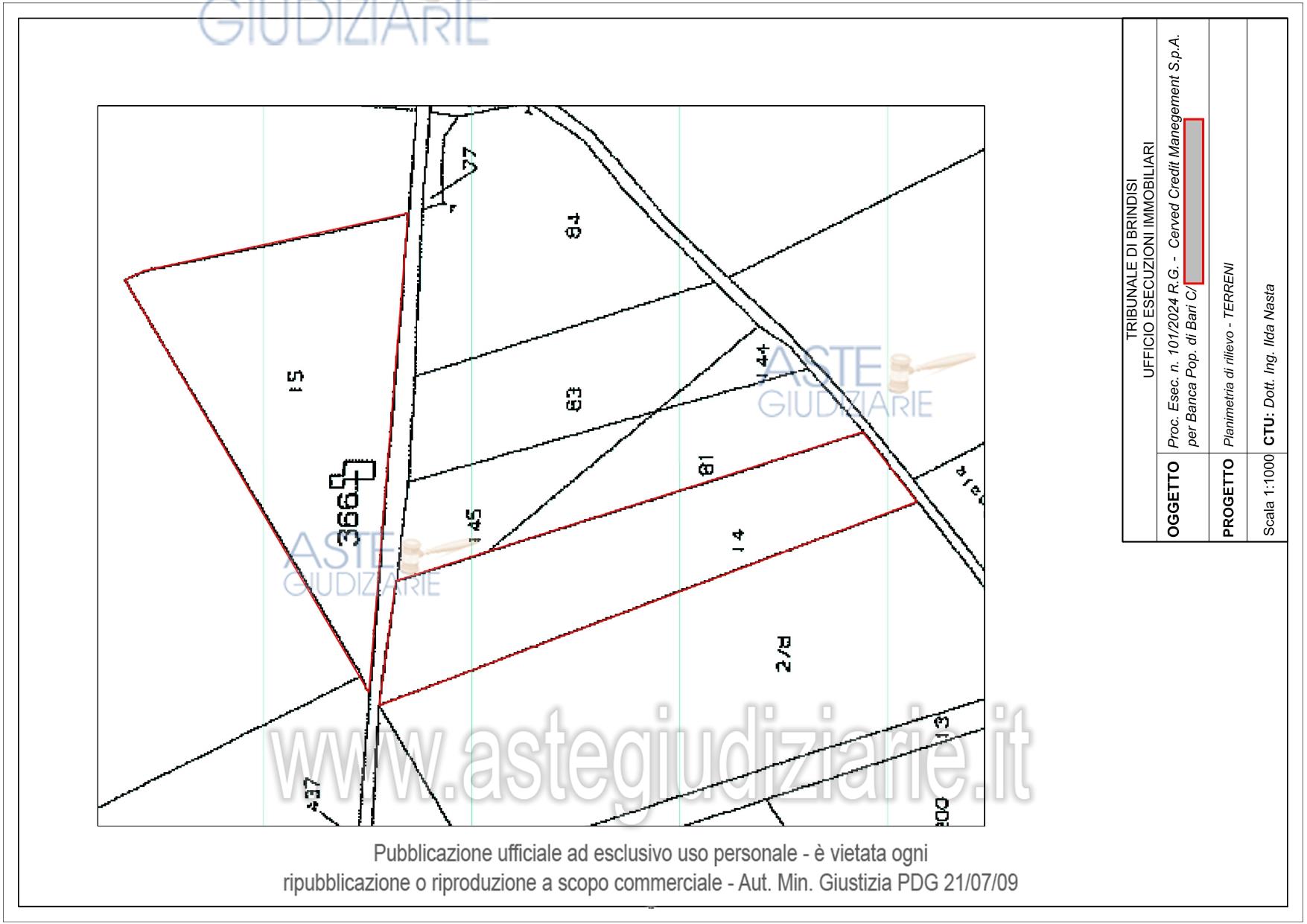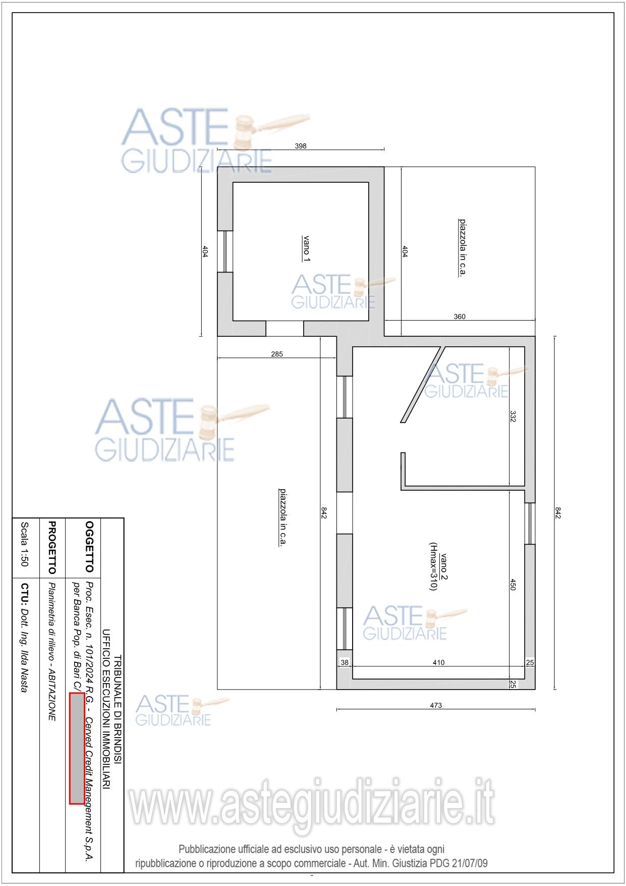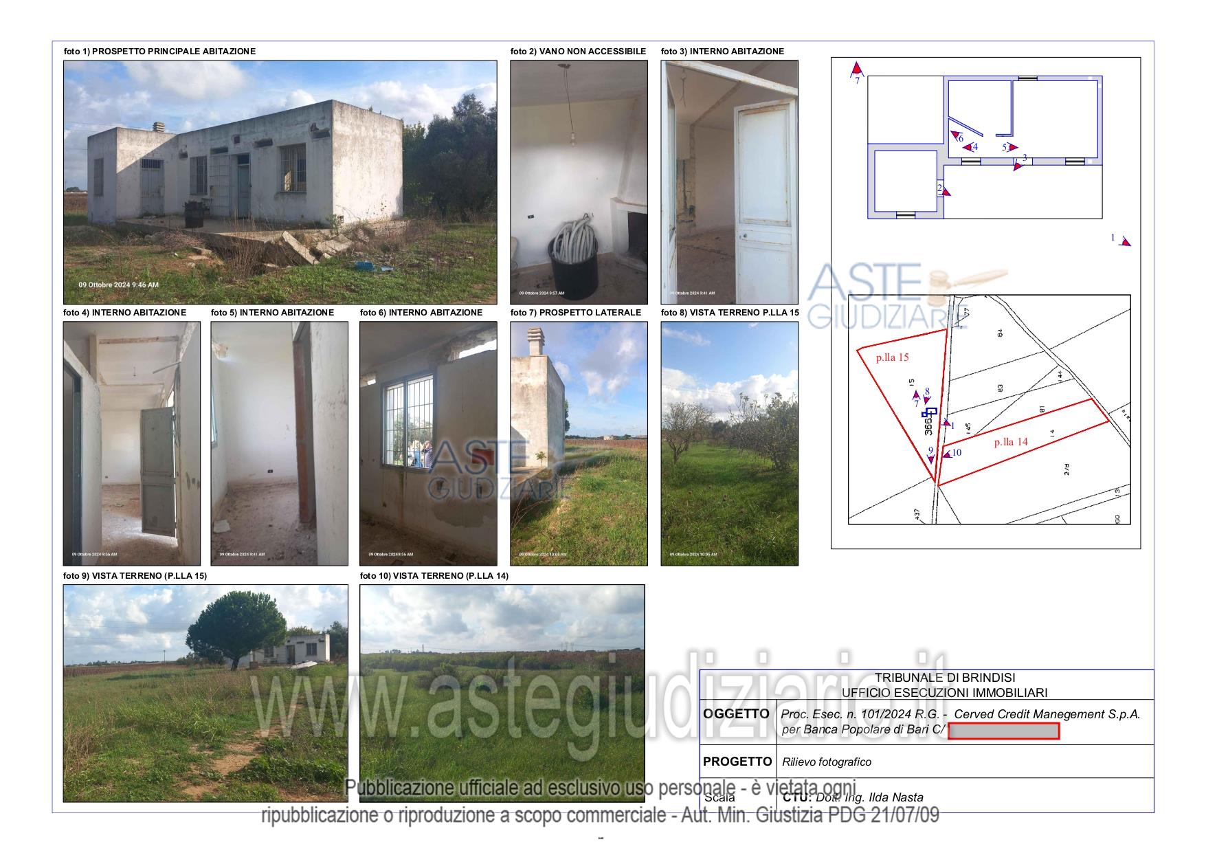 Vendita all'asta Senza incanto, con gara telematica asincrona - LOTTO UNICO: LOTTO 1:Appartamento a BRINDISI CONTRADA CONELLA CALONE, della superficie commerciale di 56,00 mq per la quota di 1/1 di piena proprietà. L'immobile è sito in agro di Brindisi in C.da Conella Calone, in area agricola priva di urbanizzazioni, costituito da un fabbricato a p. T. insistente su un suolo agricolo annesso alla abitazione, confinante con altro suolo agricolo di pertinenza. L'abitazione è isolata, ed è raggiungibile da strade vicinali dalla complanare alla S.S. 7 Brindisi- Mesagne e dalla S.C.16. Prezzo base € 18.971,53 (offerta minima € 14.228,65). Data inizio operazioni di vendita: 09/04/2026 ore 10:00. Giudice Dott. Francesco Giliberti. Professionista delegato alla vendita Avv. Carmela Baccaro - Email "carmela.baccaro@libero.it"; Cell. 3402440299; Tel. 0804448491. Custode Giudiziario Avv. Carmela Baccaro - Email "carmela.baccaro@libero.it"; Cell. 3402440299; Tel. 0804448491. Rif. Tribunale di Brindisi - Espropriazione immobiliare (cartabia) n. 101/2024