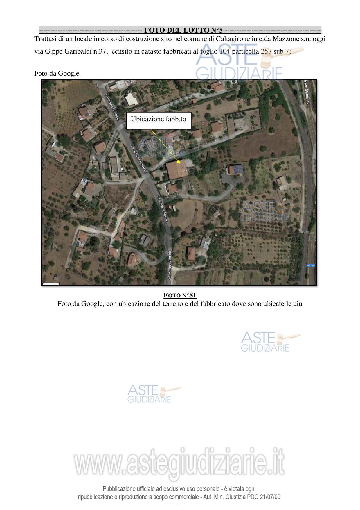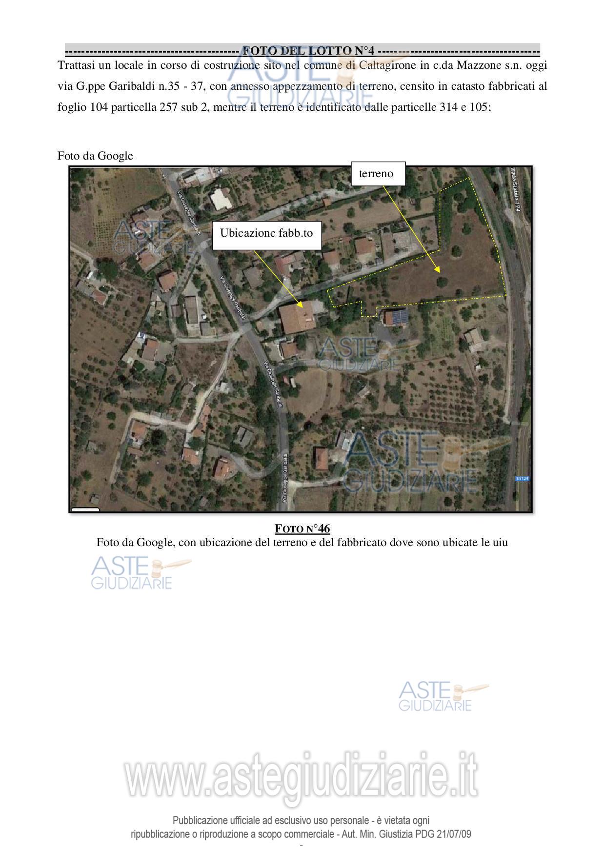 Vendita all'asta Senza incanto, con gara telematica sincrona mista - LOTTO UNICO: Locale in corso di costruzione (con aree di corte esclusiva), sito in Caltagirone in via Giuseppe Garibaldi n. 37, già c.da Mazzone s.n., in catasto al N.C.E.U. al foglio 104, particella 257 sub 7, p.t., unità in corso di costruzione, mq 81 oltre al 10% di diritto sulla corte (estesa nell’intero mq 60), per un totale di mq 87, con prezzo base d’asta di € 9.177,00 (novemilacentosettantasette/00). Prezzo base € 9.177,00 (offerta minima € 6.883,00). Data vendita 10/04/2026 ore 18:00. Professionista delegato alla vendita Avv. Francesca Bizzini - Email "francesca.bizzini@tiscali.it"; Tel. 3397397431. Rif. Tribunale di Caltagirone - Contenzioso civile n. 821/2023
