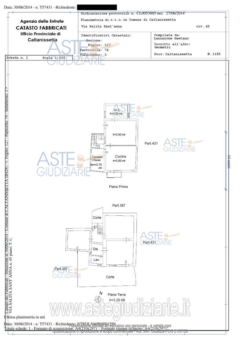 Vendita all'asta Senza incanto, con gara telematica sincrona mista - LOTTO UNICO: Piena proprietà di fabbricato su due elevazioni, con corte ed area di pertinenza e terreno di pertinenza. Prezzo base € 20.992,57 (offerta minima € 15.744,43). Data vendita 24/04/2026 ore 11:00. Professionista delegato alla vendita Not. Girolamo Scozzaro. Custode Giudiziario Not. Girolamo Scozzaro - Email "gscozzaro@notariato.it". Rif. Tribunale di Caltanissetta - Esecuzione immobiliare post legge 80 n. 10/2010
