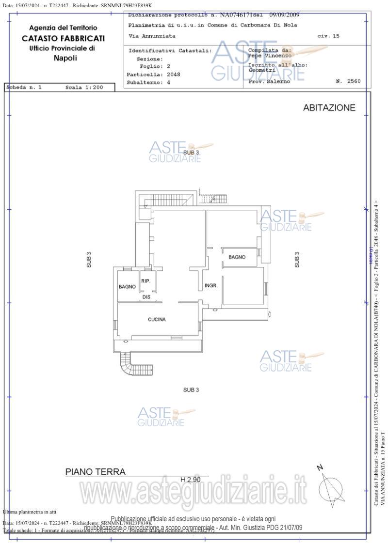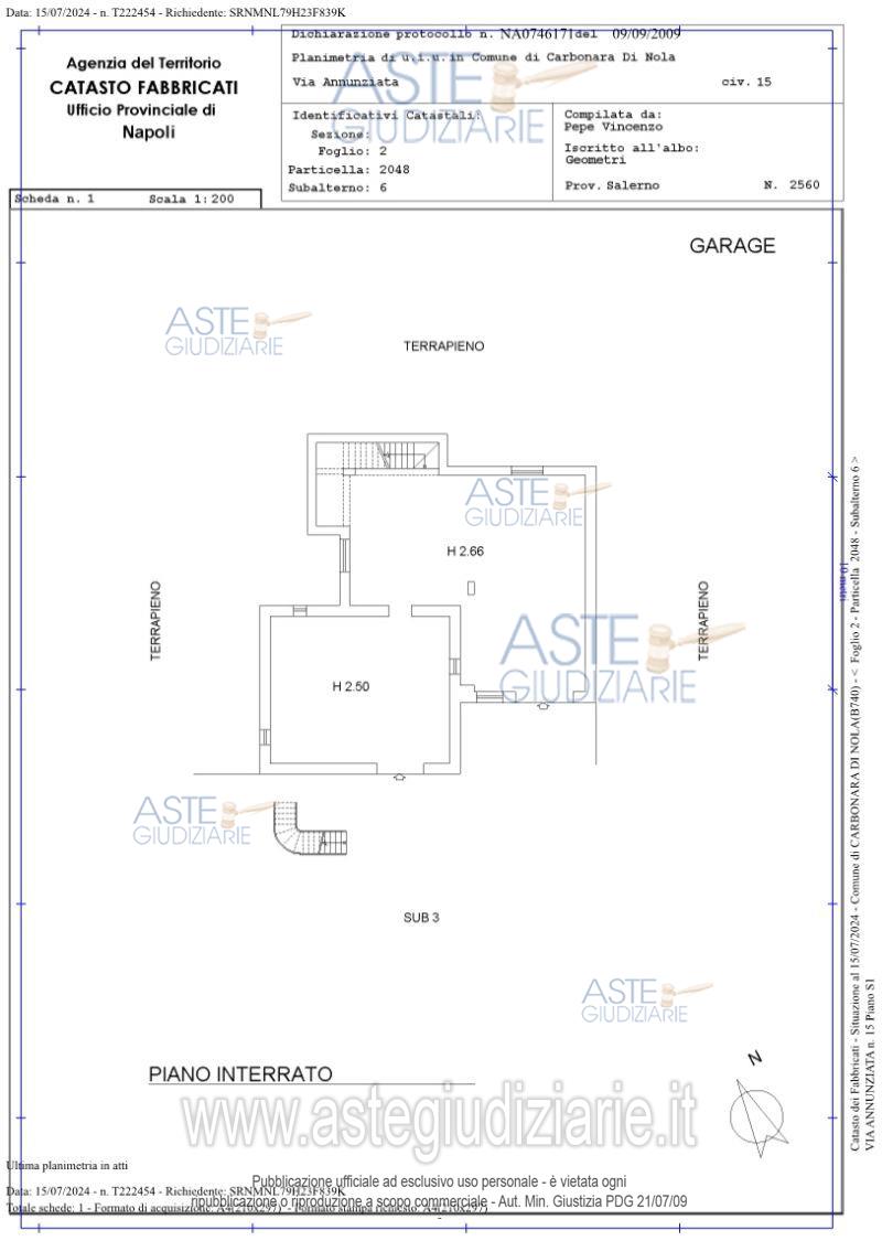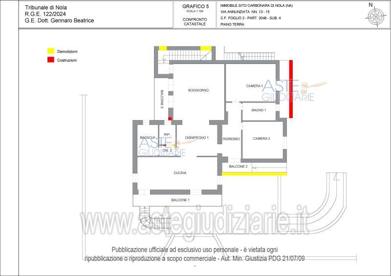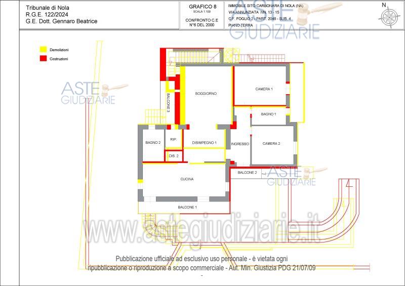 Vendita all'asta Senza incanto, con gara telematica asincrona - LOTTO UNICO: Piena ed intera proprietà del fabbricato unifamiliare sito in Carbonara di Nola alla Via Annunziata n. 13/15, articolatosi su due piani fuori terra ed uno entroterra con accesso all’area cortilizia, ad uso esclusivo, circondante il detto fabbricato ( foglio 2, particella 2048, sub. 3, bene comune non censibile), costituto da deposito, appartamento e sottotetto, oltre aree esterne di pertinenza con i proporzionali diritti sul predetto subalterno 3 e sul terreno al foglio 2, particella 2056. Prezzo base € 267.600,00 (offerta minima € 200.700,00). Data inizio operazioni di vendita: 06/05/2026 ore 15:30. Professionista delegato alla vendita Avv. Giorgia Viola - Email "avv.giorgiaviola@libero.it"; Tel. 08118858628. Custode Giudiziario Avv. Giorgia Viola - Email "avv.giorgiaviola@libero.it"; Tel. 08118858628. Rif. Tribunale di Nola - Espropriazione immobiliare (cartabia) n. 122/2024
