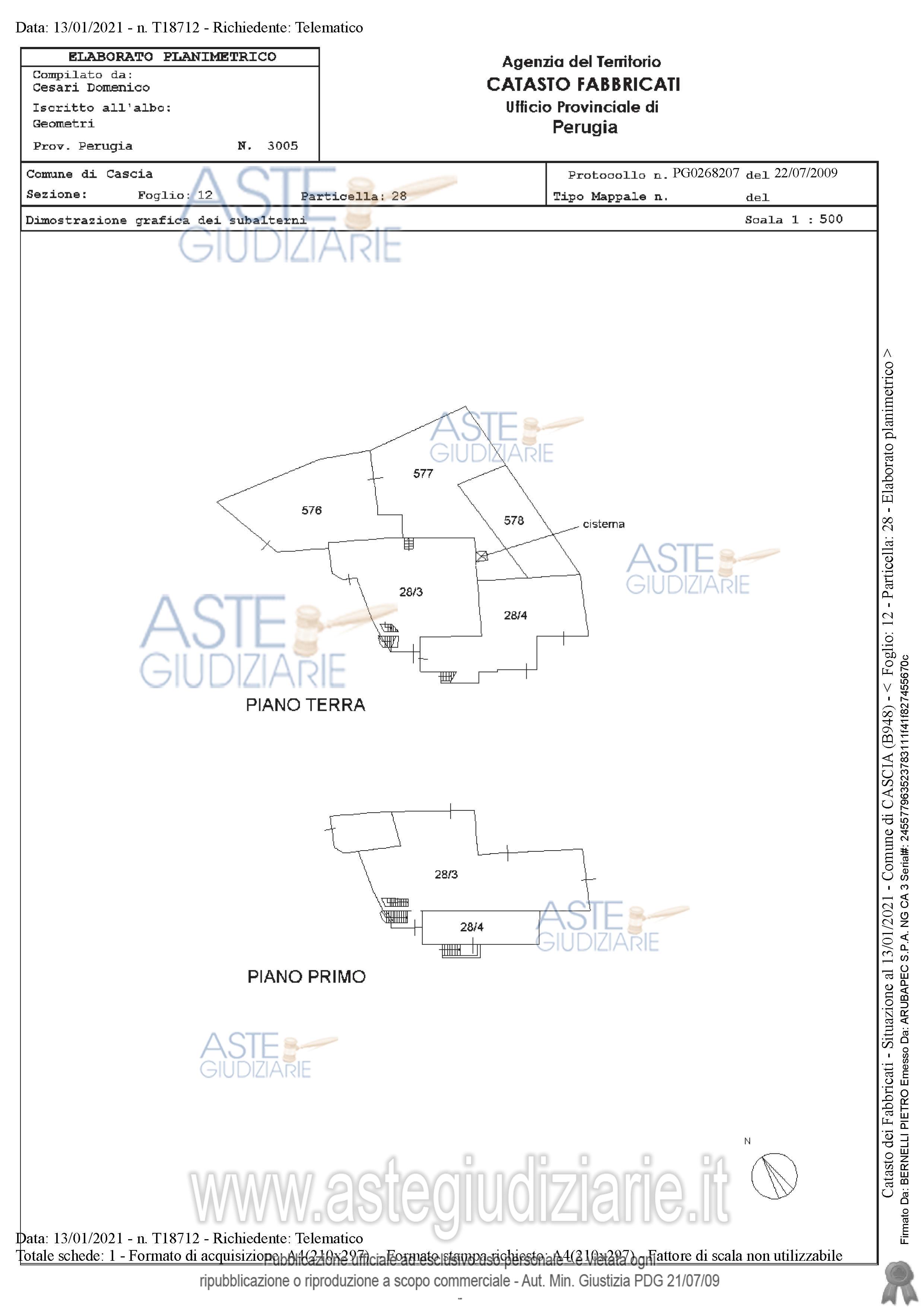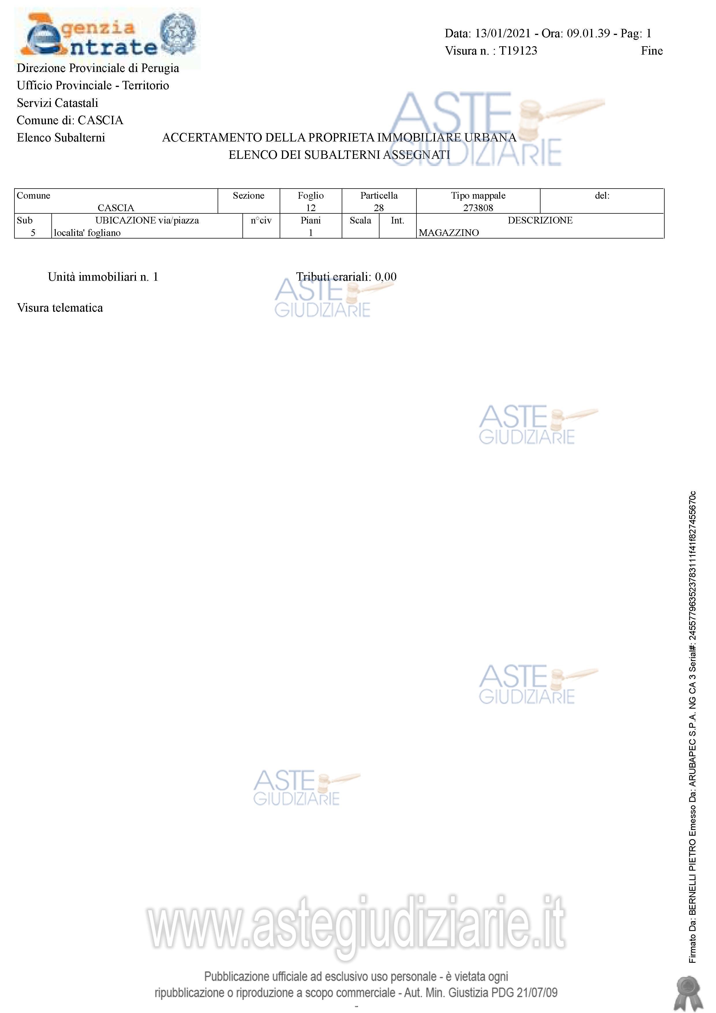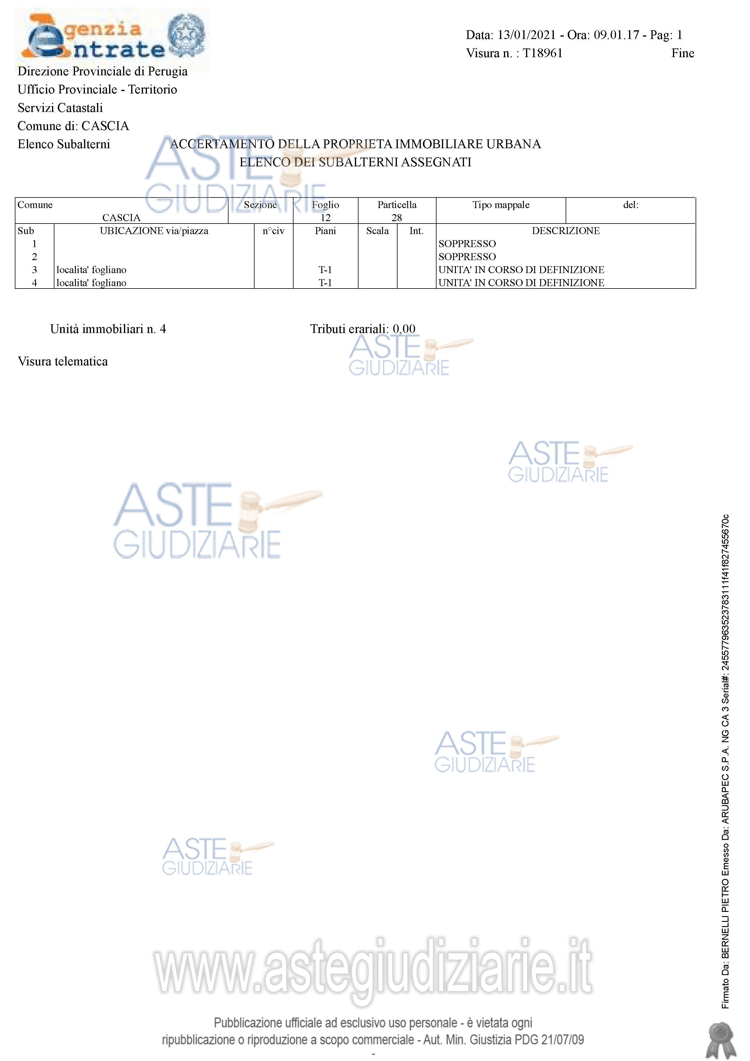 Custode Giudiziario: Ivg Perugia - Email "visite@ivgumbria.com"; Tel. 075/5913525.