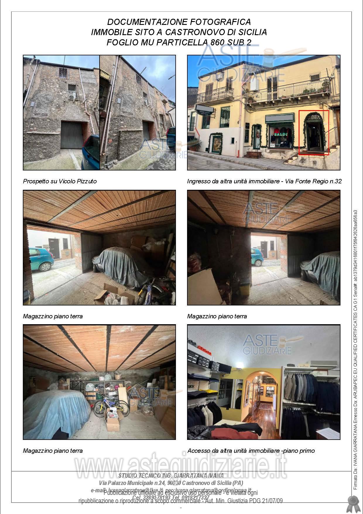 Vendita all'asta Senza incanto, con gara telematica sincrona - LOTTO 2: Trattasi di un immobile adibito a magazzino al piano terra e ad attività commerciale di vendita al dettaglio di abbigliamento e gioielleria ai piani primo, piano soppalcato e secondo. Esso è un fabbricato a tre elevazionifuori terra da Vicolo Pizzuto con piano soppalcato e struttura portante in muratura. Prezzo base € 12.931,33 (offerta minima € 9.698,50). Data vendita 01/04/2026 ore 16:30. Professionista delegato alla vendita Avv. Maria Irene Eliana Guarino - Email "avv.mariaguarino92@gmail.com"; Cell. 3343396810; Tel. 3343396810. Custode Giudiziario Avv. Maria Irene Eliana Guarino - Email "avv.mariaguarino92@gmail.com"; Cell. 3343396810; Tel. 3343396810. Rif. Tribunale di Termini Imerese - Espropriazione immobiliare (cartabia) n. 129/2024