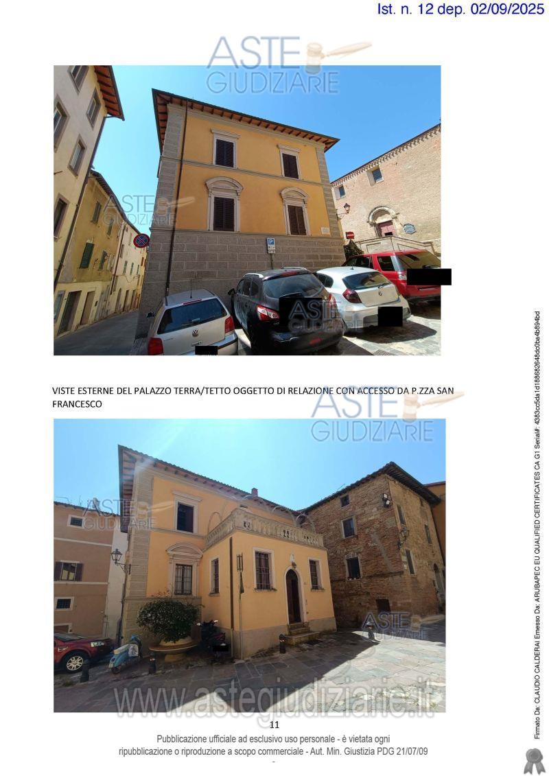 Vendita all'asta Senza incanto, con gara telematica asincrona - LOTTO UNICO: Fabbricato storico terra/tetto composto di 4 piani (seminterrato , terra, primo e secondo) per complessivi 425 mq. circa. Al piano seminterrato si trovano ingresso, cucina, stanza da pranzo, cantina, w.c. e disimpegno; al piano terreno si trovano ingresso/soggiorno e 4 camere con bagno; al piano primo si trovano 4 camere con bagno e disimpegno con accesso al terrazzo; al piano secondo/sottotetto si trovano locale di sgombero con lavanderia, soffitta e centrale termica. Prezzo base € 357.000,00 (offerta minima € 267.750,00). Data inizio operazioni di vendita: 16/06/2026 ore 10:00. Giudice Marta Dell'unto. Professionista delegato alla vendita Avv. Ugo Gengaroli - Email "gengaroli@studiolegaleggmpn.it"; Cell. 3356812022; Tel. 0577630066. Custode Giudiziario Istituto Vendite Giudiziarie Arezzo - Siena - Email "visite.ivg@gmail.com"; Cell. 3397337017; Tel. 0577318111. Rif. Tribunale di Siena - Esecuzione immobiliare post legge 80 n. 172/2021
