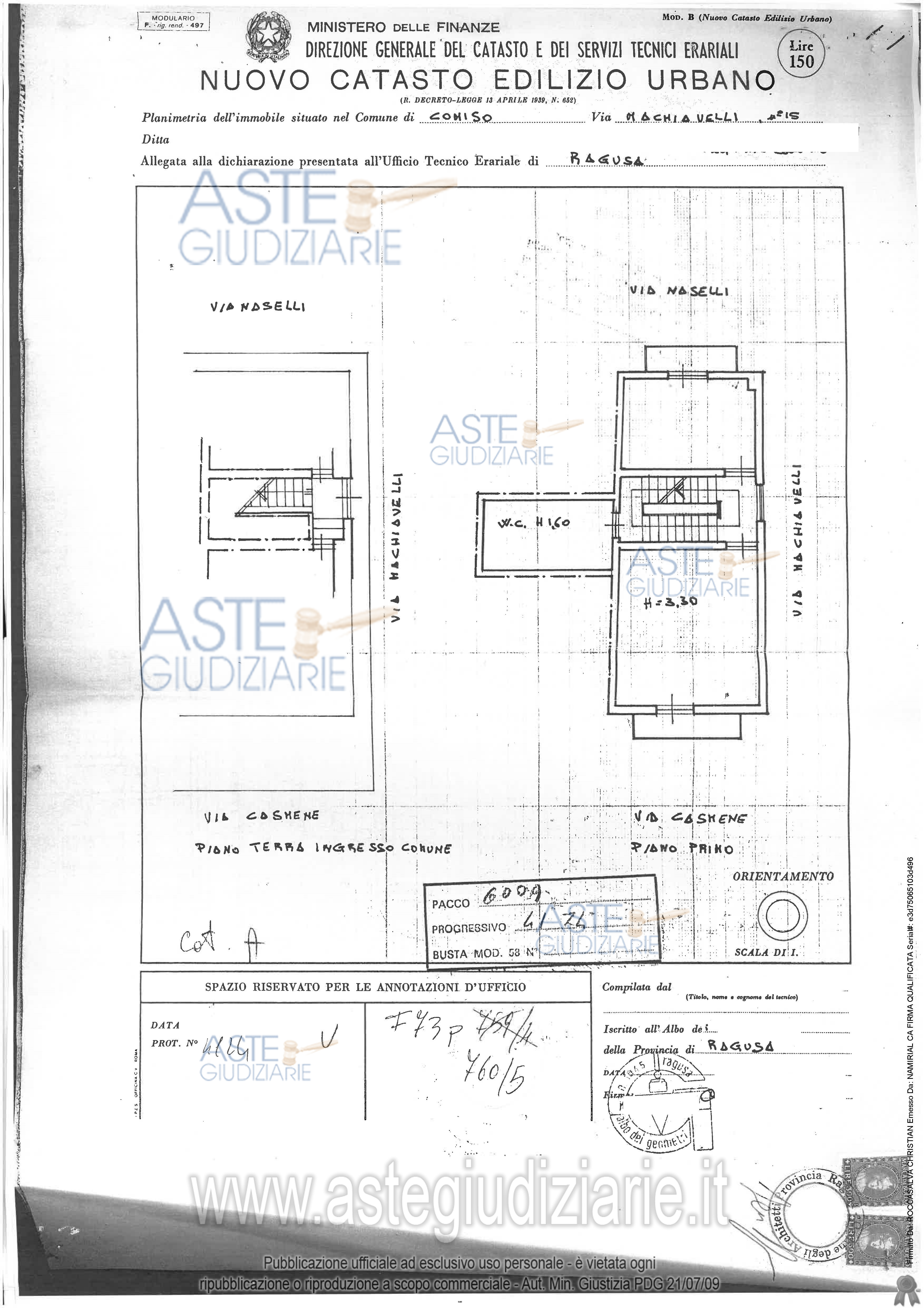 Vendita in attesa dell'emissione del nuovo bando d'asta. LOTTO UNICO: Piena proprietà delle unità immobiliari costituenti il fabbricato composto da piano terra, primo, secondo e terzo, della superficie commerciale totale di 223,50 mq circa, sito nel Comune di Comiso ad angolo tra le vie Casmene, Niccolò Machiavelli e Naselli. Le unità immobiliari sono censite al catasto fabbricati del Comune di Comiso al foglio 73, p.lla 5551, sub 4, cat. F/2 (piano terra); foglio 73, p.lla 5551, sub 5, cat. F/2 (piano primo) e foglio 73, p.lla 2268, sub 3, cat. A/4 (piani secondo e terzo). Ultimo prezzo base € 42.375,00 (offerta minima € 31.781,25). Professionista delegato alla vendita Avv. Pietro Cassarino - Email "pietrocassarino@yahoo.it"; Cell. 3286795692; Tel. 0932762258. Custode Giudiziario Avv. Pietro Cassarino - Email "pietrocassarino@yahoo.it"; Cell. 3286795692; Tel. 0932762258. Rif. Tribunale di Ragusa - Espropriazione immobiliare (cartabia) n. 3/2024