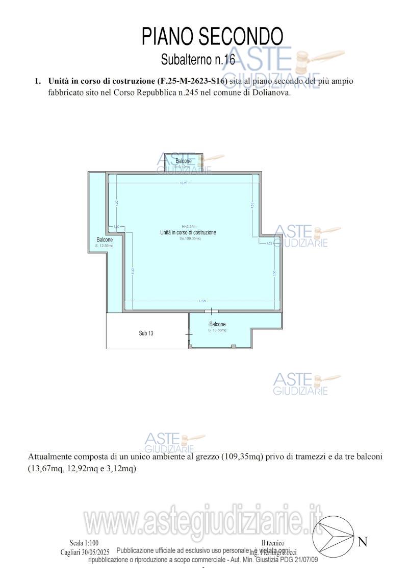 Vendita all'asta Senza incanto, con gara telematica asincrona - LOTTO 1: In Comune di Dolianova (CA), Corso Repubblica n. 245, quota pari all’intero del diritto di proprietà del compendio composto da: unità immobiliare con destinazione abitativa, in corso di costruzione, piano secondo, distinta al C.F. al F. 25 mapp. 2623, sub 16, con posto auto scoperto di pertinenza della superficie di 12 mq., posto al piano terra del medesimo fabbricato , distinto al C.F. al F. 25, mapp. 2623, sub. 10. Prezzo base € 60.210,00 (offerta minima € 45.157,50). Data inizio operazioni di vendita: 22/07/2026 ore 16:00. Giudice Valentina Frongia. Professionista delegato alla vendita Avv. Laura Fagioli - Email "avv.laura.fagioli@tiscali.it"; Tel. 0704510261. Custode Giudiziario Ivg Cagliari - Email "ivg.visiteimmobili@tiscali.it"; Tel. 0702299036. Rif. Tribunale di Cagliari - Espropriazione immobiliare (cartabia) n. 189/2023