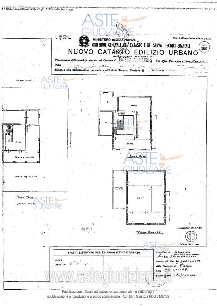 Vendita all'asta Senza incanto, con gara telematica sincrona mista - LOTTO UNICO:  Fabbricato in Piazza Armerina, C.da Belvedere, p. int. (non censito in catasto), semint, T, 1°, 2°, in corso di costruzione, confinante a nord con p. 99, ad est con stradella interpoderale, a sud con p. 104, ad ovest con p.100. Mediocre stato di conservazione. in Catasto al F.123, p. 102. Con circostante tratto di terreno mq 3.732, in Catasto al F.123, p. 101. Prezzo base € 99.431,29 (offerta minima € 74.573,46). Data vendita 05/11/2025 ore 17:00. Giudice Davide Palazzo. Curatore Avv. Antonino Giannotta - Email "studiolegalegiannotta@gmail.com".  Rif. Tribunale di Enna - Fallimentare n. 5/1992