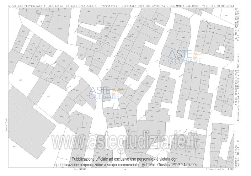 LOTTO UNICO: Propriété pleine et parfaite du bâtiment situé au premier étage et accessible depuis la cour Susanna 8-10, composé de trois pièces, dont une principale aménagée en bureau, une pièce secondaire aménagée en chambre à coucher et une petite salle de bain. . Ultimo prezzo base € 5.203,98 (offerta minima € 3.902,99). Vente en attente de l’émission d’un avis nouveau. Giudice Dott. Enrico Legnini. Curatore Dott. Filippo Lo Franco. Rif. Tribunale di Agrigento - Fallimentare (nuovo rito) n. 8/2017