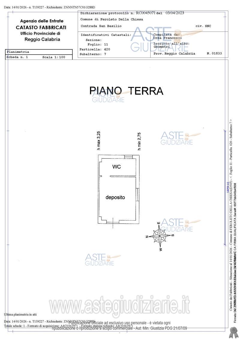 . Prezzo base € 35.640,00 (offerta minima € 26.730,00). Data inizio operazioni di vendita: 23/04/2026 ore 16:30. Giudice Dott. Marta Caineri. Professionista delegato alla vendita Avv. Maria Vittoria Callè - Tel. 3456158029. Custode Giudiziario Avv. Maria Vittoria Callè - Tel. 3456158029. Rif. Tribunale di Palmi - Esecuzione immobiliare n. 16/2025