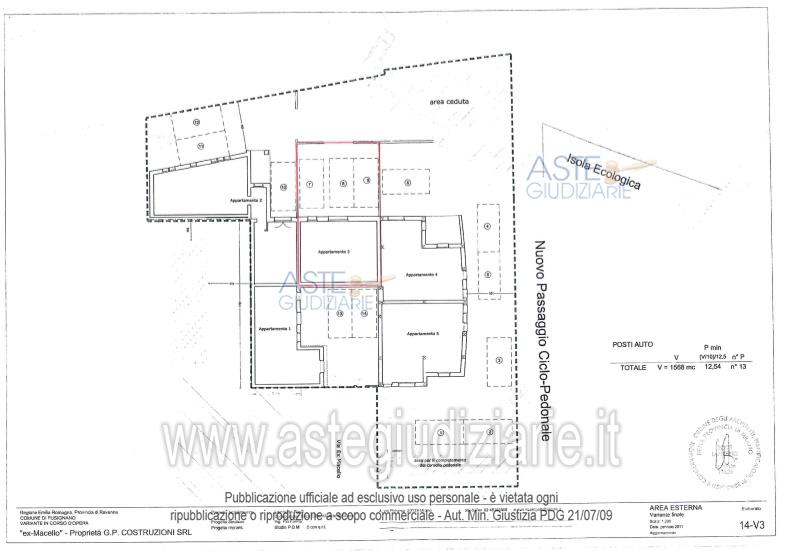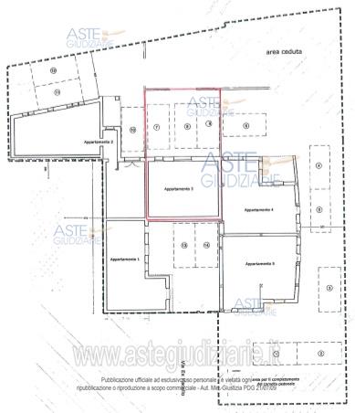 Vendita all'asta Senza incanto - LOTTO 3: Piena proprietà su porzione di fabbricato ad uso civile abitazione su tre livelli in corso di ristrutturazione, sito in Fusignano (RA) in via Falcone e Borsellino n.54 e precisamente un appartamento allo stato grezzo con impianti non completati e privo di finiture in quanto ancora da ultimare, costituito al piano terra da ingresso/soggiorno, ripostiglio/sottoscala; al piano mezzanino da zona cucina; al piano primo da camera matrimoniale, camera singola, bagno e ripostiglio; al piano secondo da vano mansardato abitabile (camera matrimoniale), cabina e bagno, con area esterna cortilizia pavimentata di proprietà esclusiva, per una superficie reale l’appartamento di mq 188 e la corte di mq 60, e per una superficie commerciale di mq 194,