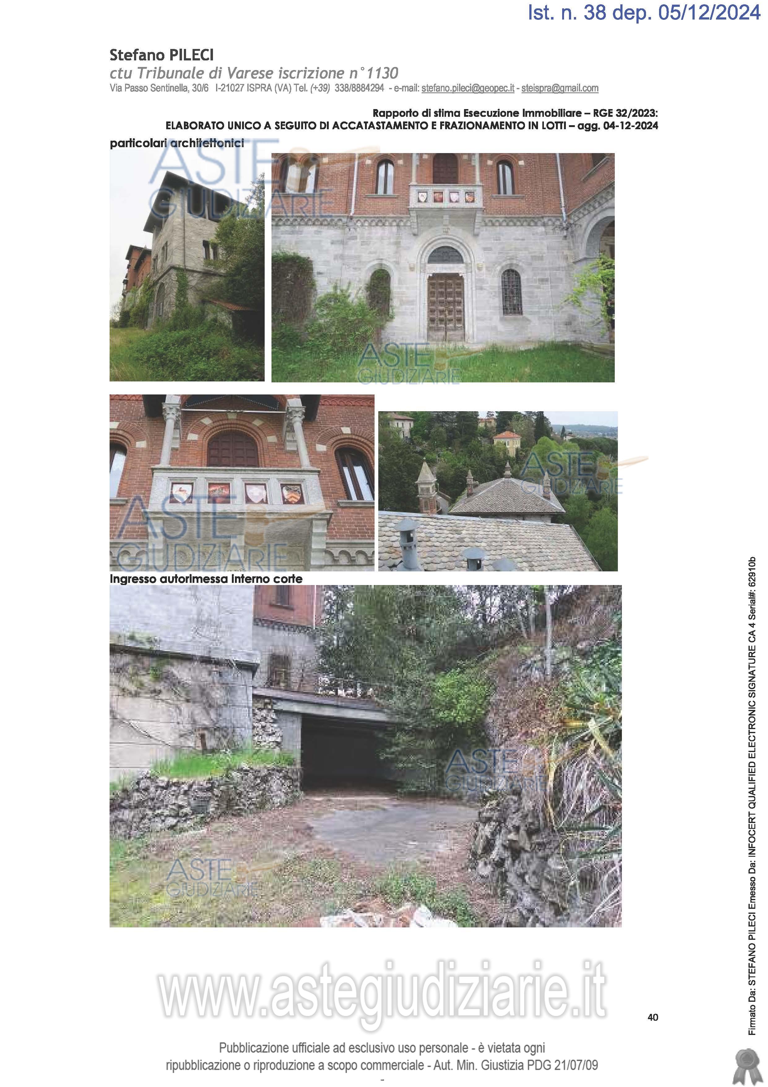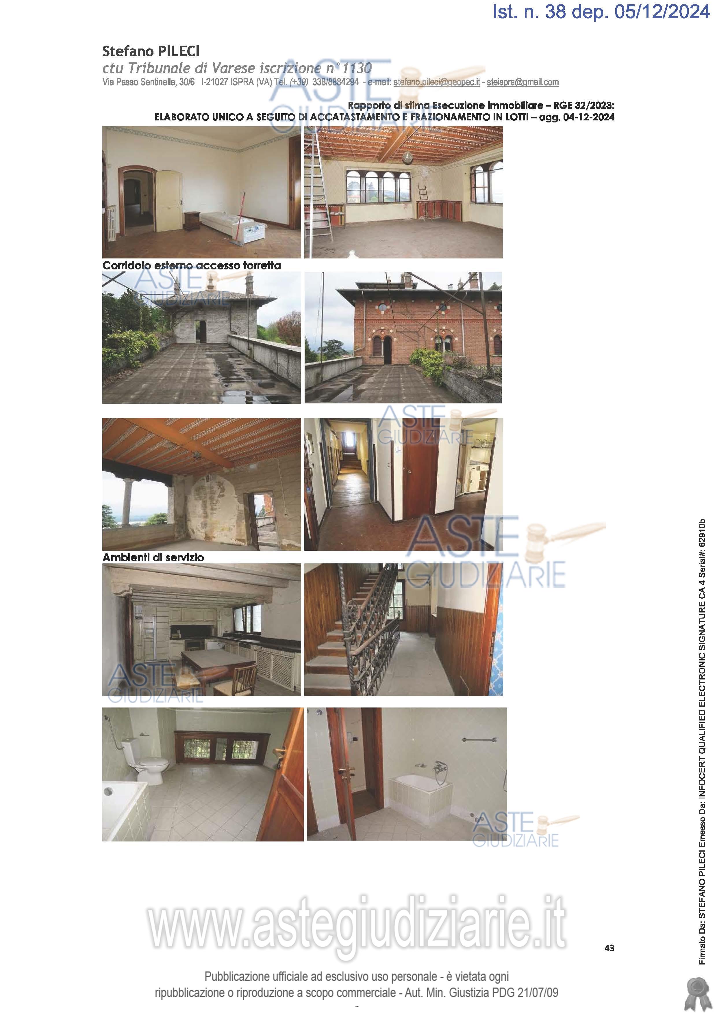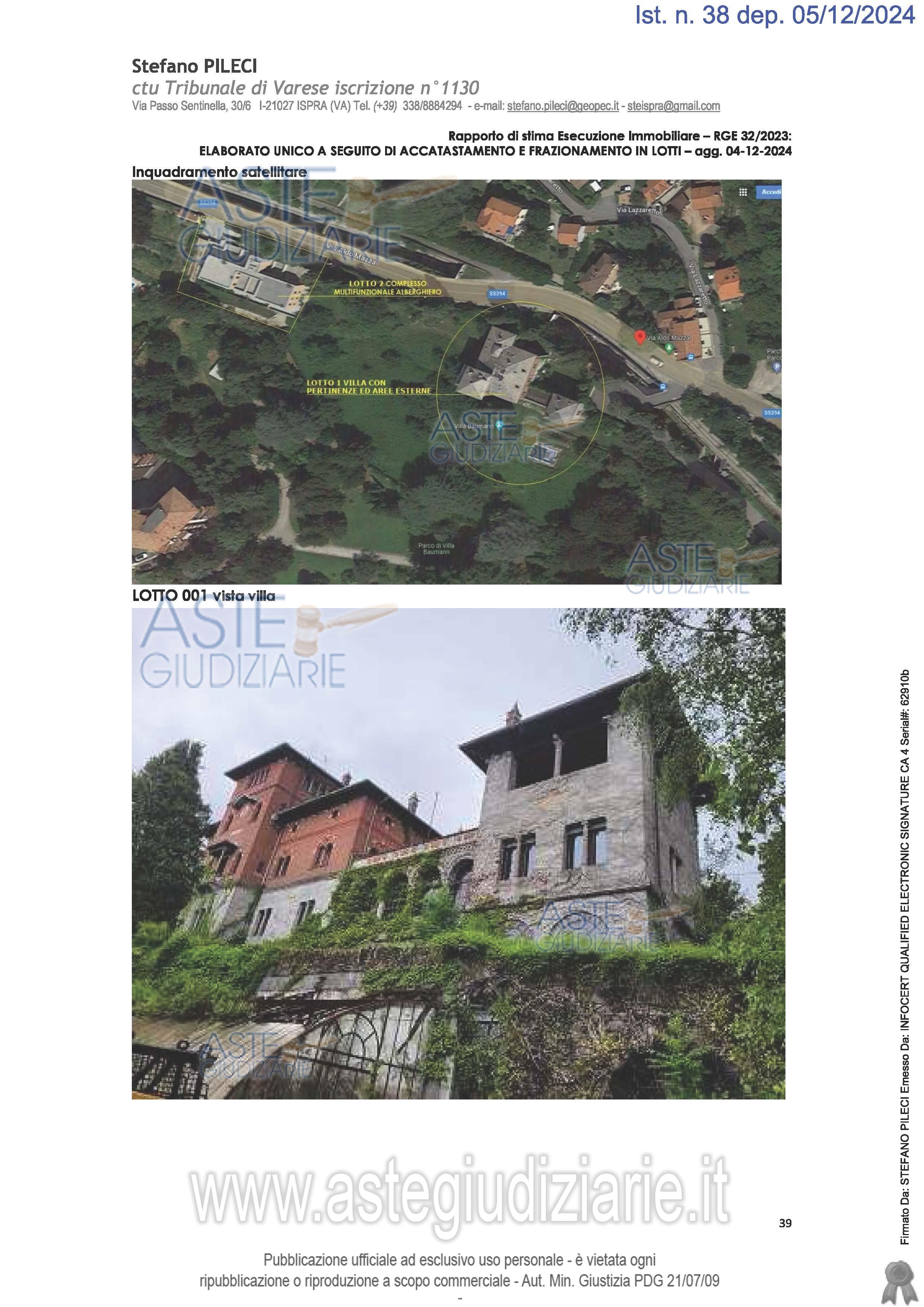 Vendita all'asta Senza incanto, con gara telematica sincrona mista - LOTTO 1: Prestigiosa villa d'epoca con annesso terreno di pertinenza e autorimessa. Prezzo base € 2.688.000,00 (offerta minima € 2.016.000,00). Data vendita 29/04/2026 ore 14:30. Giudice Jessica Pintauro. Professionista delegato alla vendita Avv. Luisa Romeo - Email "luiromeo@yahoo.it"; Tel. 0332282304. Custode Giudiziario Givg Srl - Email "visite.va@givg.it"; Tel. 0332335510. Rif. Tribunale di Varese - Esecuzione immobiliare post legge 80 n. 32/2023