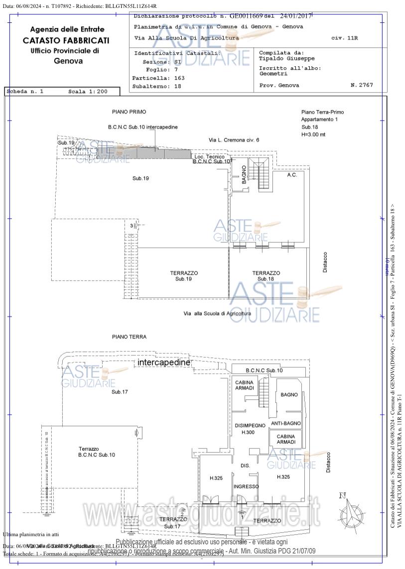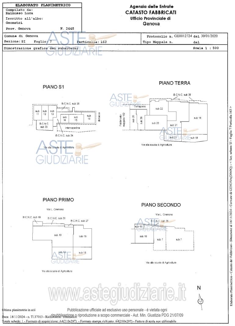 Vendita all'asta Senza incanto, con gara telematica sincrona mista - LOTTO UNICO: QUARTIERE DI SANT'ILARIO - PIENA PROPRIETA’ DI FABBRICATO IN COSTRUZIONE (due piani fuori terra, oltre al piano seminterrato occupato da garages e cantine), composto da n. 4 appartamenti identificati al Catasto fabbricati di Genova Sezione SI, Foglio 7, particella 163, sub 18,19,21,22, n. 3 cantine identificate al Catasto di Genova Sezione SI, Foglio 7, particella 163, sub 14,15,16 e n. 3 posti auto coperti id.ti al Catasto di Genova Sezione SI, Foglio 7, particella 163, sub 11,12,13, sup.ce circa mq 658. . Prezzo base € 1.368.535,00 (offerta minima € 1.026.401,25). Data vendita 04/03/2026 ore 15:00. Professionista delegato alla vendita Dott. Danila Rebora - Email "danilarebora@gmail.com"; Tel. 0105705760. Custode Giudiziario Sovemo S.R.L. - Email "immobiliare@sovemo.com"; Tel. 0105299253. Rif. Tribunale di Genova - Espropriazione immobiliare (cartabia) n. 203/2024