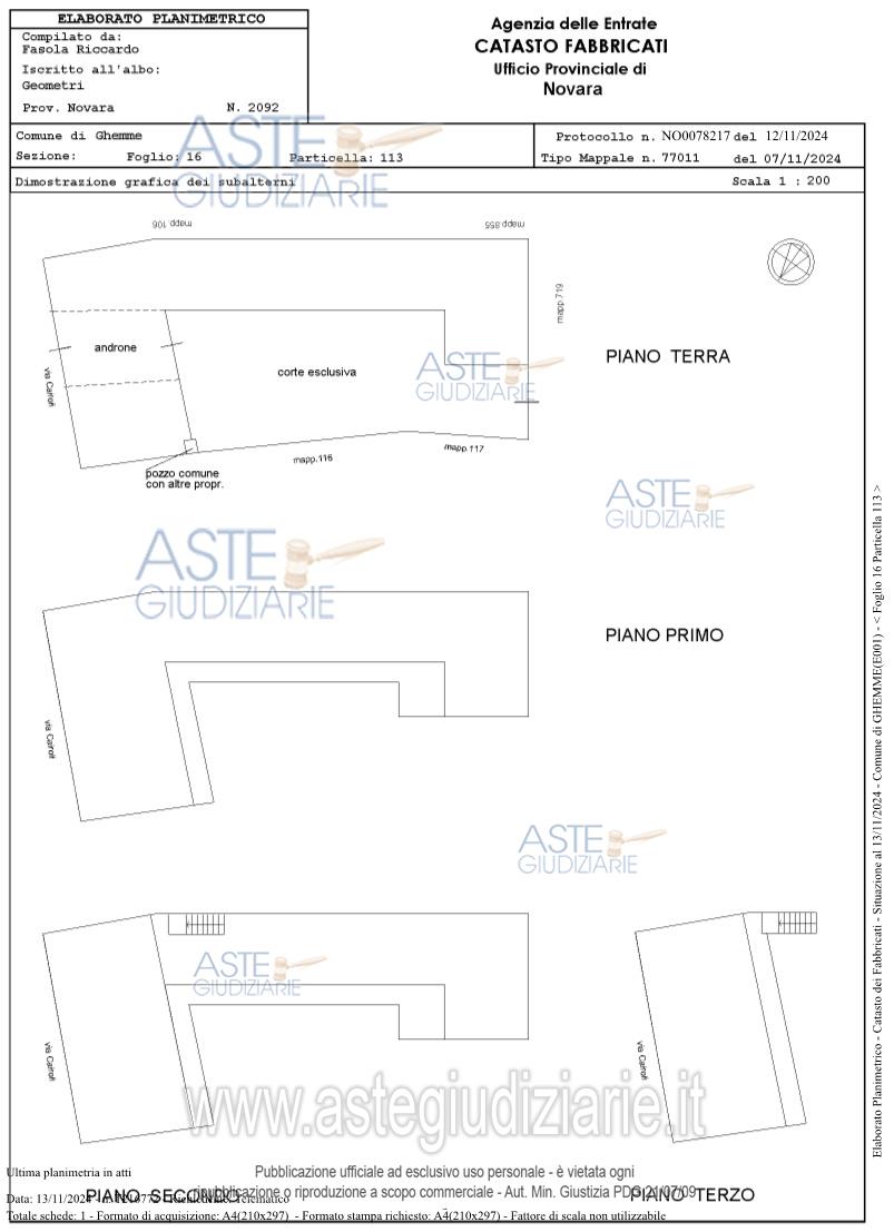 Custode Giudiziario: Ifir Piemonte Ivg Srl - Email "richiestevisite.novara@ivgpiemonte.it"; Tel. 0321/628676.