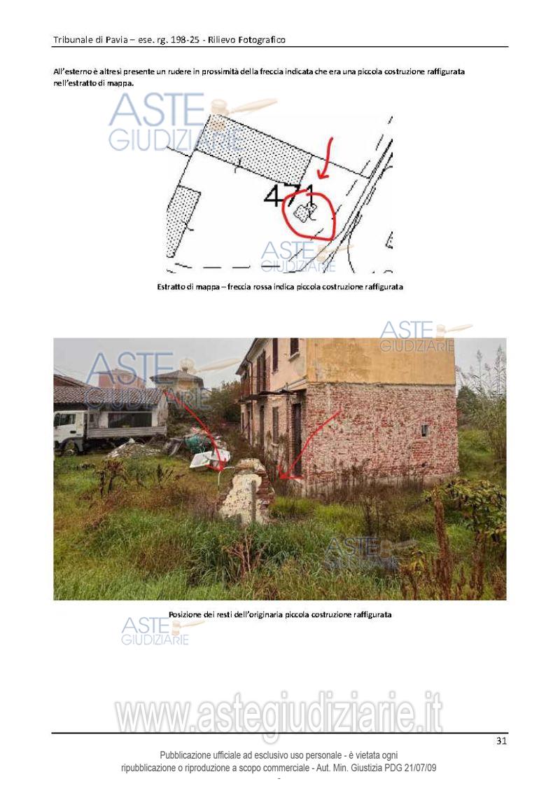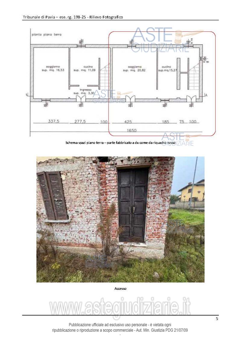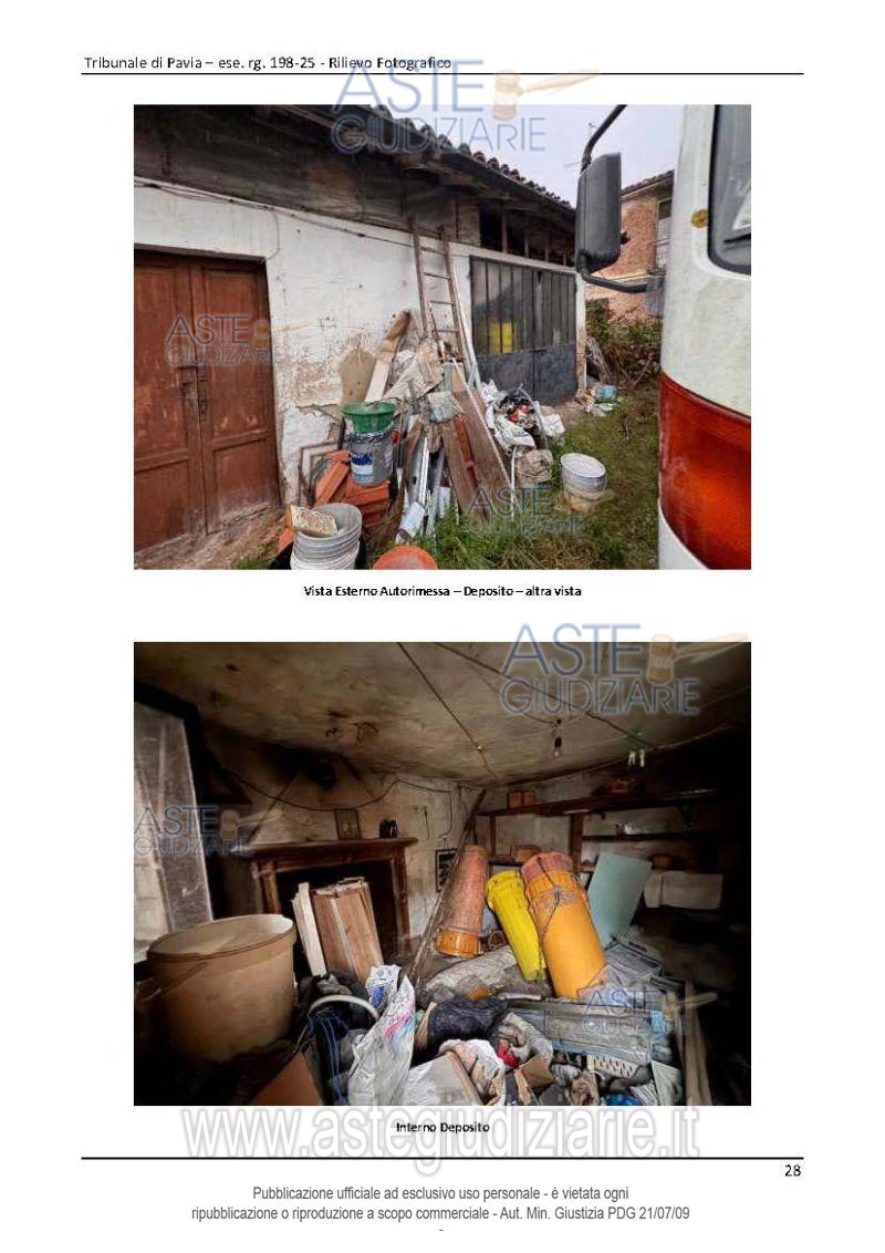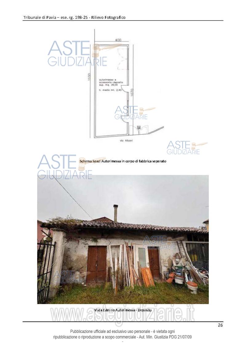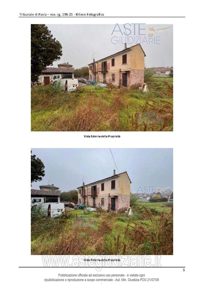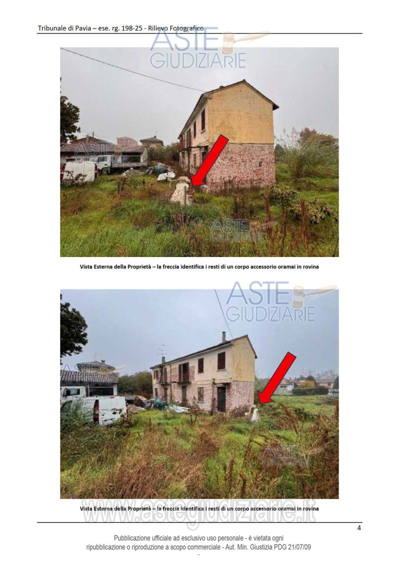 Vendita all'asta Senza incanto, con gara telematica asincrona - LOTTO UNICO: Compendio immobiliare costituito da: 1) un’abitazione di tipo economico con accesso indipendente 2) un magazzino di un solo piano, pertinenziale al fabbricato di cui sopra, costituito da n.3 locali adibiti a magazzino nonché un vano deposito al piano terra di un altro corpo staccato nel suindicato cortile (completamente crollati). Prezzo base € 58.000,00 (offerta minima € 43.500,00). Data inizio operazioni di vendita: 07/05/2026 ore 16:00. Giudice Alessandro Maiola. Professionista delegato alla vendita Avv. Marco Sartori. Custode Giudiziario Istituto Vendite Giudiziarie Di Pavia - Email "immobiliare@ivgpavialodi.it"; Tel. 0382539013. Rif. Tribunale di Pavia - Espropriazione immobiliare (cartabia) n. 198/2025